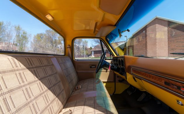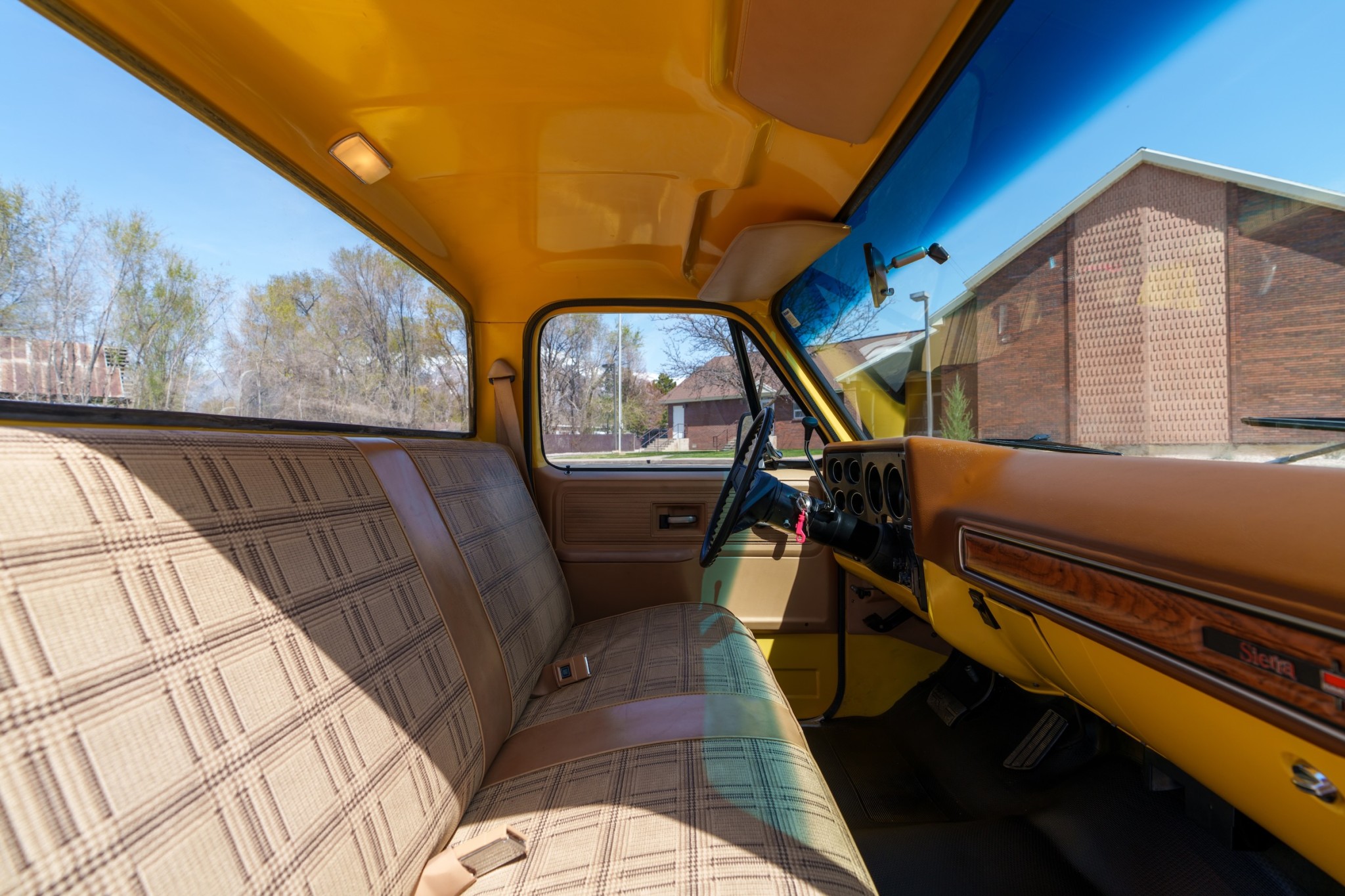 This truck brings back a lot of memories. The sound the door made when you open and close it. When they were new the smell of the vinyl seat and vinyl floor. The sound of the SM 465 4 speed running through the gears. My Dad had a few of these “square body” generation Chevrolets and one GMC. All good trucks, other than the ’73 and ’77 rusting after just a few short years. Its nice to see one this vintage and in such great shape. Even the seat looks terrific.
