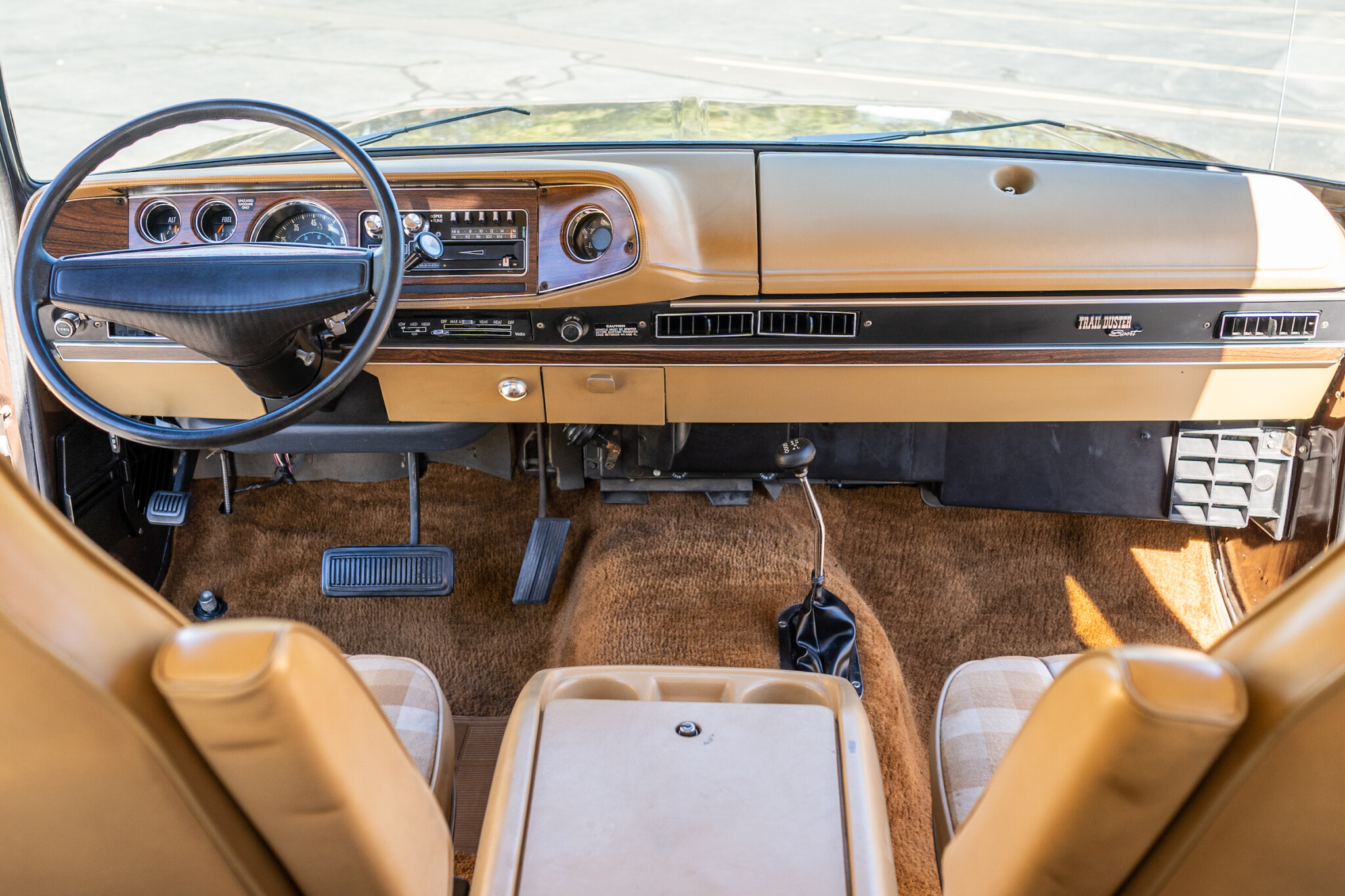 This Trail Duster is the range-topping Sport, which includes some welcome comfort features. The new owner receives air conditioning, the optional AM/FM radio, a roll bar, and the desirable high-back Command Seats trimmed in cloth and vinyl. The interior is in good order, with no signs of significant wear or other issues. The rubber floormats confirm that the owner aimed to protect the carpet, while the dash and pad are free from UV damage. The gauges feature crystal clear lenses and crisp markings, and there are no visible aftermarket additions. A few days spent detailing everything in a home workshop should leave the inside of this Plymouth shining like a new penny.