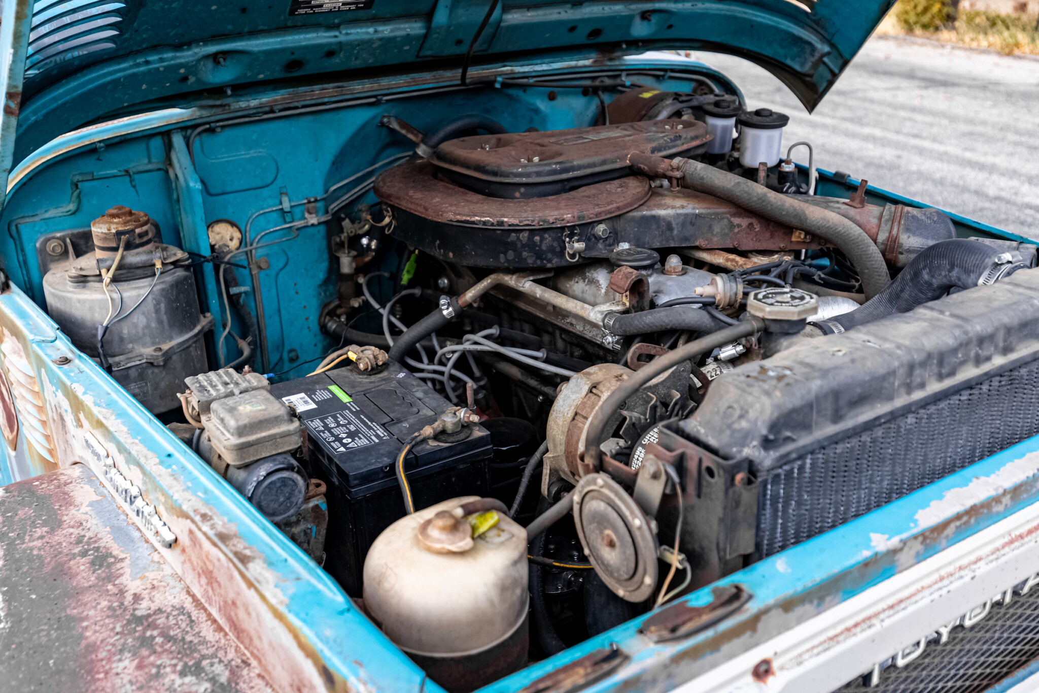 I am quick to emphasize that this Land Cruiser demonstrates why you should never judge a book by its cover. Its Code 854 Sky Blue paint has seen better days, and this classic would undoubtedly benefit from a cosmetic refresh. However, looking more closely reveals plenty of positive news. The panels are remarkably straight for a vehicle of this type and age, with no significant dings or dents. This FJ40 has spent its life in the dry Californian climate, which could be the ace up its sleeve. It has allowed the vehicle to remain solid, with the only area of concern being corrosion in the right rear corner just below the badges. One of the downsides of owning a pristine off-roader is that they can fall victim to scratches and scrapes as they plunge headlong through the undergrowth. This means some owners do not undertake such activities, relegating their pride and joy to life as a trailer queen. Leaving this Land Cruiser in its current form removes that stress, allowing for a more relaxed and enjoyable ownership experience. It is a sure bet that this survivor would receive as much respect in its current form as it would if returned to its former glory. The refurbished wheels add a striking contrast to the aged paint, and the glass is excellent.