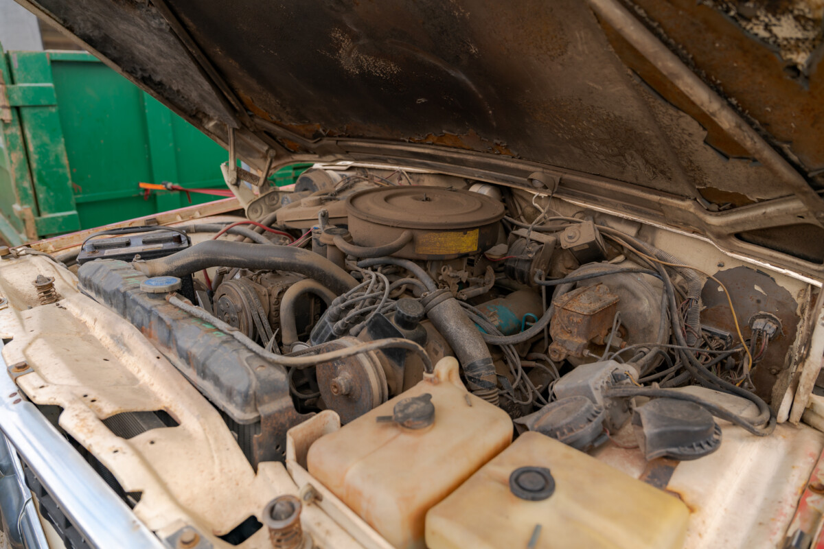 Opening the Jeep’s doors reveals an interior trimmed in a combination of Butterscotch leather and cloth. The leather sports the character wrinkles commonly seen with this material, and it looks slightly dry in spots. However, a deep clean and a liberal application of a high-quality conditioner should make a world of difference. The dash and pad have avoided the rigors of age and UV exposure, but the winning bidder needs to invest in a replacement carpet set to lift the presentation. The impression is it will take more time than money to whip this aspect of the Grand Wagoneer into shape. It has some excellent comfort and convenience features, with the winning bidder receiving air conditioning, an upgraded radio, a tilt wheel, and a remote driver’s mirror. However, sinking back into that leather upholstery is luxury itself and would satisfy many owners.