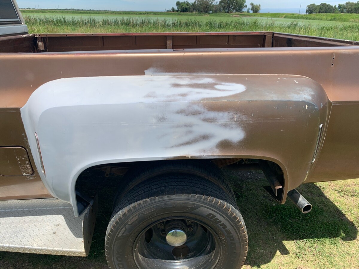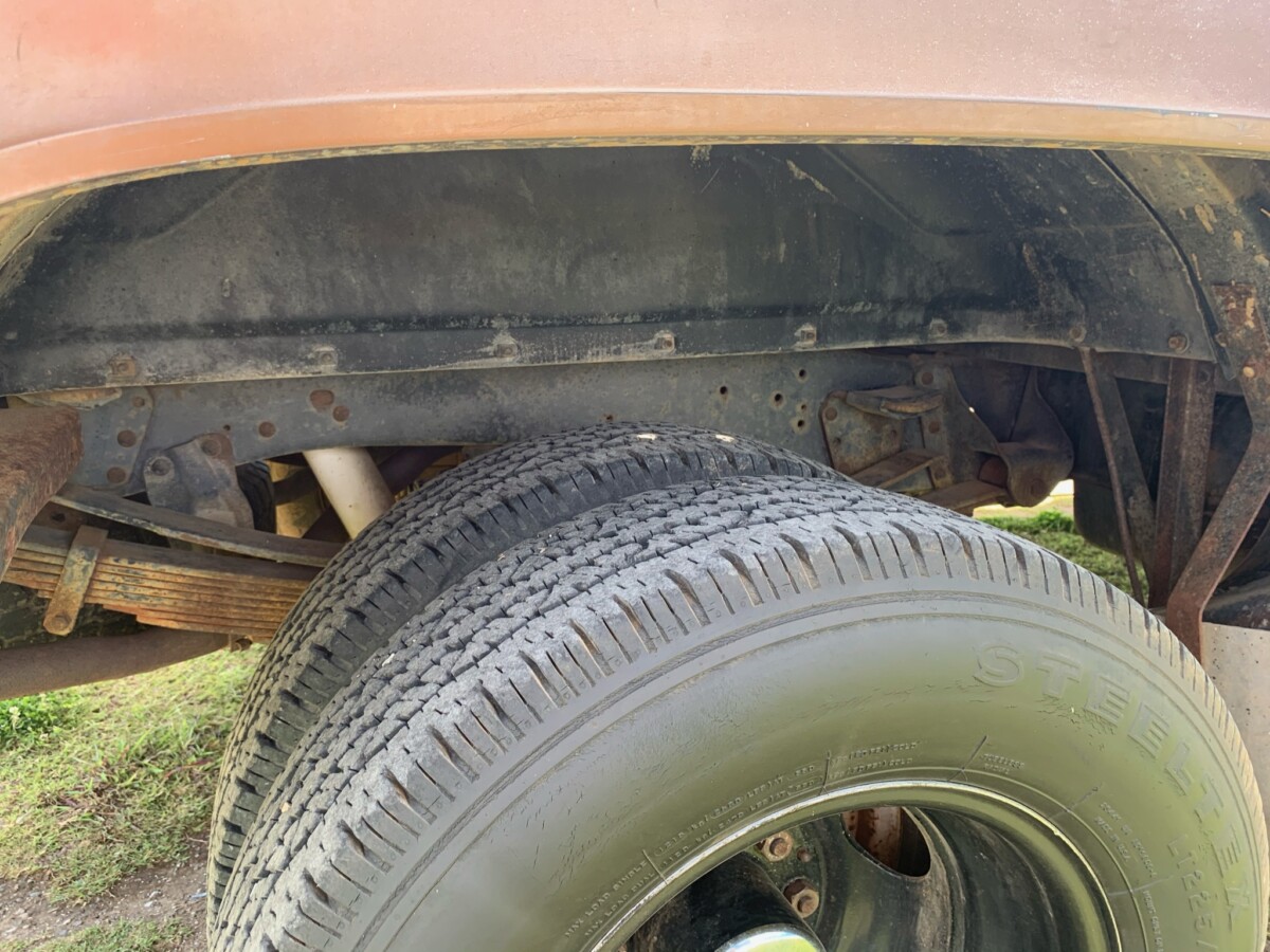 For those interested in a lot of towing, this truck checks a lot of boxes. As a “dually” it has the 454 big-block Chevrolet V8 (recently passed emissions test) paired with a TH-400 automatic transmission. For long-distance trips, the truck is equipped with dual fuel tanks which have been cleaned along with their sending units, new fuel lines, and the fuel actuator. As a result, the truck runs and drives well. Other recent work includes a new aluminum radiator and thermostat, and the braking master cylinder has been replaced. As you might expect, there is a gooseneck ball for towing.