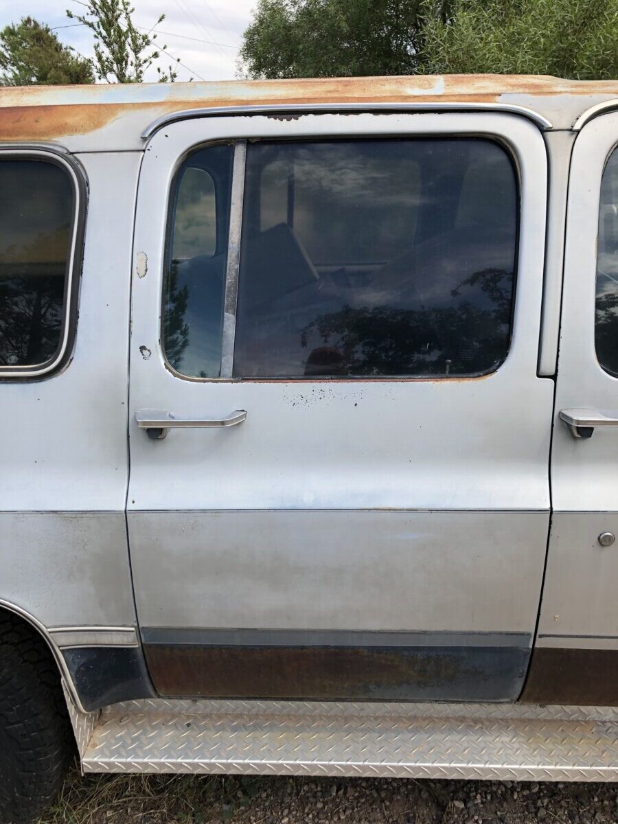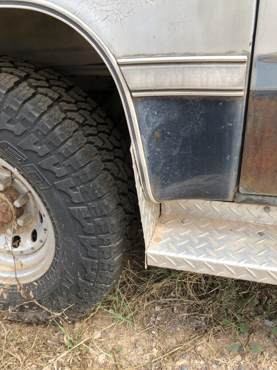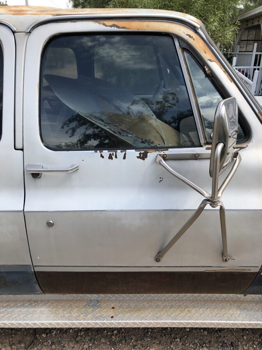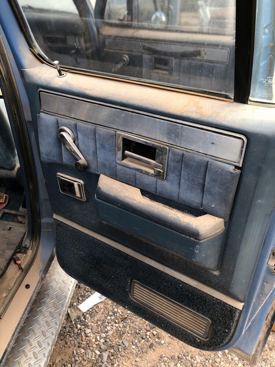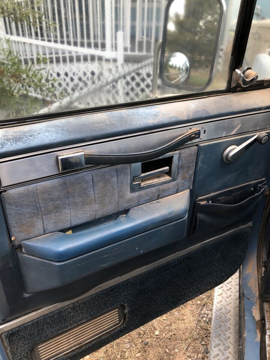 Inside, you’ll find all of the original components still in place. After sitting in the dry desert, the interior is very dusty. A good cleaning will reveal what can be reused and what will need to be replaced. The beauty of these Suburbans is that they shared parts with their pickup truck siblings, meaning you can get just about every part to make it like new and for surprisingly reasonable prices. The dash is said to have a few cracks but the upholstery looks like it will clean up and the headliner is said to be in good shape. All of the windows roll up and down as they should. Overall, with a good cleaning this interior could easily be put back into service as is.