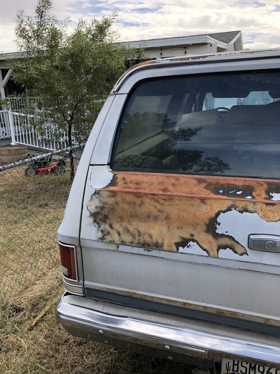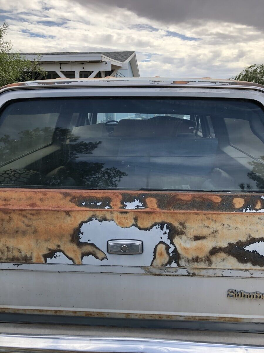 Having spent its life in the hot Arizona sun, this Suburban is sunbaked but very solid. The paint has seen better days, but we would take sun-damaged paint over a poorly done respray any day. With a find like this, you know exactly what you’re getting. We would focus on getting the truck back on the road before addressing the cosmetics and depending on what our goals were for it, we would either have it repainted in the original color combo or just treat the rust and leave it as is. Since it just appears to be surface rust at this point, the latter might be the best place to start and if you decide you want to make it look like new, a respray would take it to the next level.