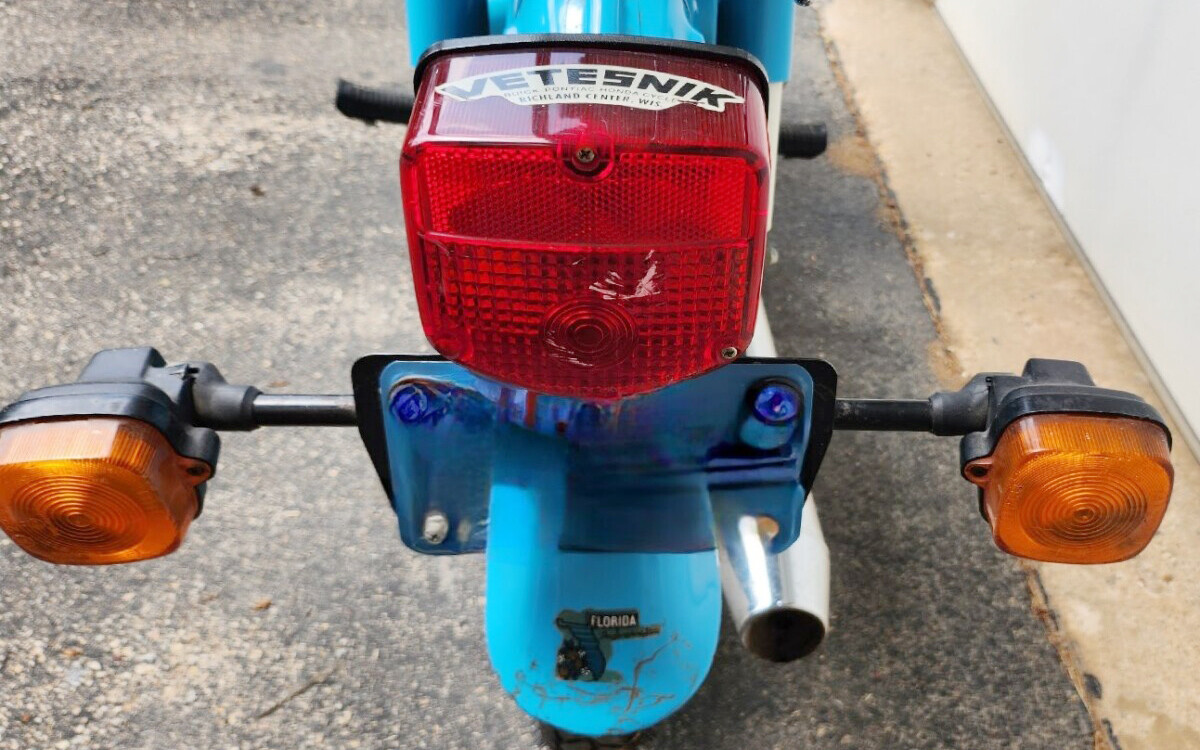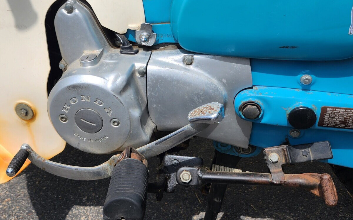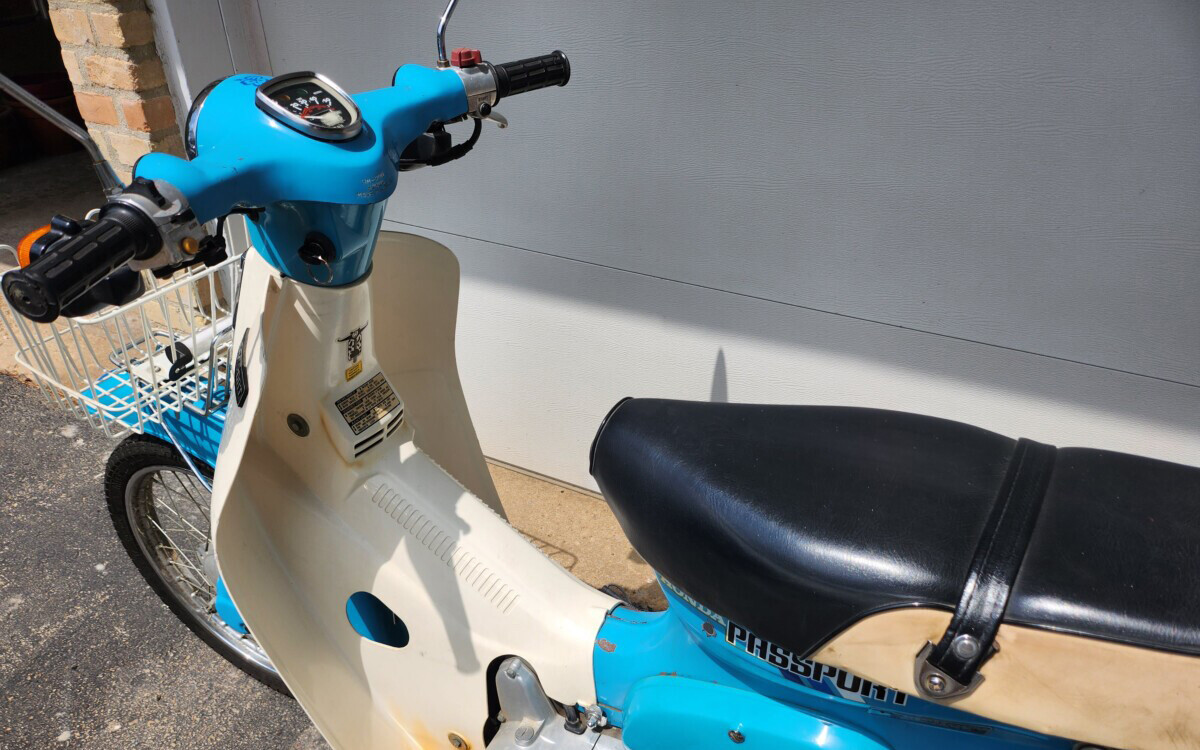 Honda had a bit of an issue with the name Super Cub due to Piper Aircraft already using the name, so the name Passport was used here. There were several small changes over the last 60+ years that Honda has made this model or similar models with different engines. You can see some nicks and chips on this one, and a few stickers that were applied. The current owner has had this Passport since 2010 and has done a lot of routine maintenance over the years to keep it working great, and they say that it does work great.