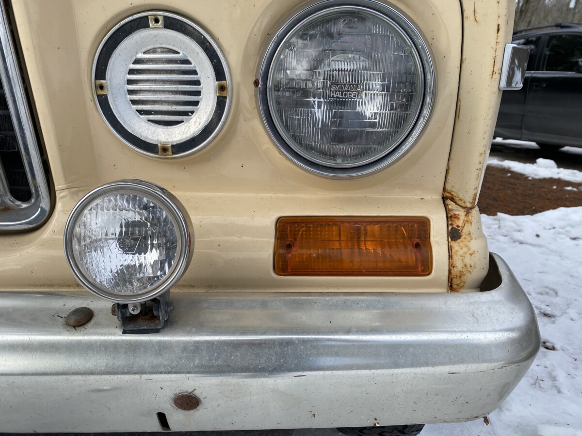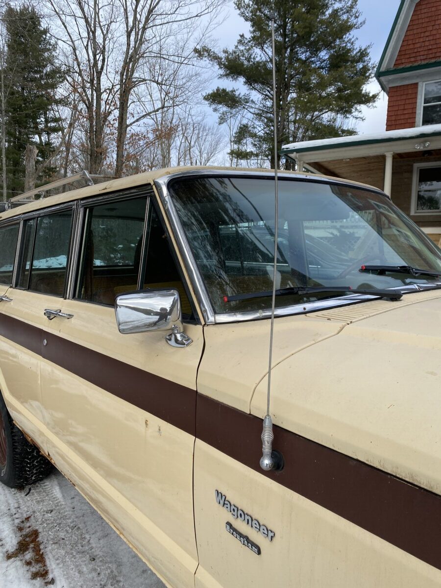 It’s my old truck! Not a Grand Wagoneer, just a Brougham. I got it on ebay sometime around 2004. The Rhino grille was on it when I got it, held on mainly by zip ties. I remember that truck fondly. People would look up and smile as you drove down the road. I sold it after about 5 years only cuz I wanted a change (got an 83 BMW R100 to take its place), but I miss it. Very cool truck. It’s got some new stuff on it since I had it. Those fog lights, the headliner and door panels. Can’t say I’m too into that brown stripe on the side. Used to have some faux wood trim, though not big like the Grand Wagoneers. The rust is kind of breaking my heart, but winters out here are rough on old cars. Frankly I looked better back then too! Hope whoever buys it has fun with it like I did!