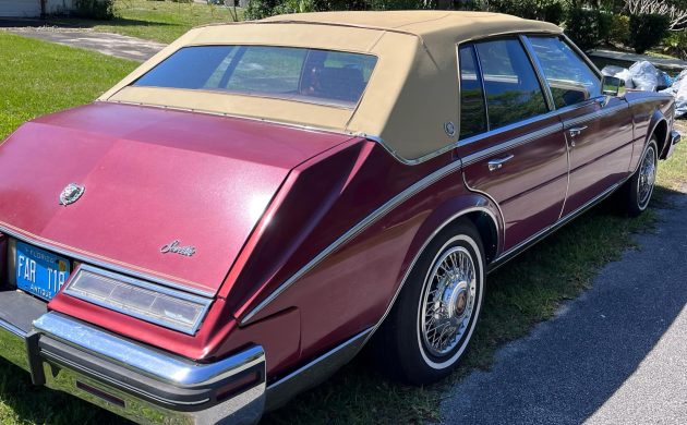 The 1985 Cadillac Seville marked the end of the “bustleback” years, perhaps the ultimate showroom expression of GM styling chief Bill Mitchell’s fascination with classical themes. Sure, it was polarizing, but the 1985 model still outsold its immediate 1986 replacement by almost 10,000 units (28,678 to 19,098), so it certainly had its boosters as well as its detractors. And even if you’re not a fan of the Seville’s styling, you have to admit that it has personality, something missing from much of the current selection on your local dealer’s lot. If you count yourself among those who approve of these charismatic Sevilles, perhaps this one will be of interest. With 84,750 miles on the odometer, it’s being offered as a Barn Finds Auction in Fort Pierce, Florida.