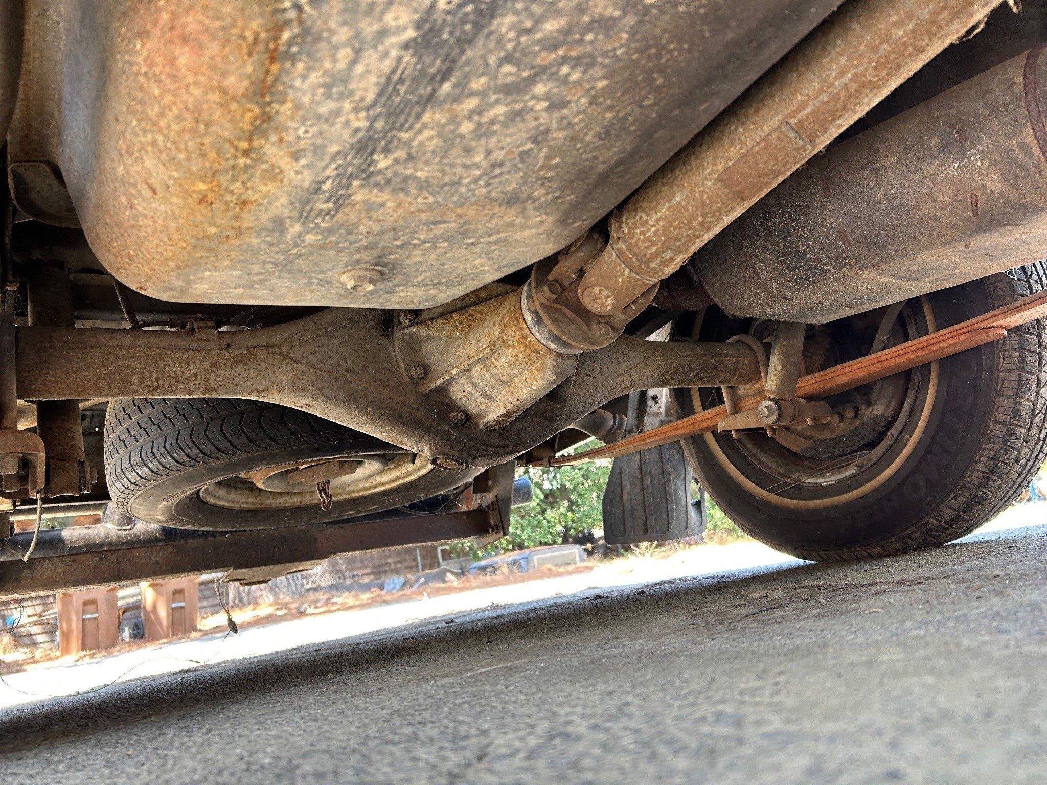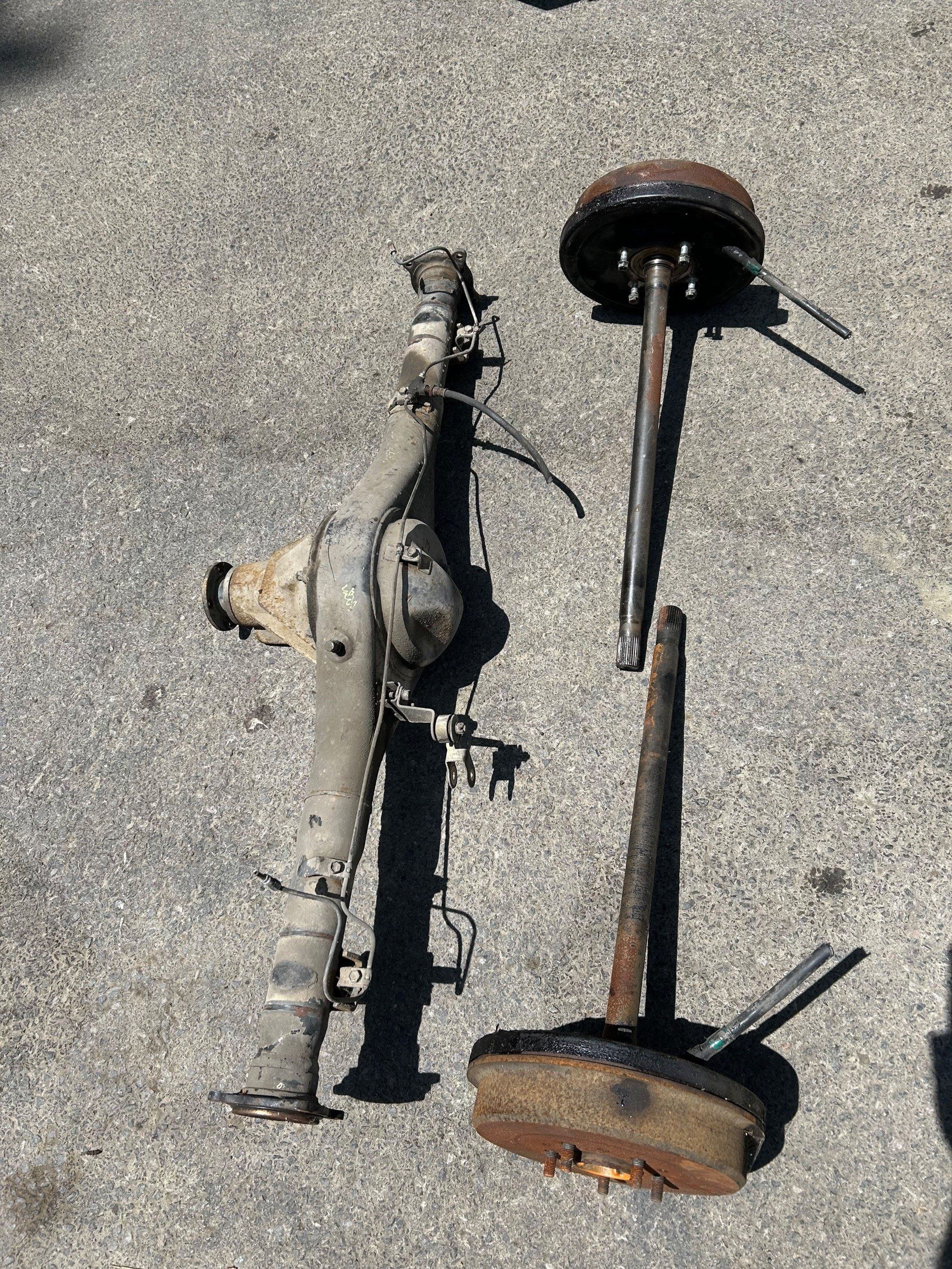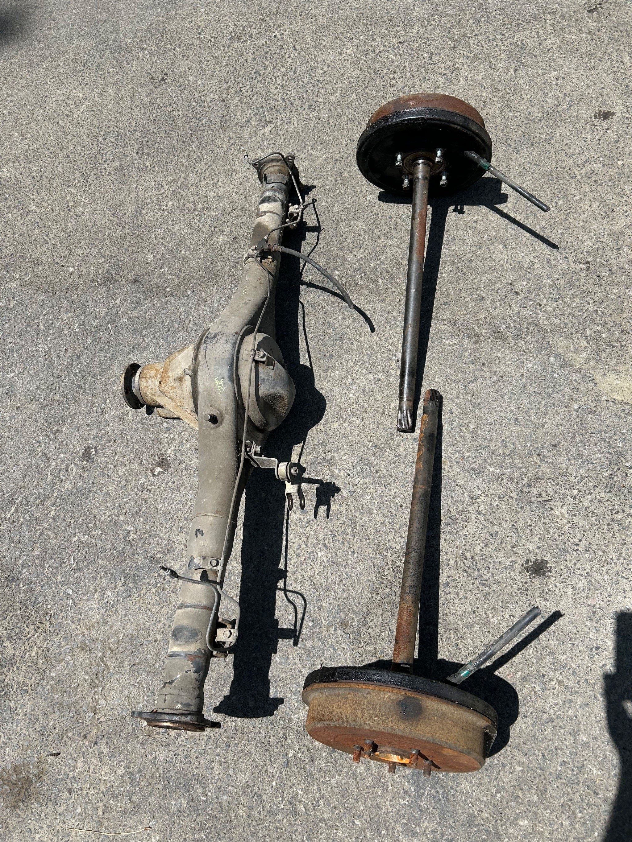 The interior, although complete, will require attention; however, replacement parts for these trucks remain accessible and affordable due to their cult following. Included with the sale are several extras: a spare carburetor and a complete rear axle. While the current axle is functioning properly, the seller had intended to install a locking differential in the spare unit for improved capability.