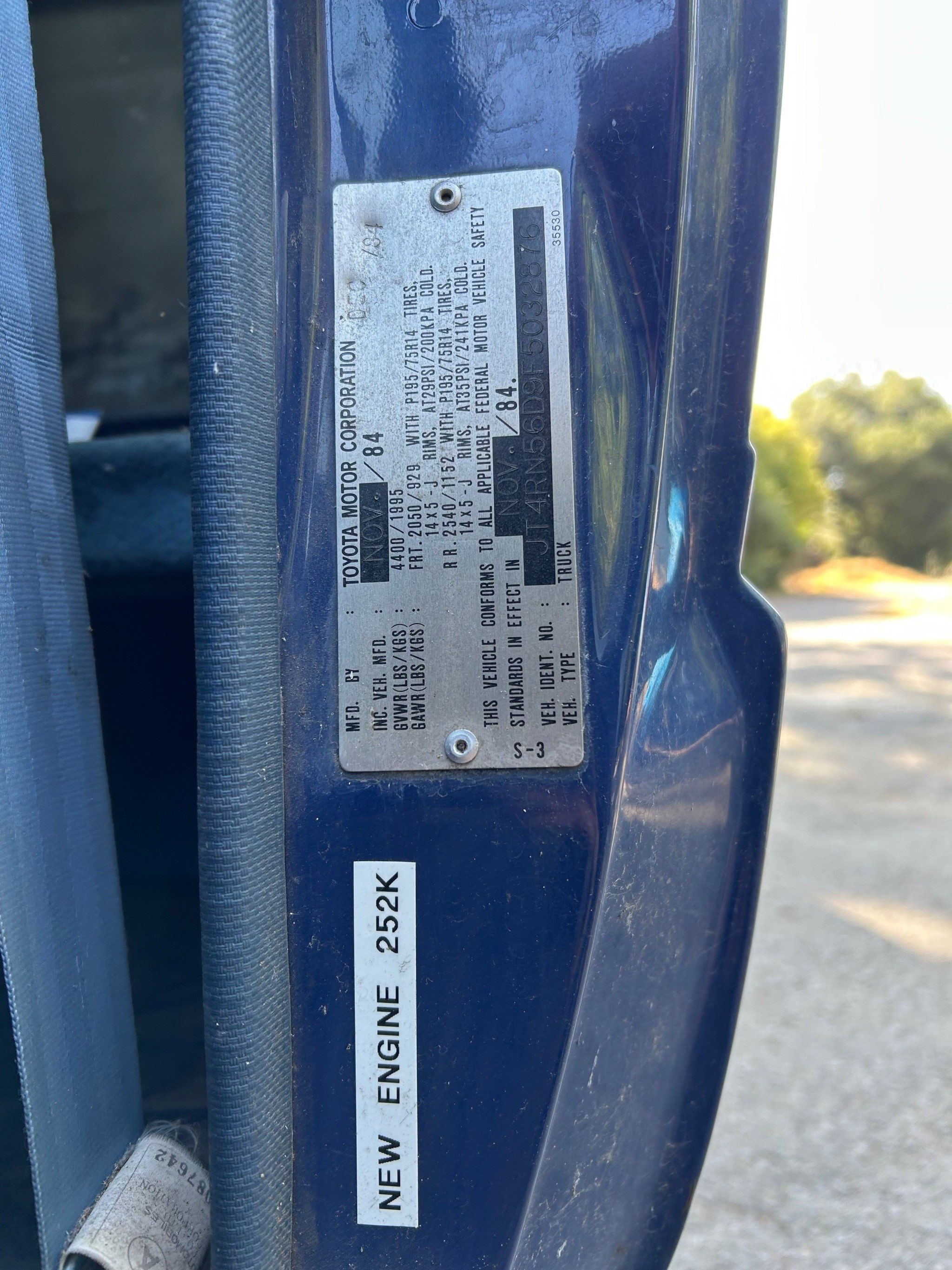 - Chassis #: JT4RN56D9F5032876