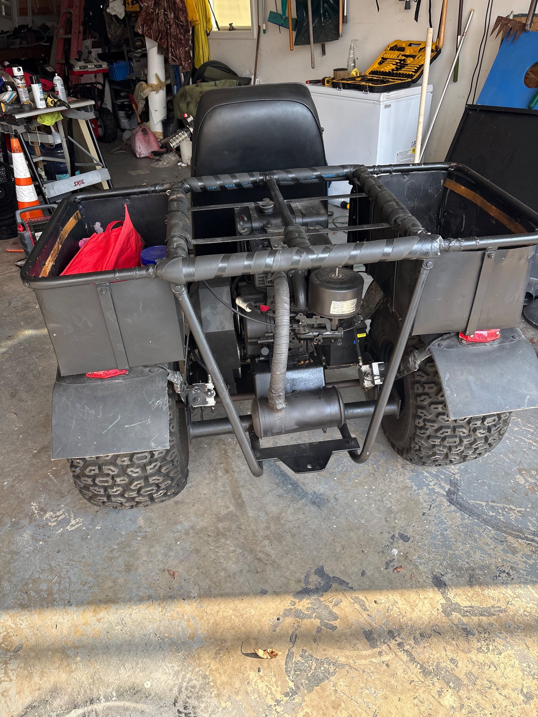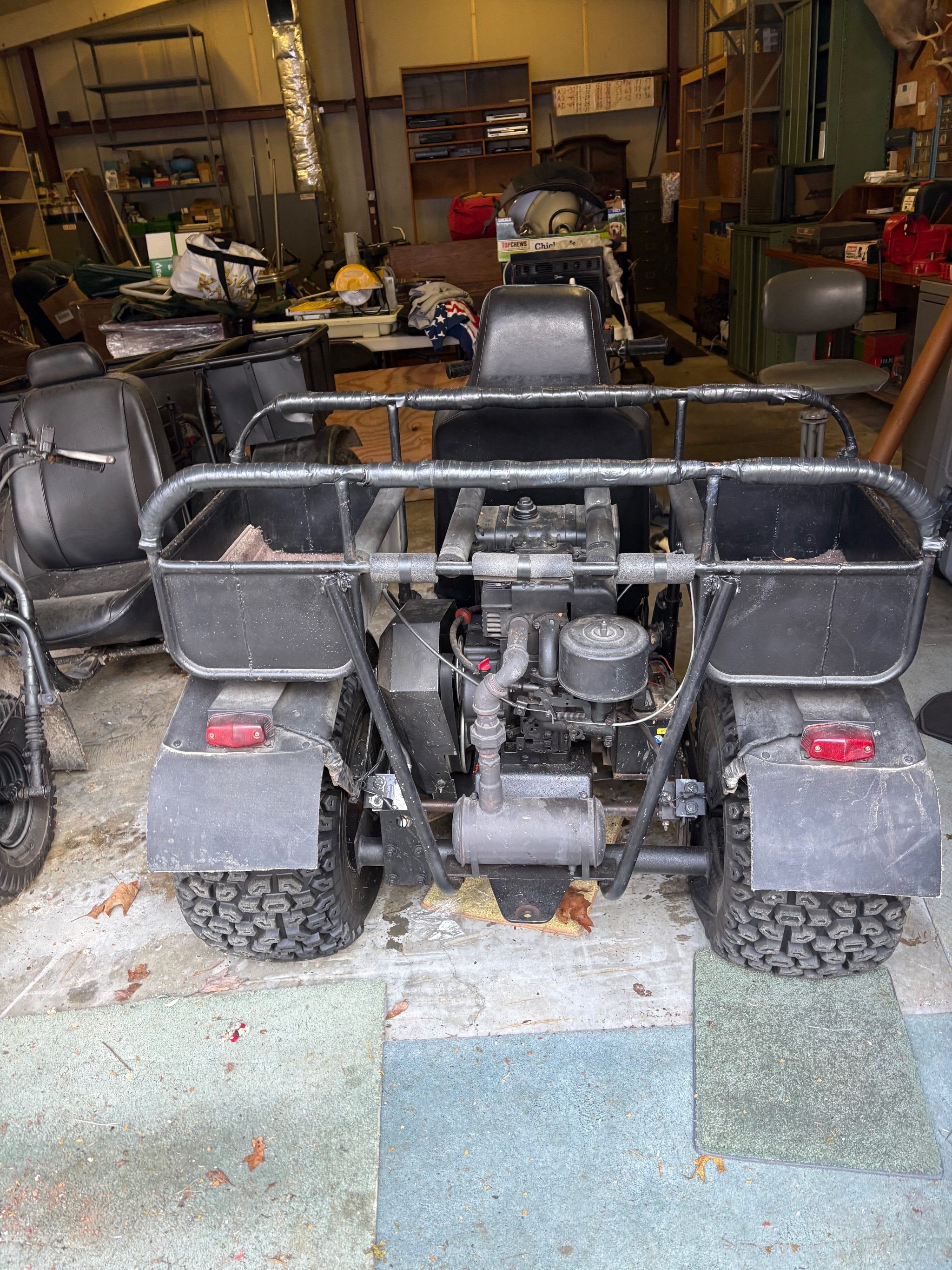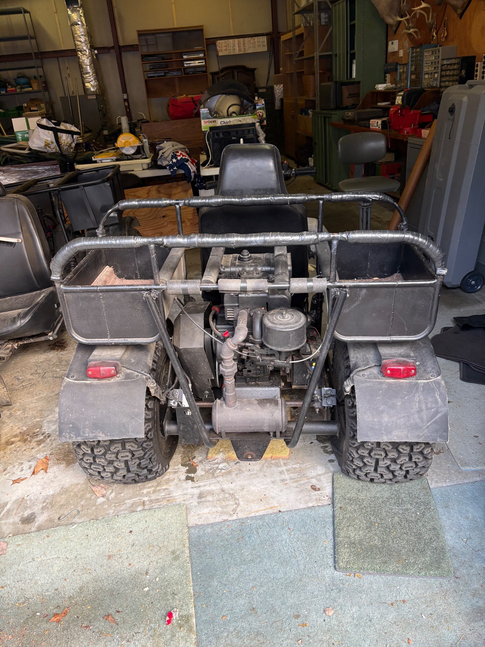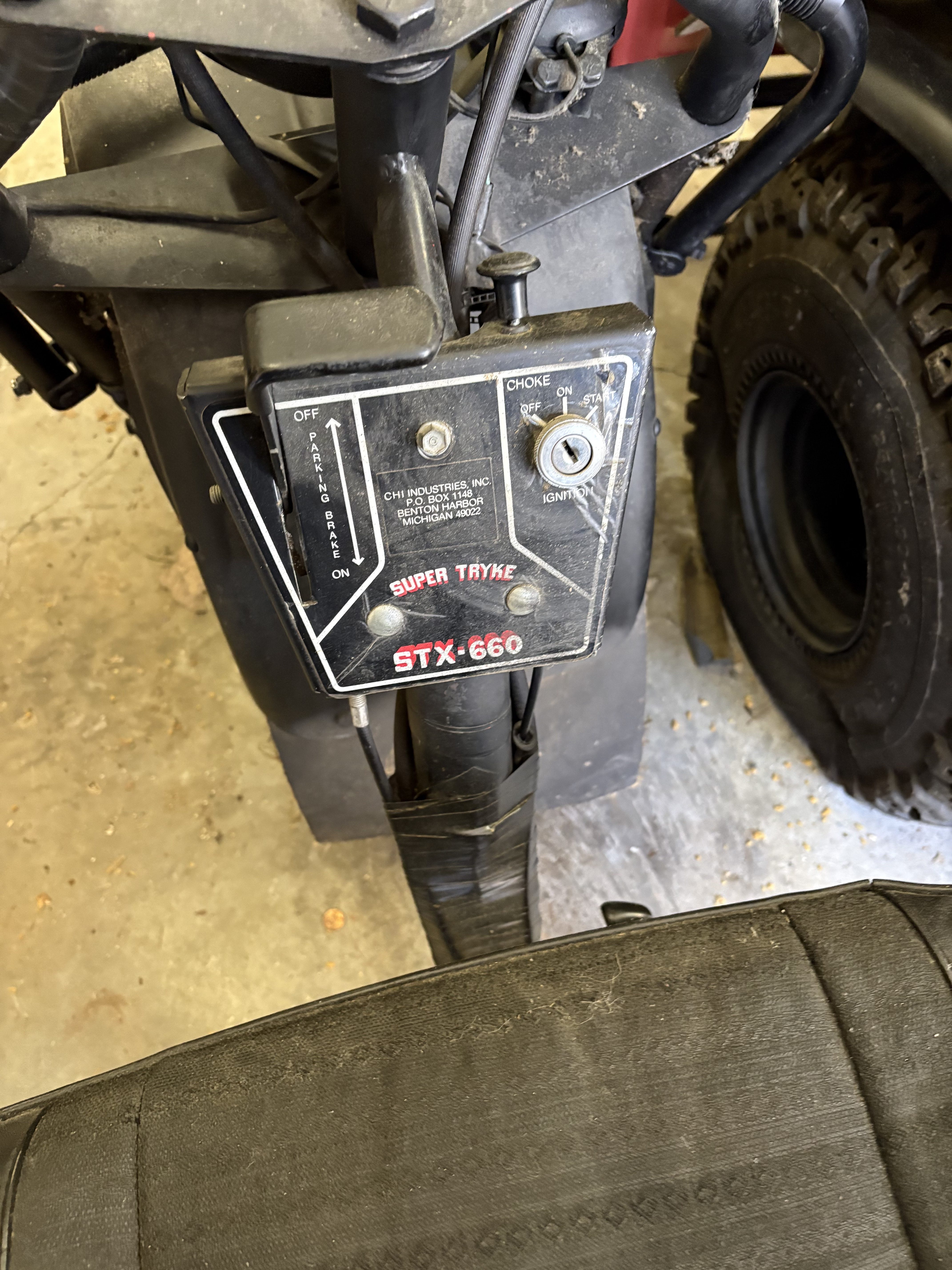 I believe this one is an STX-360. The STX model had an enclosed transaxle rather than an open one, which protected it from dirt, sand, and water. The 360 portion is related to the 357-cc engine. There was an STX-320 with a 318-cc engine, and a couple of SST models without the enclosed transaxle. The company also made two-wheeled mini bikes with the same big wheels. Heck, why not collect one of each?!