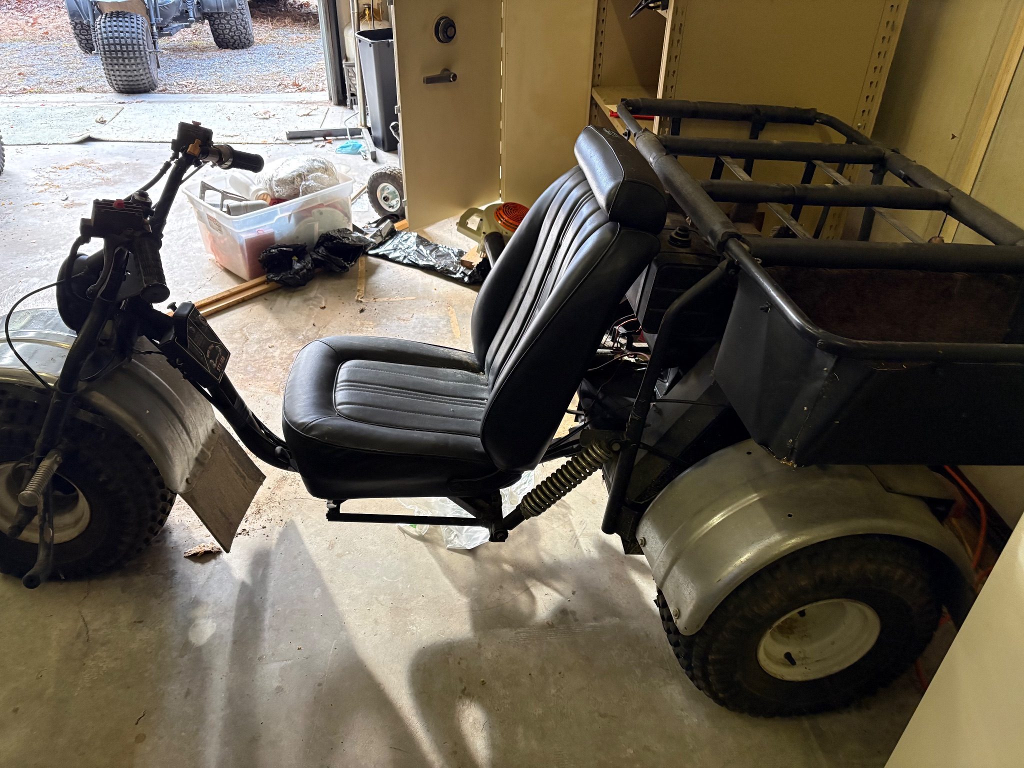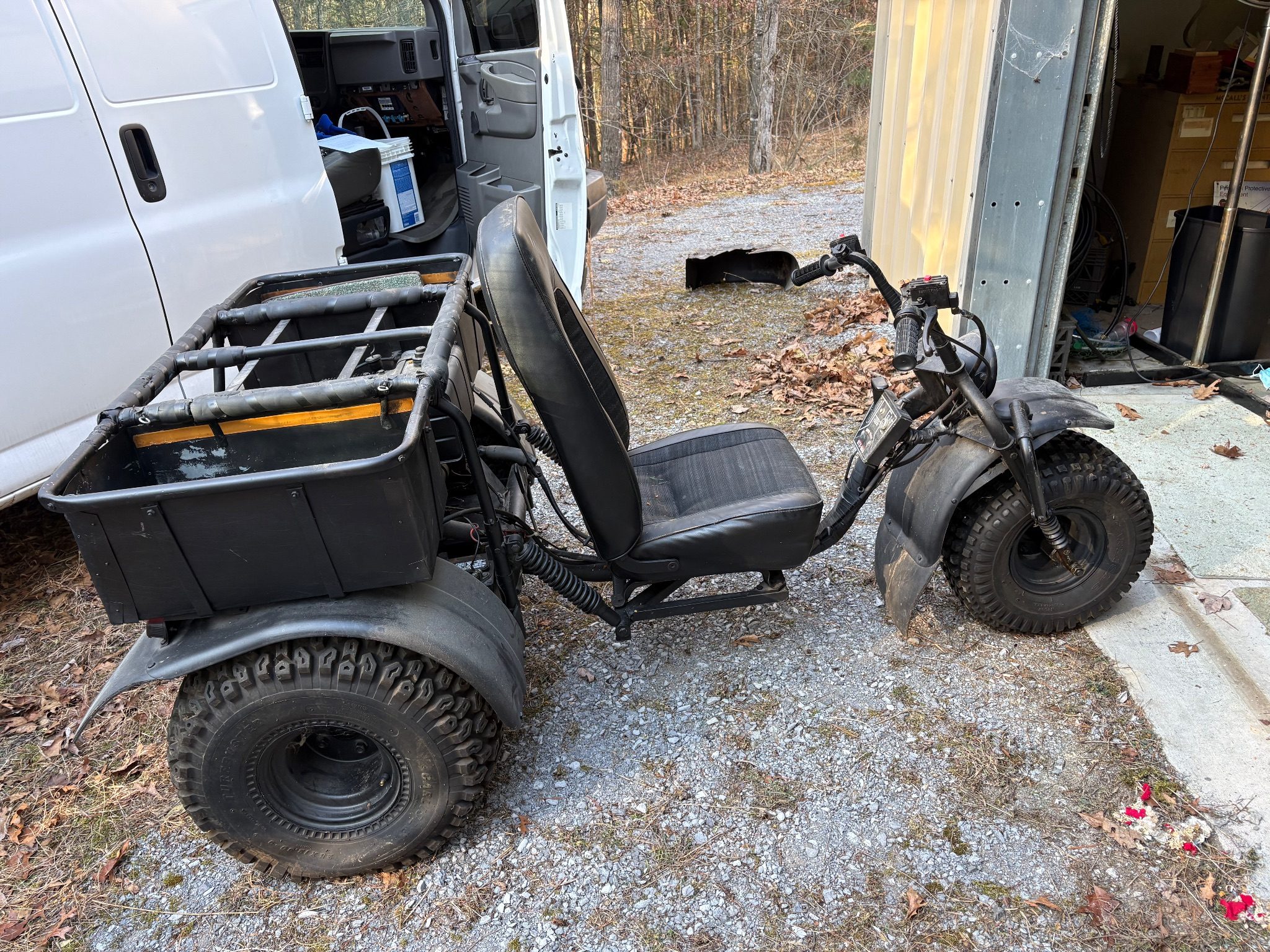 This is one of the company’s three-wheelers, and they refer to them as Super Trykes. There were several models, and a “Heald Hauler” version had a little bed on the back. This one has bins built into a rear rack, and the seller actually has four of this model for sale. You can see that some of the photos look like different models, and they are.