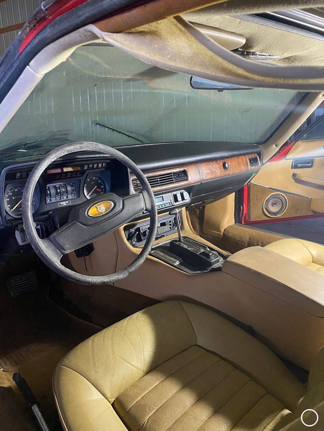 The seller knows little about this XJ-S, as it is a project car that belonged to her late husband. However, there is much we can learn from the supplied photos. Its exterior wears Sebring Red paint which appears to hold a good shine beneath the layer of dust. The longer I look at the pictures, the more I want to break out the bucket and sponge and wash it. The panels are straight, featuring tight gaps and no evidence of rust. Someone has fitted what appears to be a Lister body kit that includes a deep front spoiler, side skirts, a rear spoiler on the trunk lid, a rear diffuser below the bumper, and rear fender flares. Removing those items would not be difficult, but they give this XJ-S a sense of purpose. Some chrome items would benefit from a trip to the platers, although others might be fine with a polish. The glass looks good, and this car benefits from a factory sunroof.