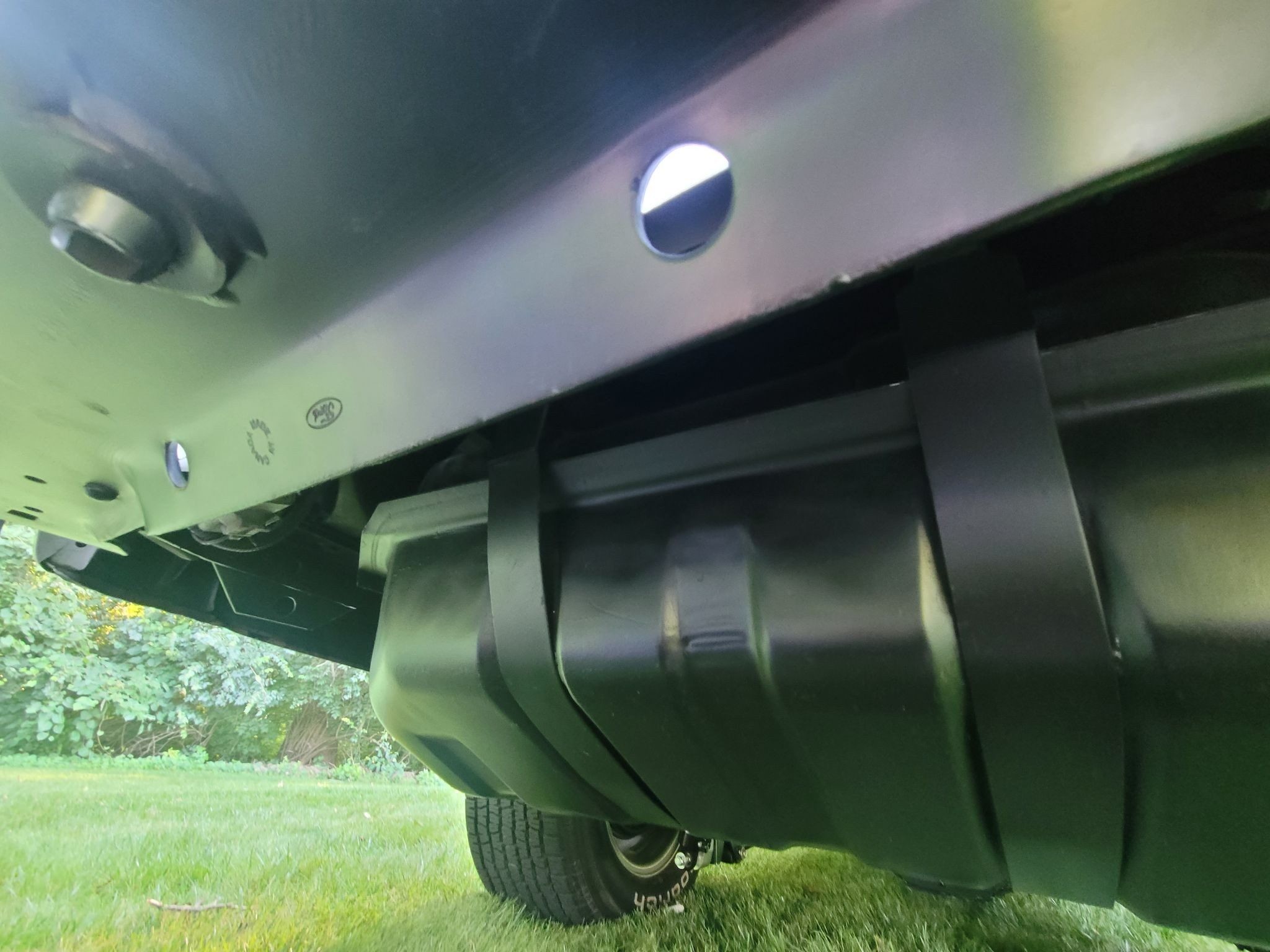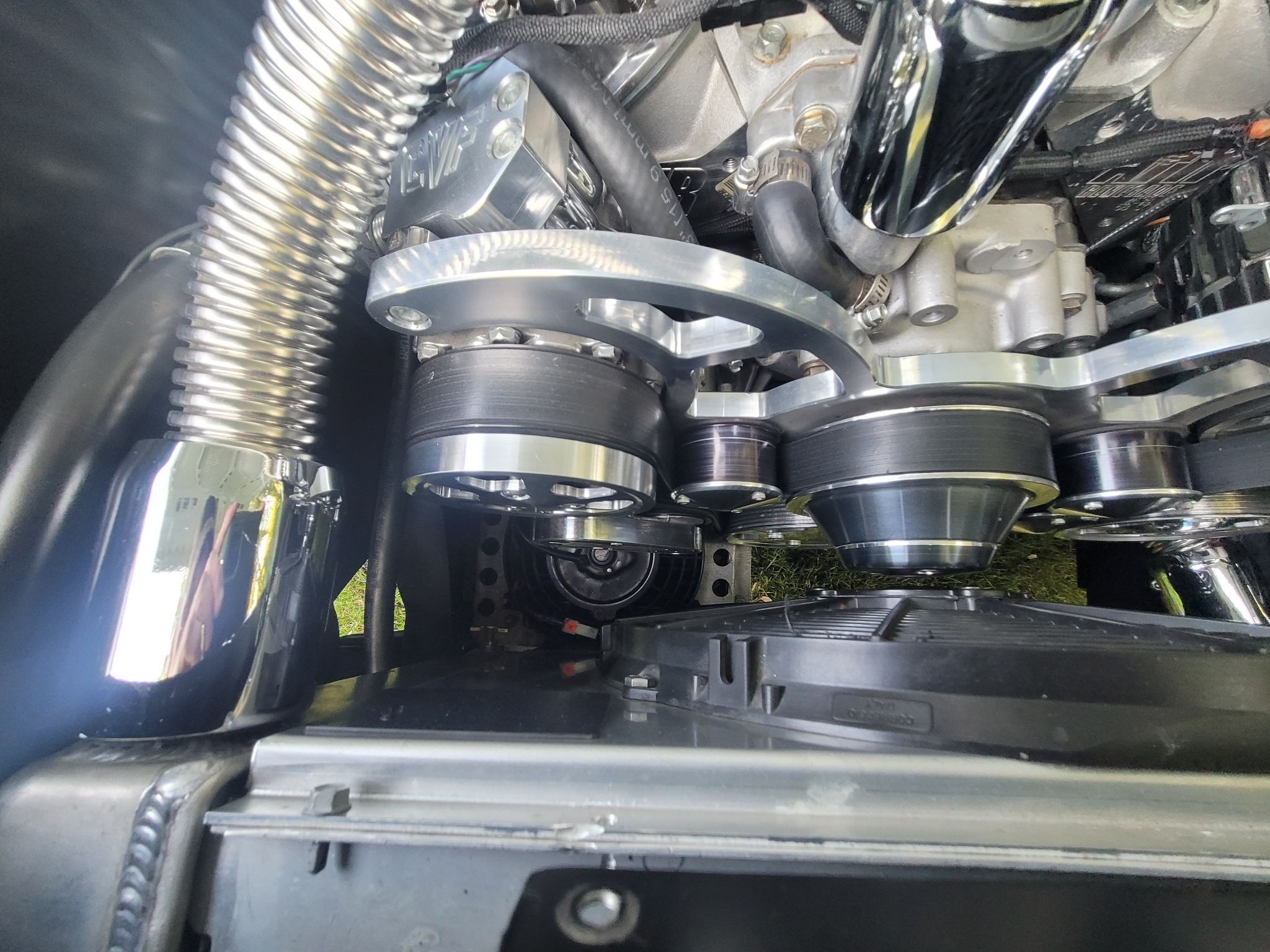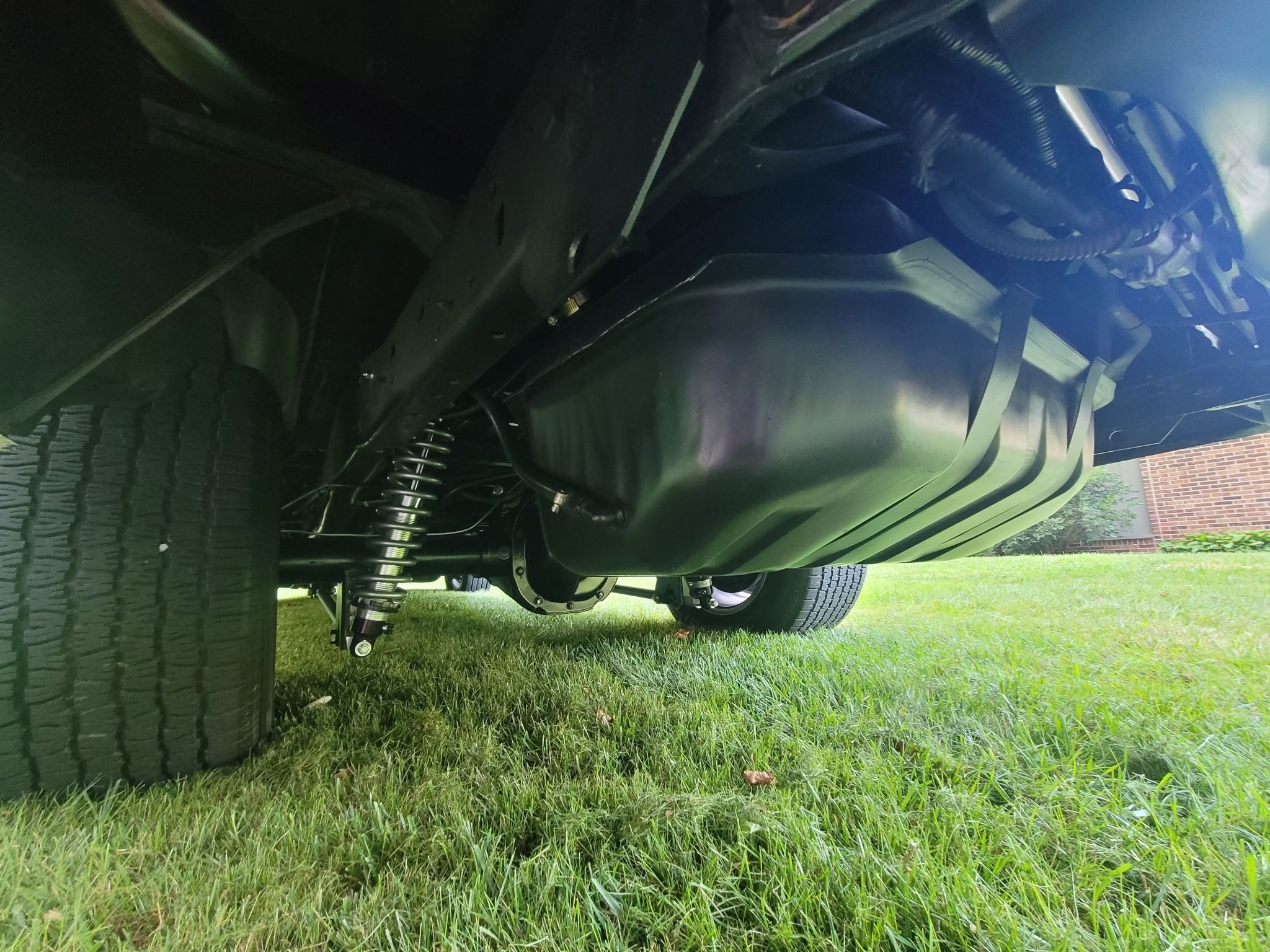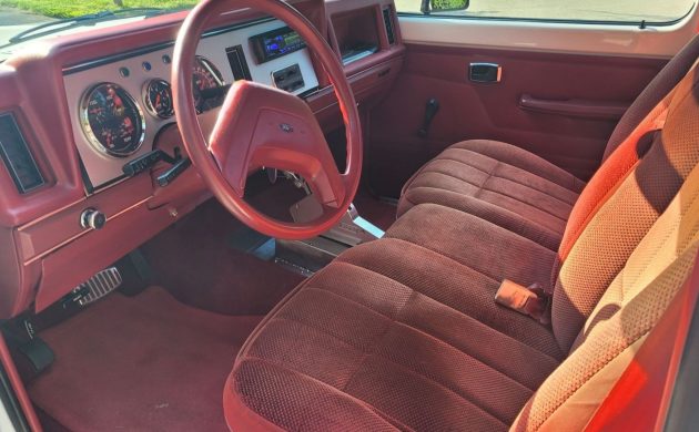 The interior shots show a well-preserved and purpose-built space, from the aftermarket shifter to the extra gauges keeping tabs on that high-performance heart. Even the door panels look fresh, suggesting this truck was both built and maintained with pride. Underneath, the upgrades continue, and with the seller noting a clean title and a professional engine build, there’s confidence in its quality.