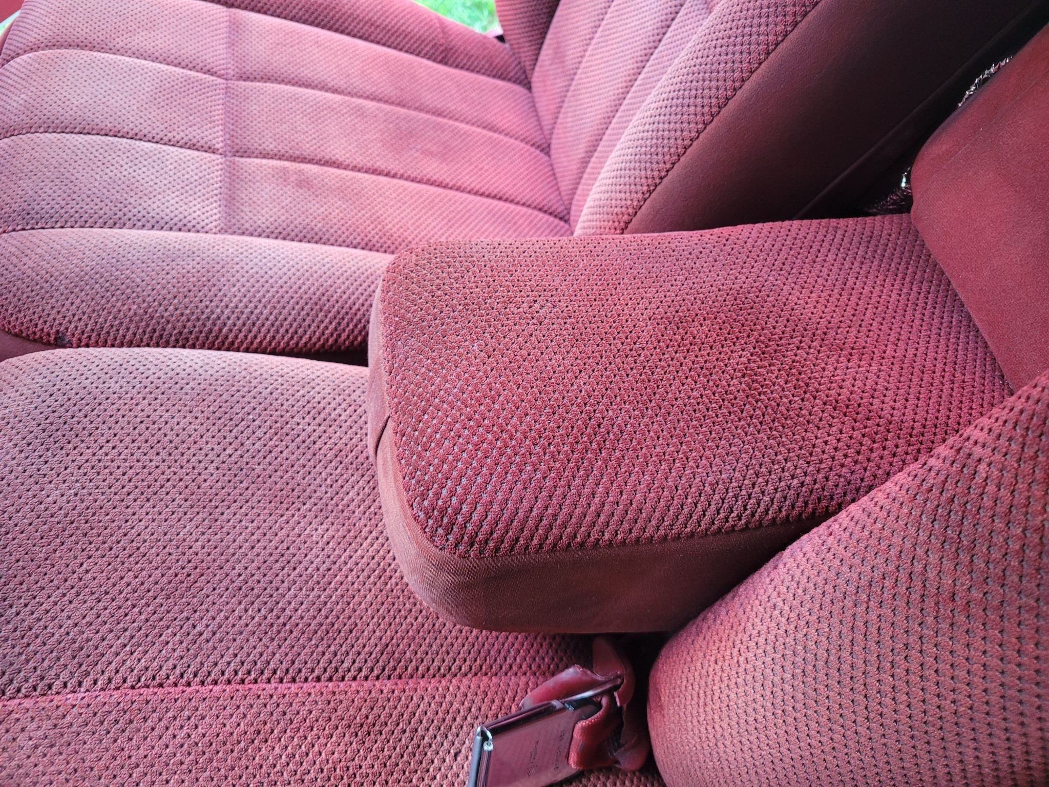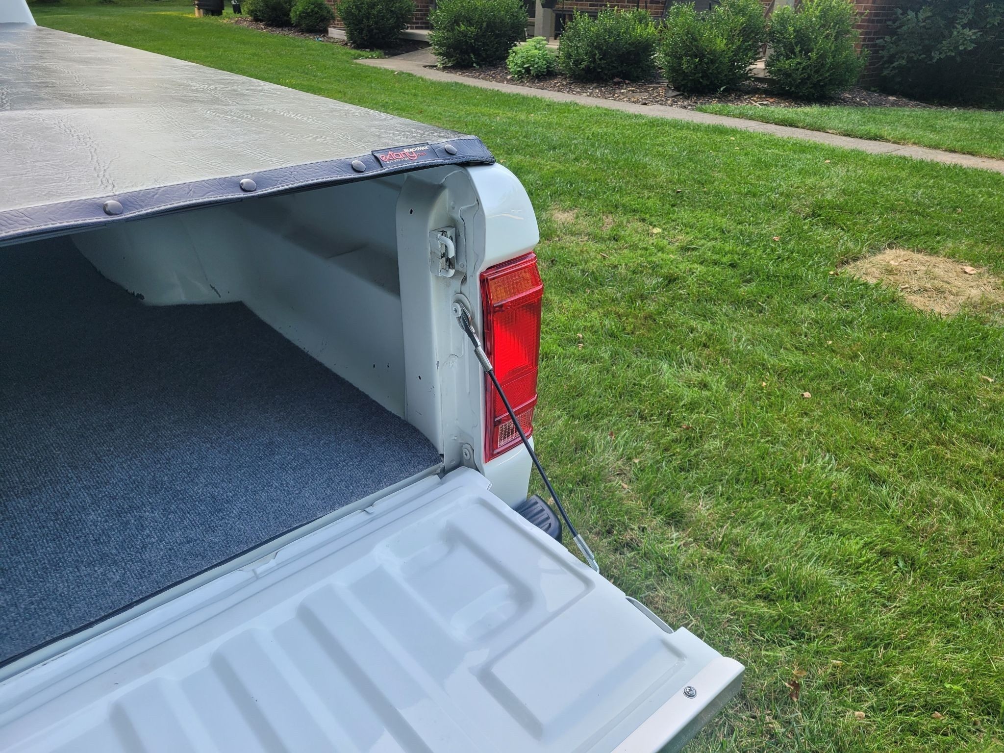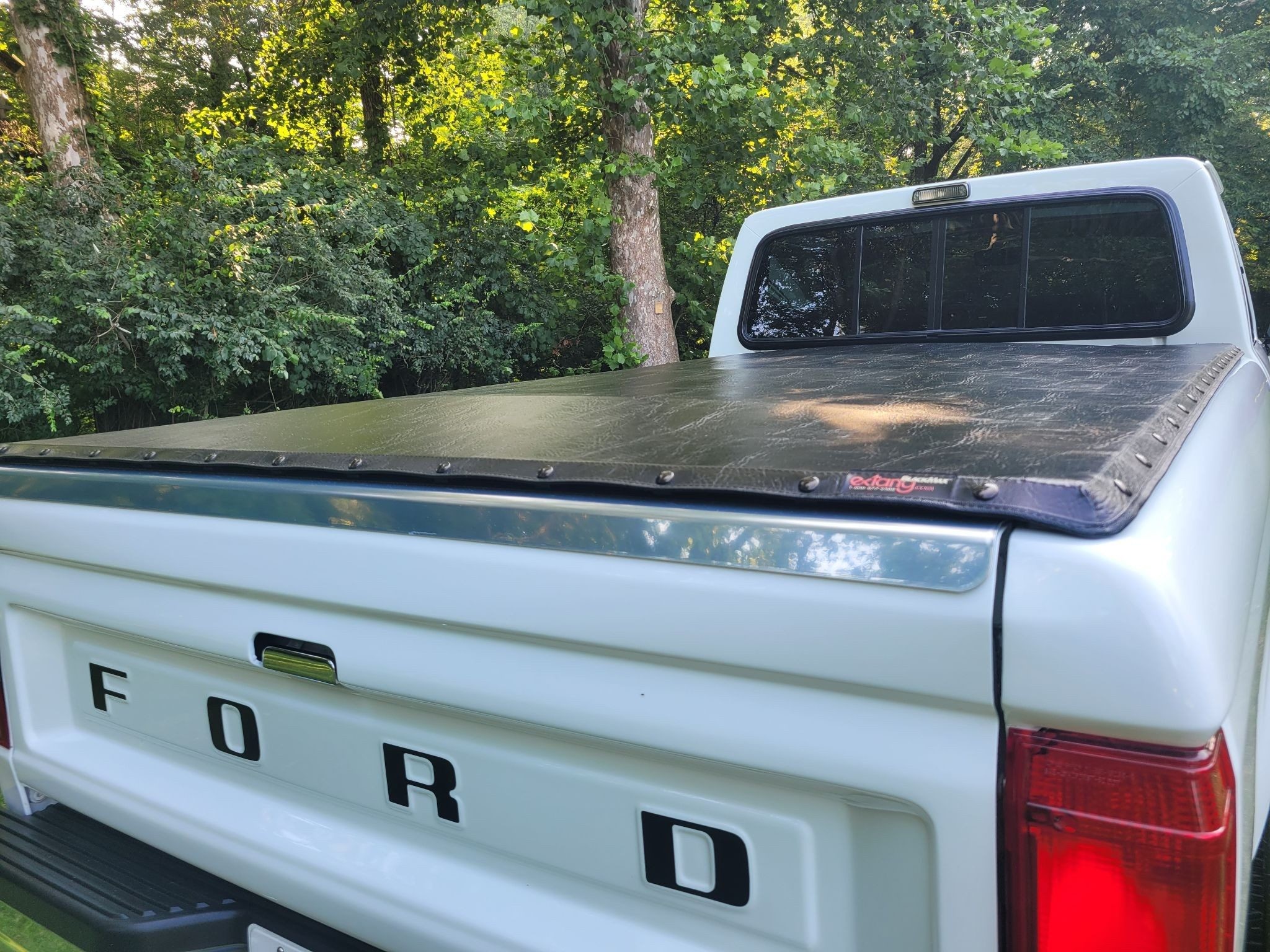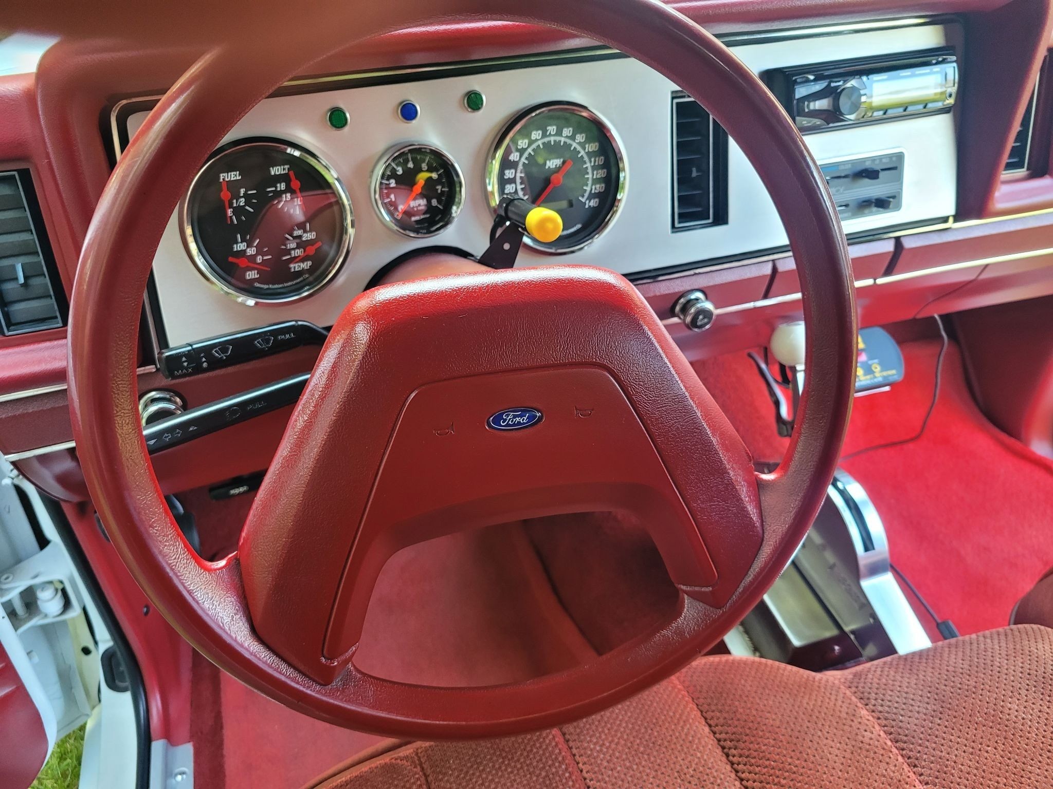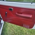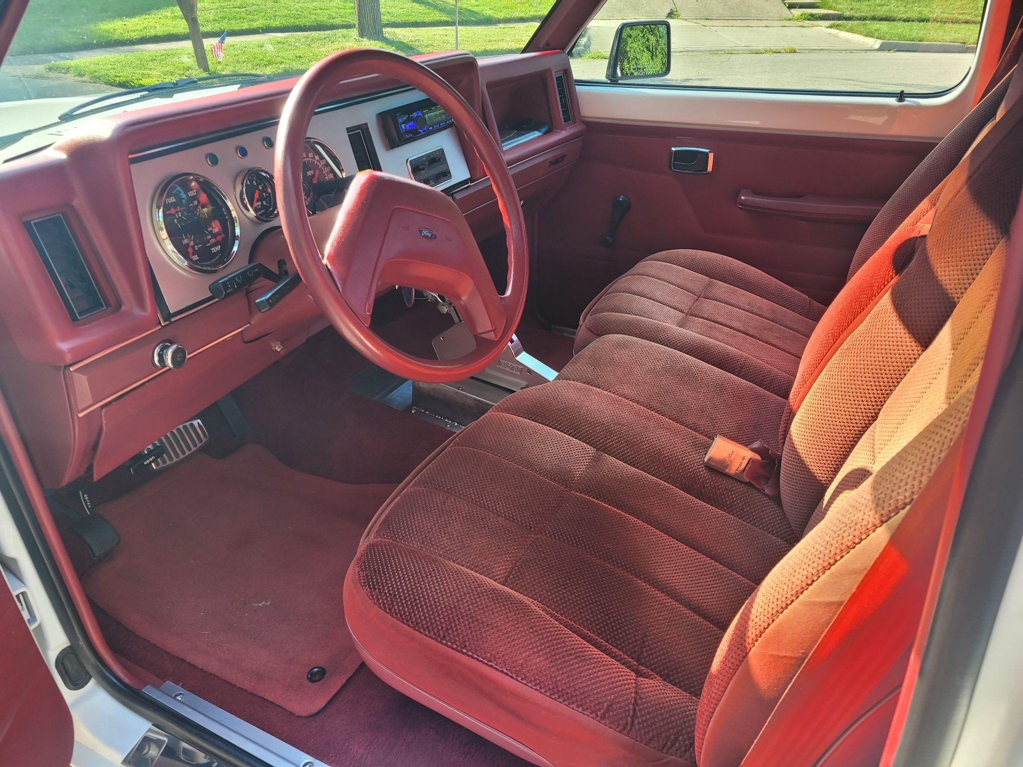 From the outside, the truck keeps its composure with a fresh white finish, clean chrome bumpers, and a set of polished wheels wrapped in BFGoodrich rubber. The long bed is neatly covered with a fitted tonneau, while the XLT badging remains as a subtle nod to its origins. Step inside and you’re greeted by a sea of red—plush cloth seats, matching carpets, and a tidy dashboard that still holds its original charm. The cab is clean and well-kept, with no excessive wear, showing the care it has received over the years.