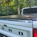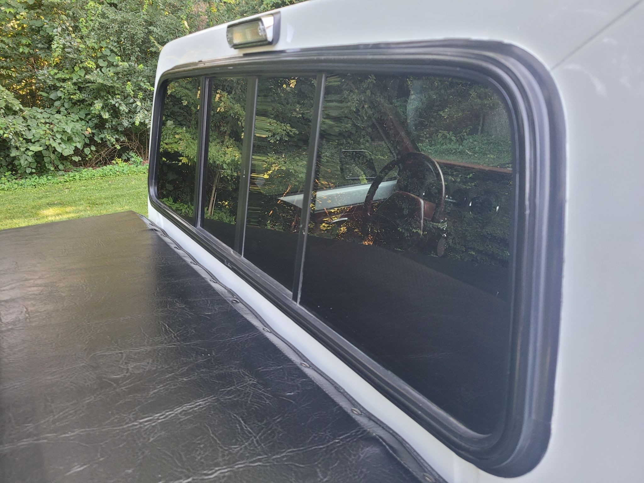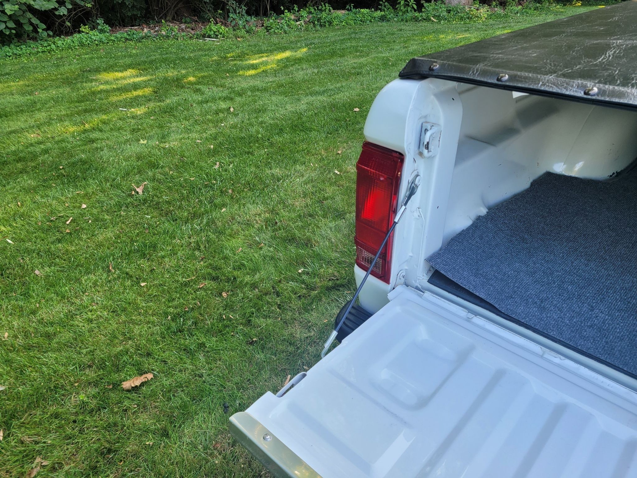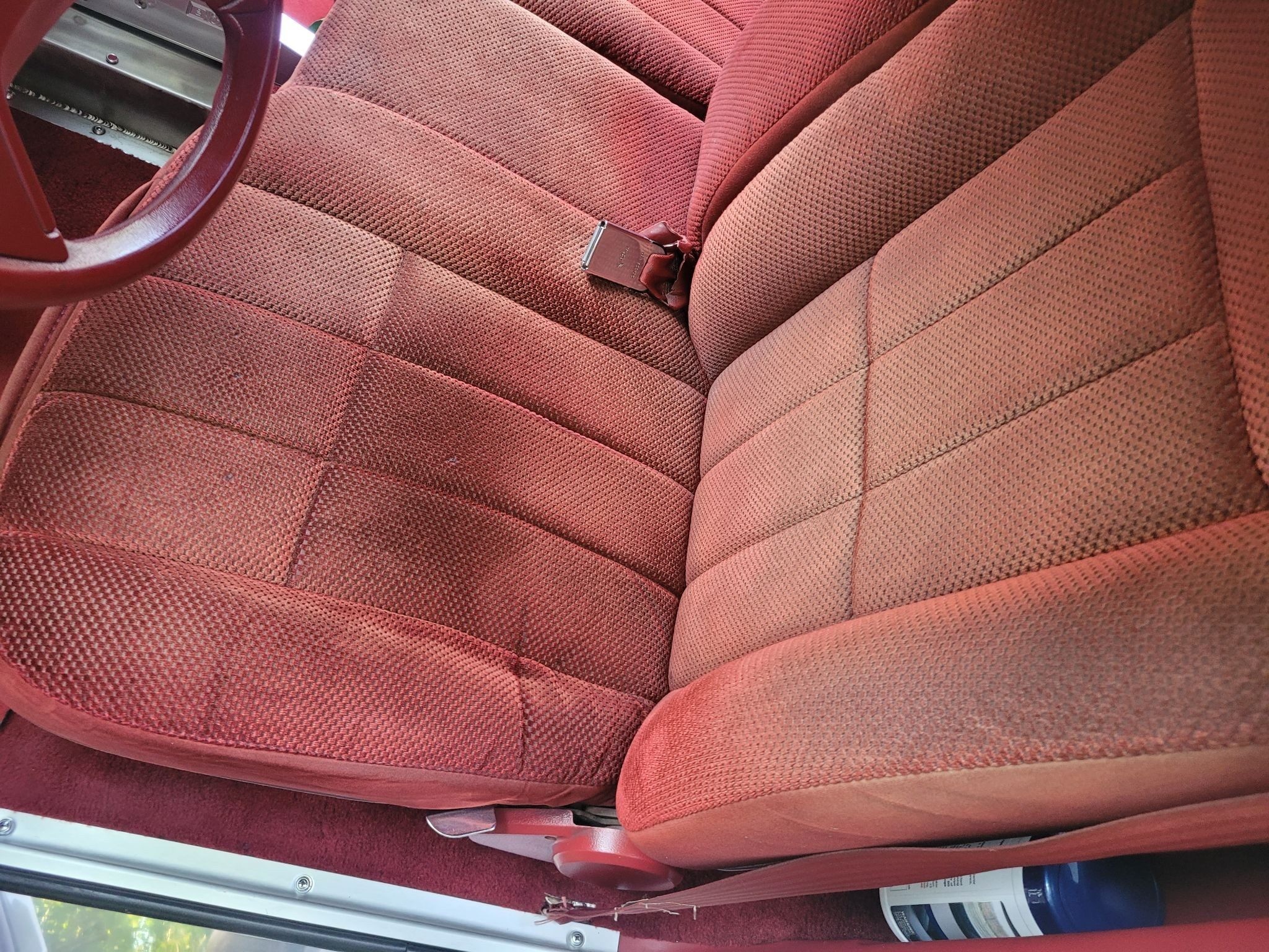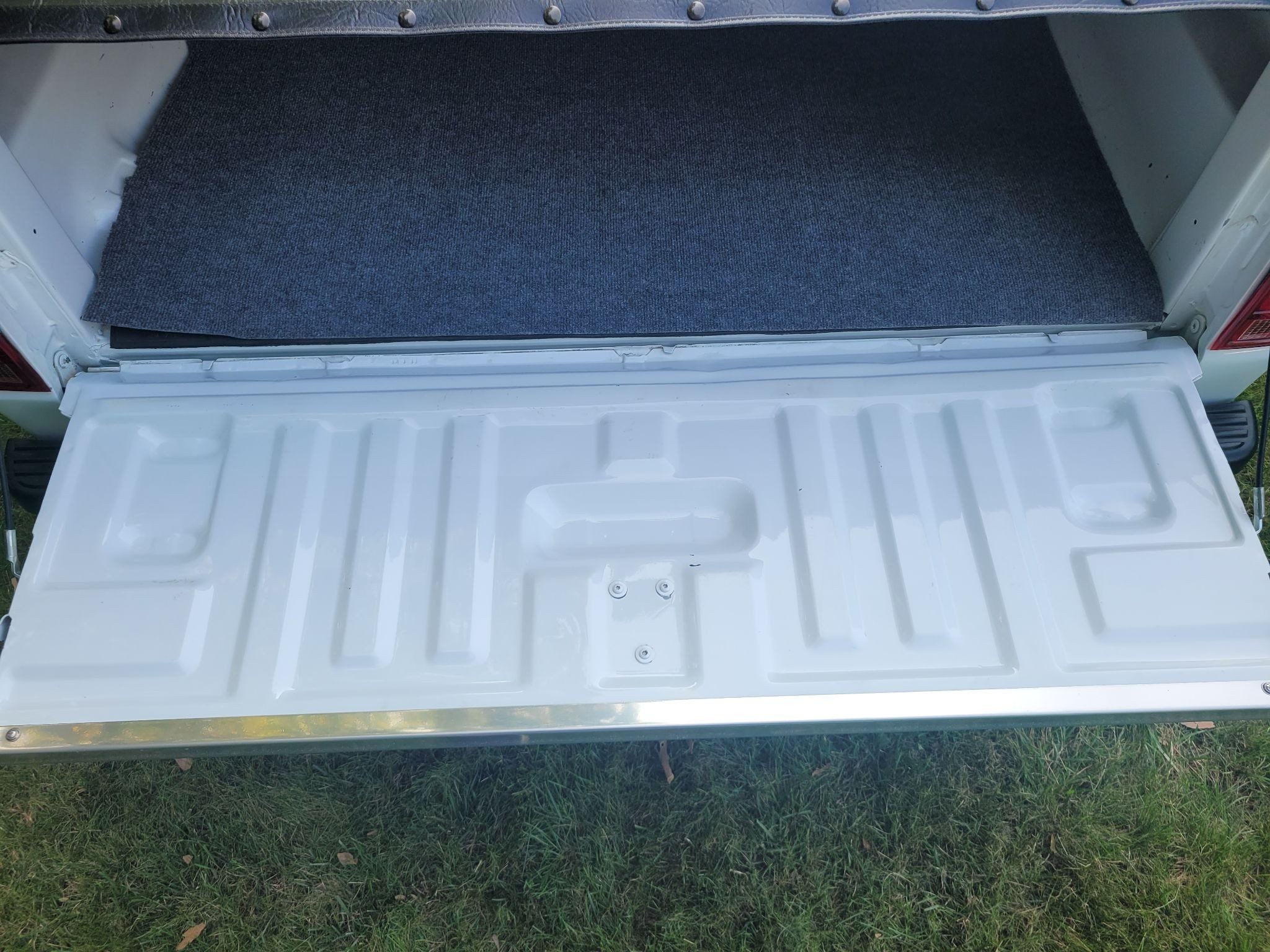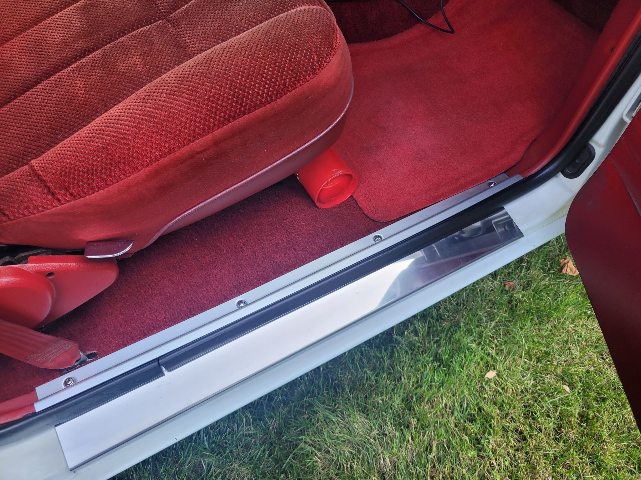 From the outside, the truck keeps its composure with a fresh white finish, clean chrome bumpers, and a set of polished wheels wrapped in BFGoodrich rubber. The long bed is neatly covered with a fitted tonneau, while the XLT badging remains as a subtle nod to its origins. Step inside and you’re greeted by a sea of red—plush cloth seats, matching carpets, and a tidy dashboard that still holds its original charm. The cab is clean and well-kept, with no excessive wear, showing the care it has received over the years.