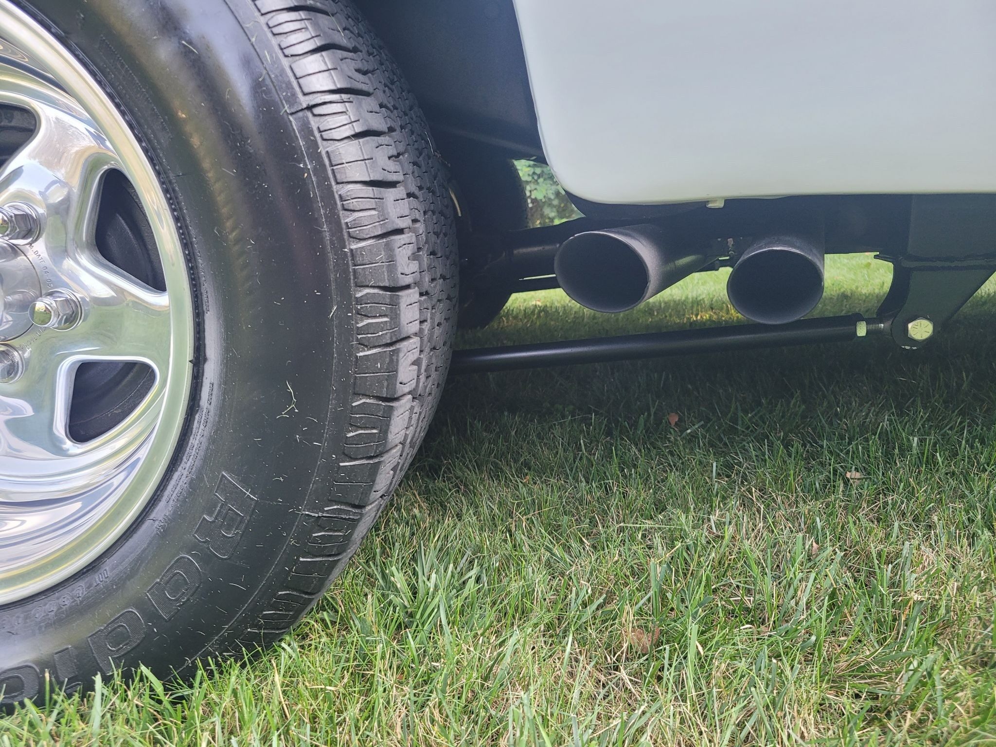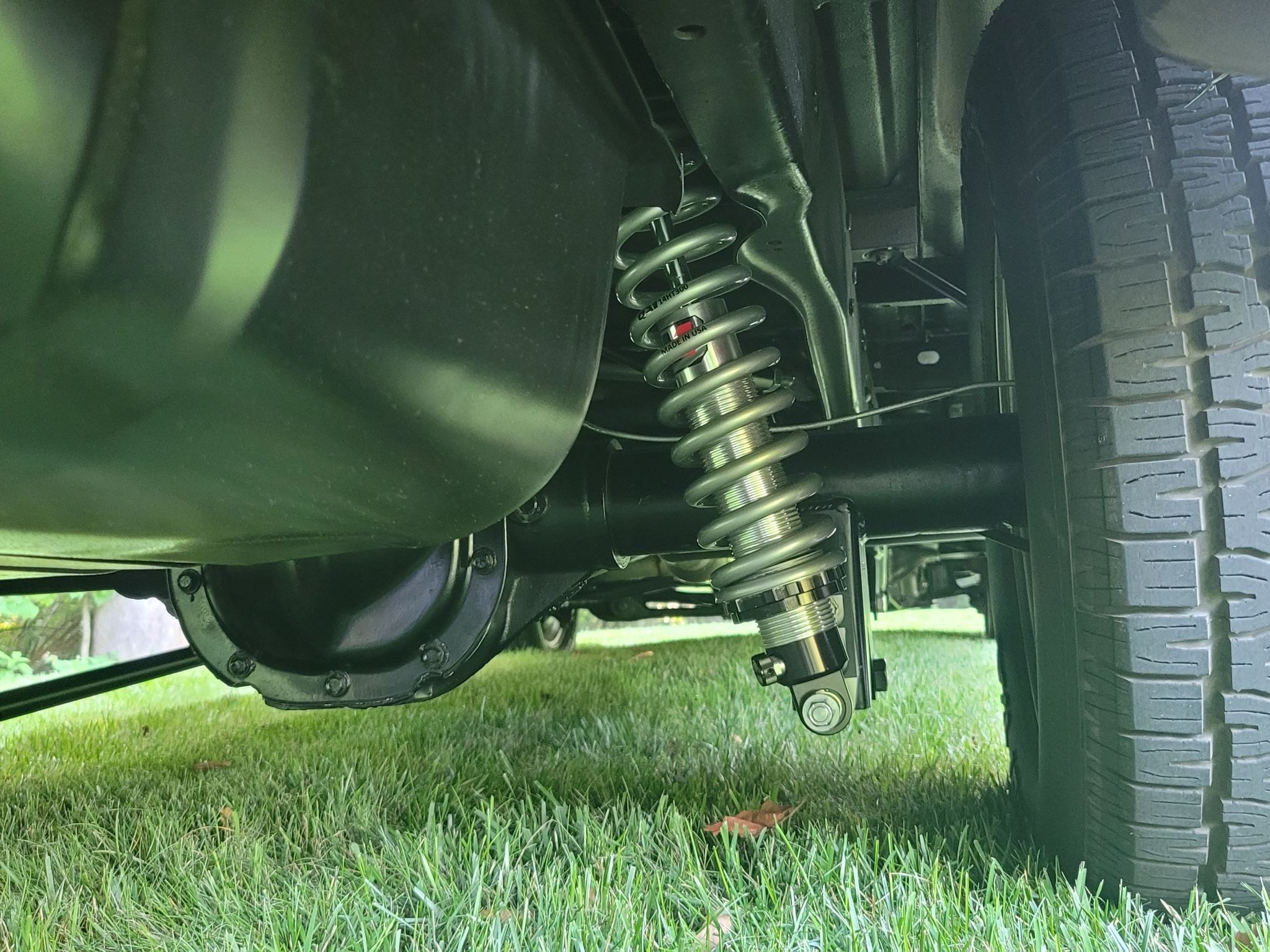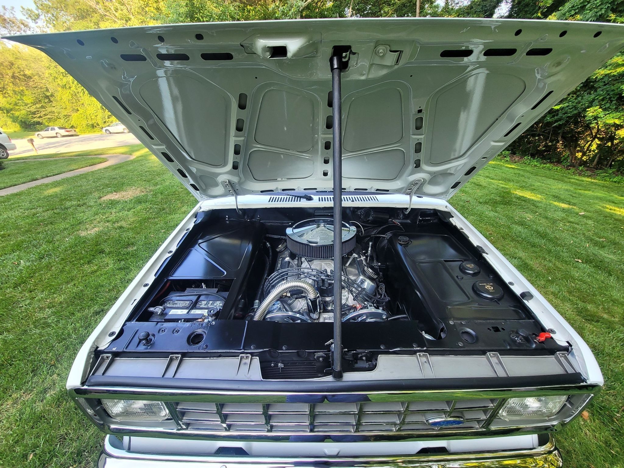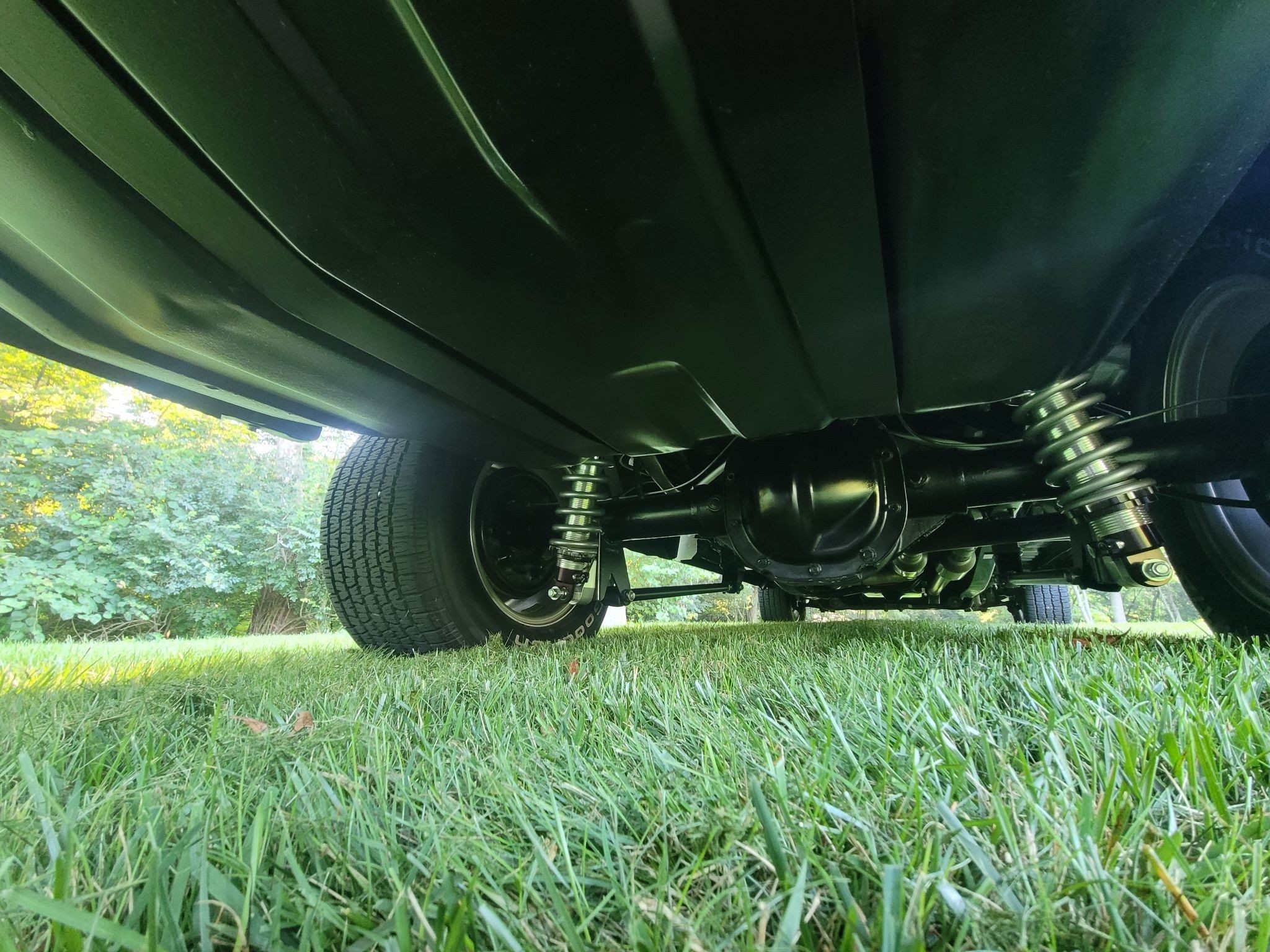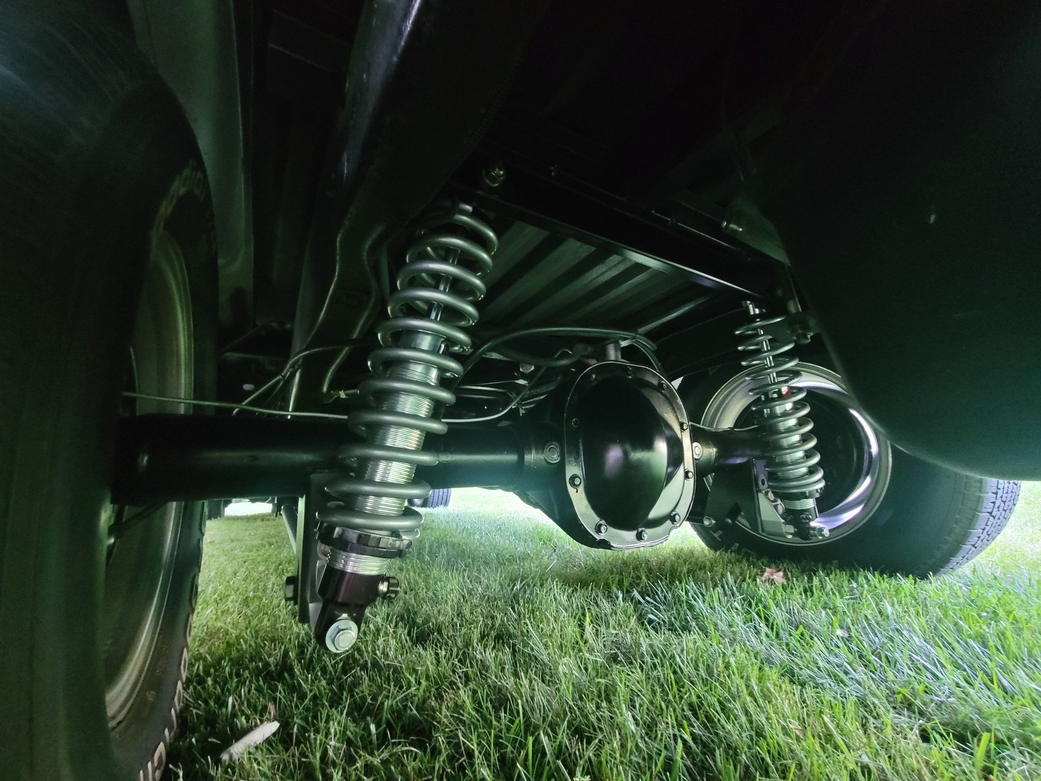 This Ranger’s mechanicals are where it really earns its stripes. The 363-cubic-inch V8 breathes through a dual exhaust with Bullet long-tube mufflers, offering a soundtrack that’s both aggressive and refined. Backing the motor is a stout AODE automatic transmission, while the chassis benefits from an all-new suspension setup: QA1 rear coilovers, fresh front springs, and a 4-link rear-end for optimal traction. The combination ensures this Ranger isn’t just quick in a straight line—it’s planted, predictable, and downright fun to drive.