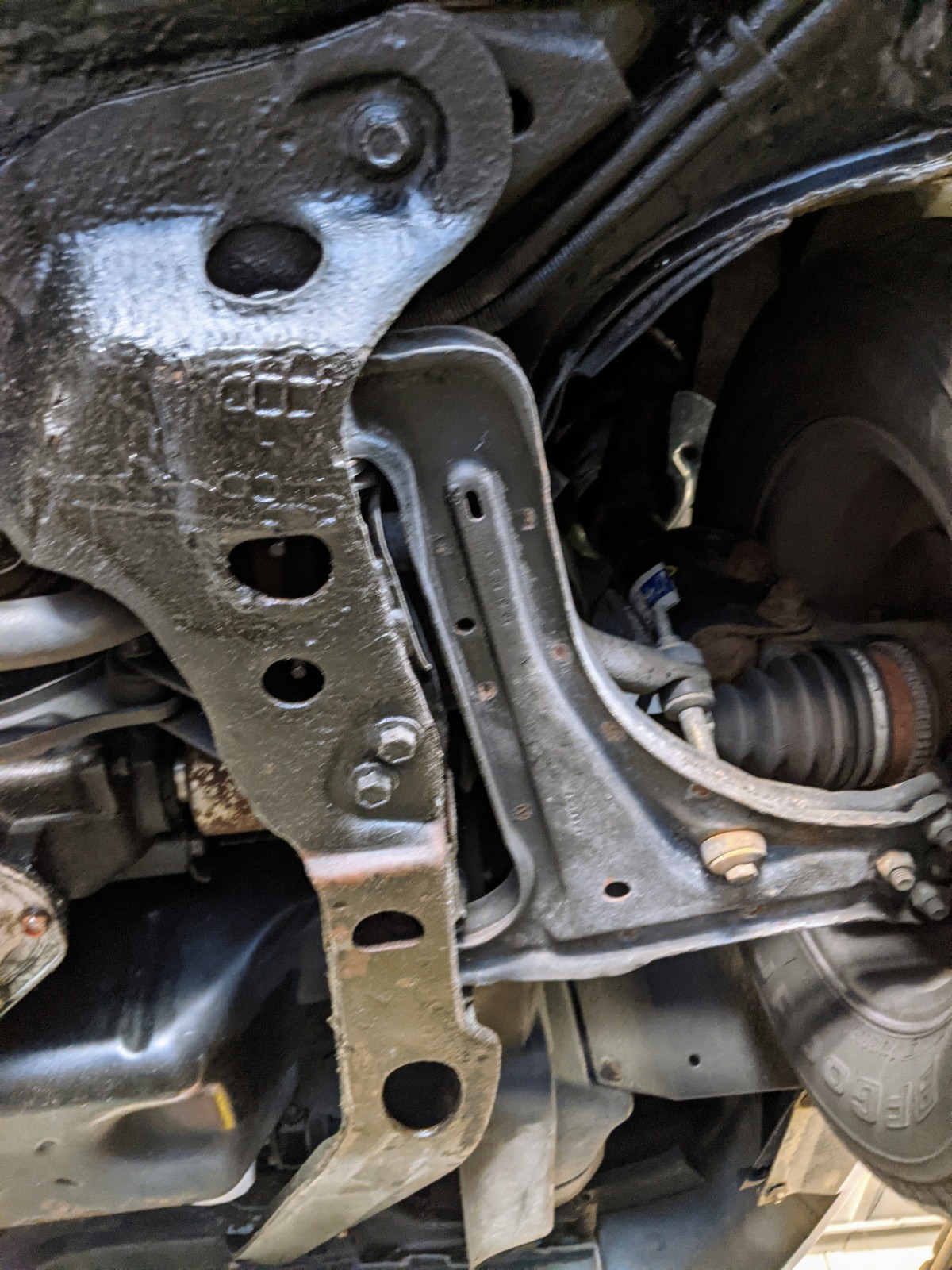 Pic 24 is showing some sort of tear or break in the front of the cross member/cradle forward of the right wheel.