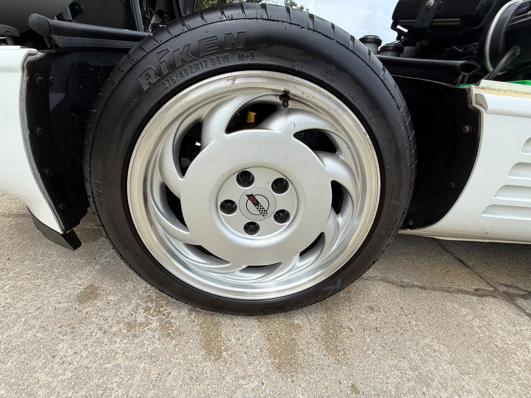 The ZR1 has wider rear wheels, but the regular Vette has 17″ x 9.5″ at all corners. The wheels on this car have been switched side to side. Thats bad because not only are the wheels directional, the tires are too.