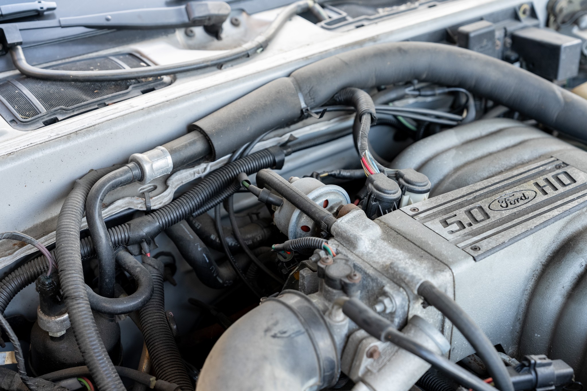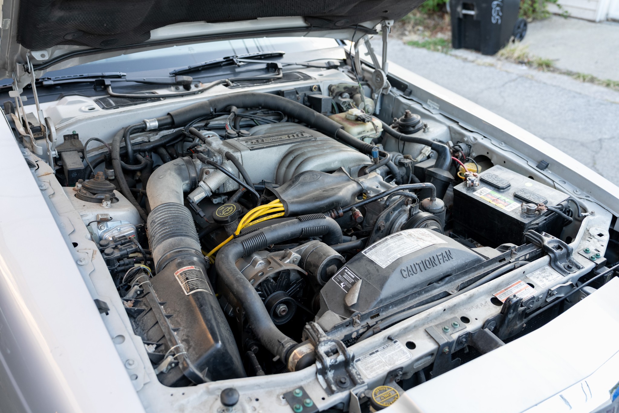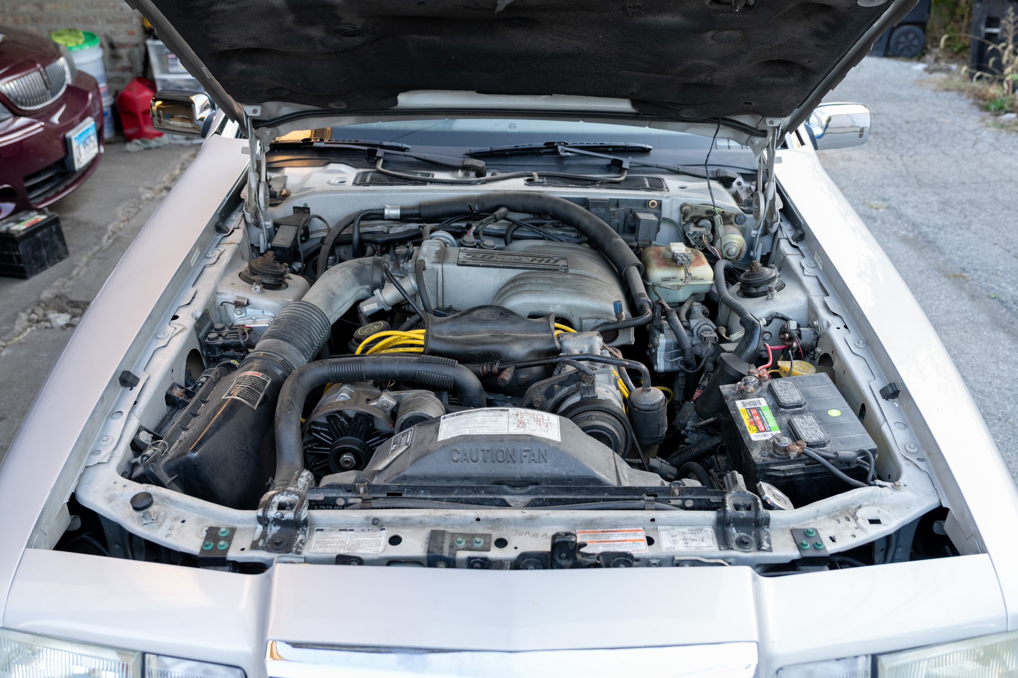 According to the auction listing, this Lincoln is powered by the 5.0-liter V8 engine, paired with an automatic transmission—the same powertrain that made the LSC a standout among personal luxury coupes of its time. That engine, shared with Ford’s Mustang GT of the era, delivered smooth power and surprising performance, making the Mark VII more than just a boulevard cruiser.