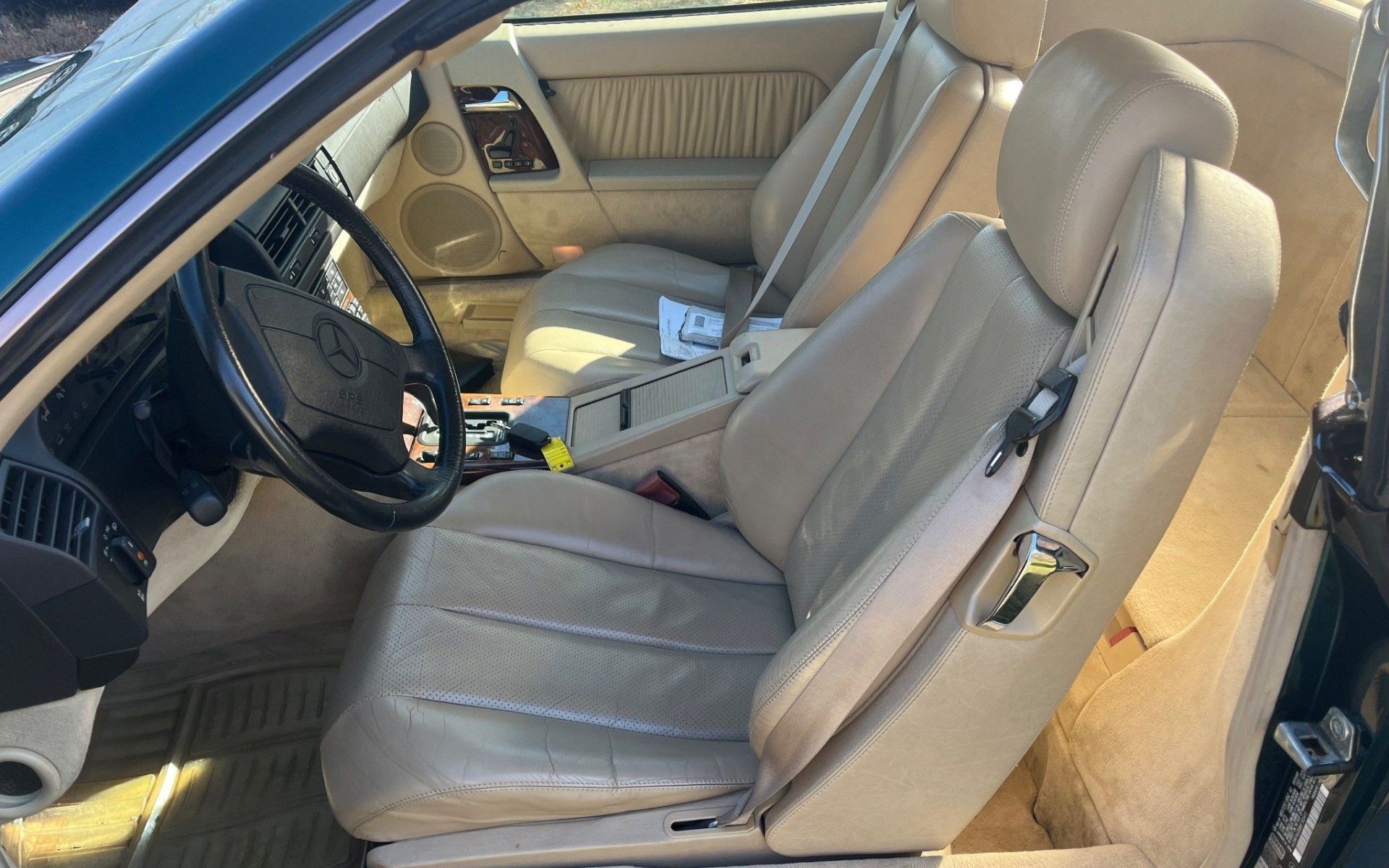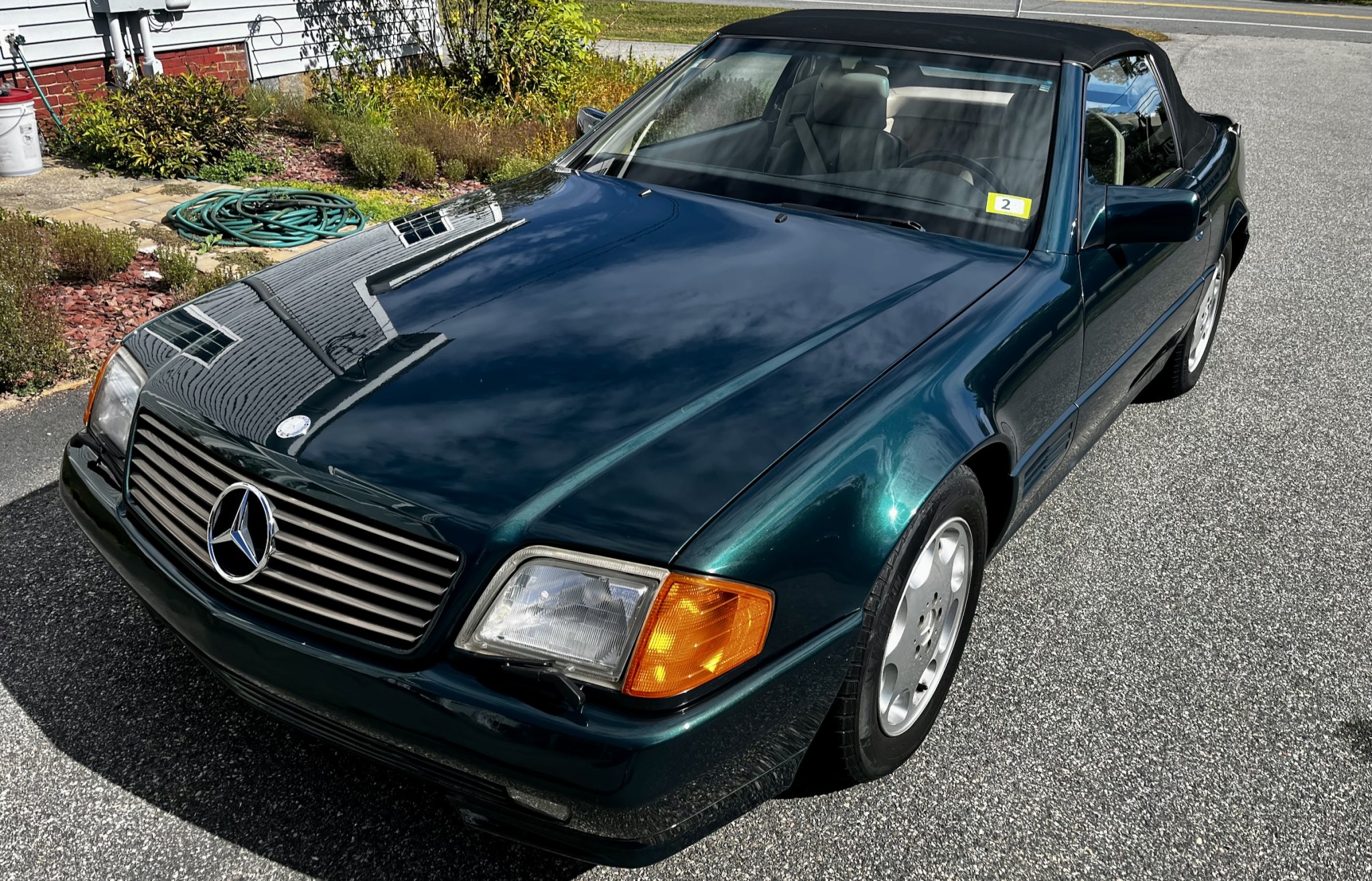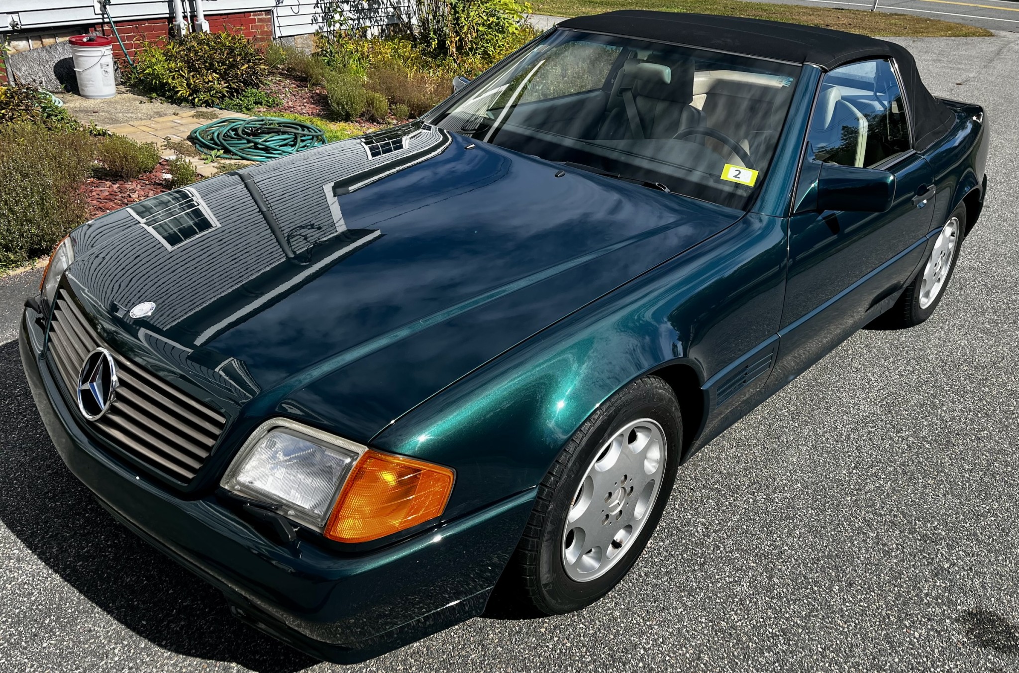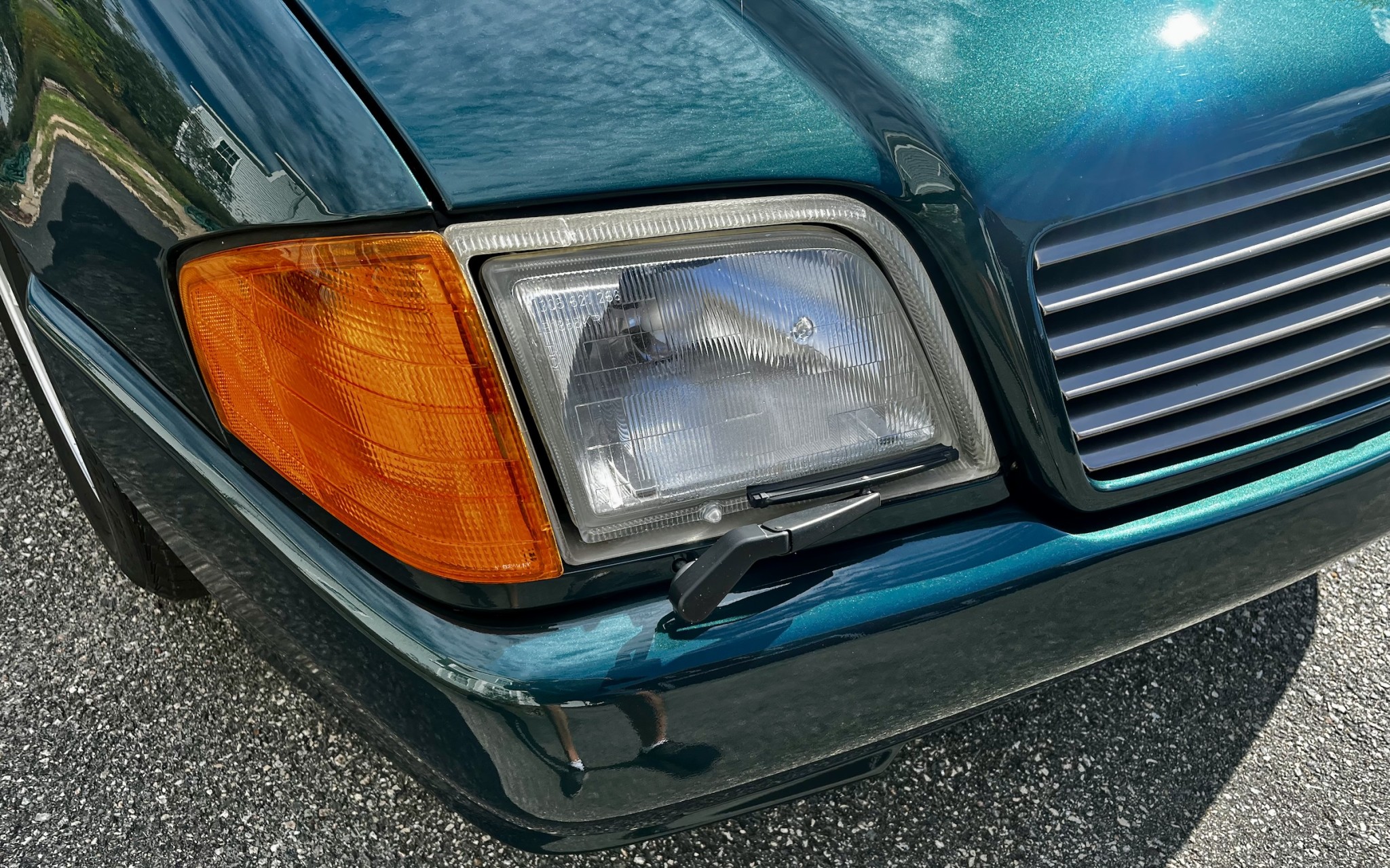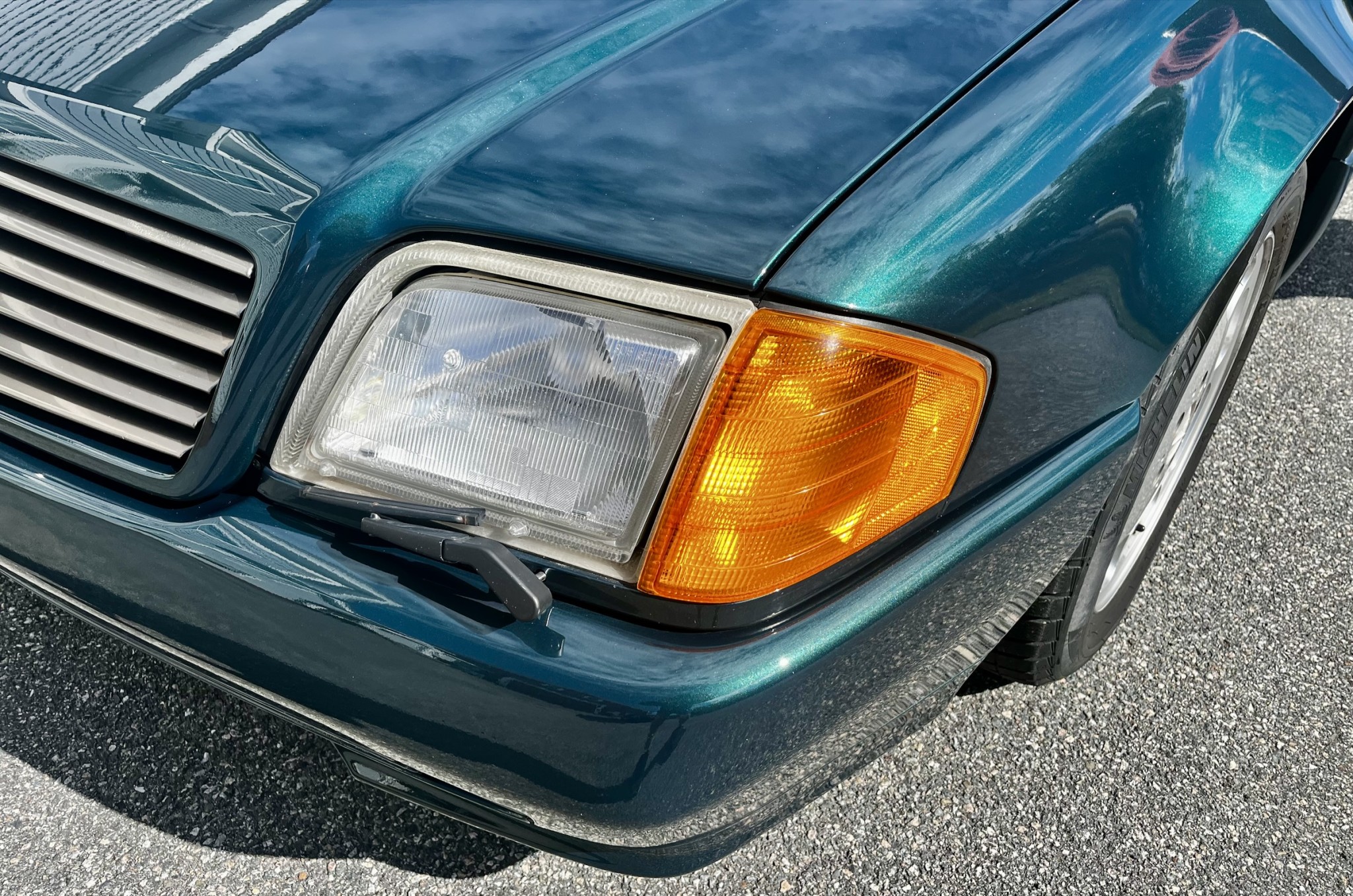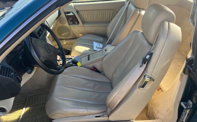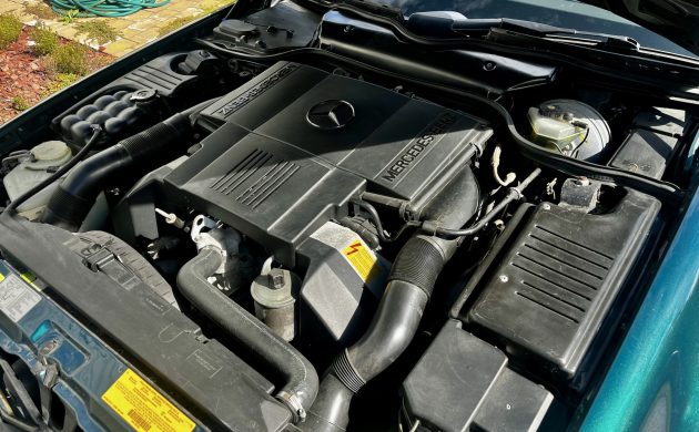 This particular SL500 stands out for its originality. Finished in its factory green paint, the car presents well with no rust and has clearly benefitted from years of careful garage storage. The sale includes both the power soft top and the removable hardtop, with the soft top’s back window recently replaced. All the relays and hydraulic pistons for the retractable top are reported to be in proper working order, an important consideration for prospective buyers.