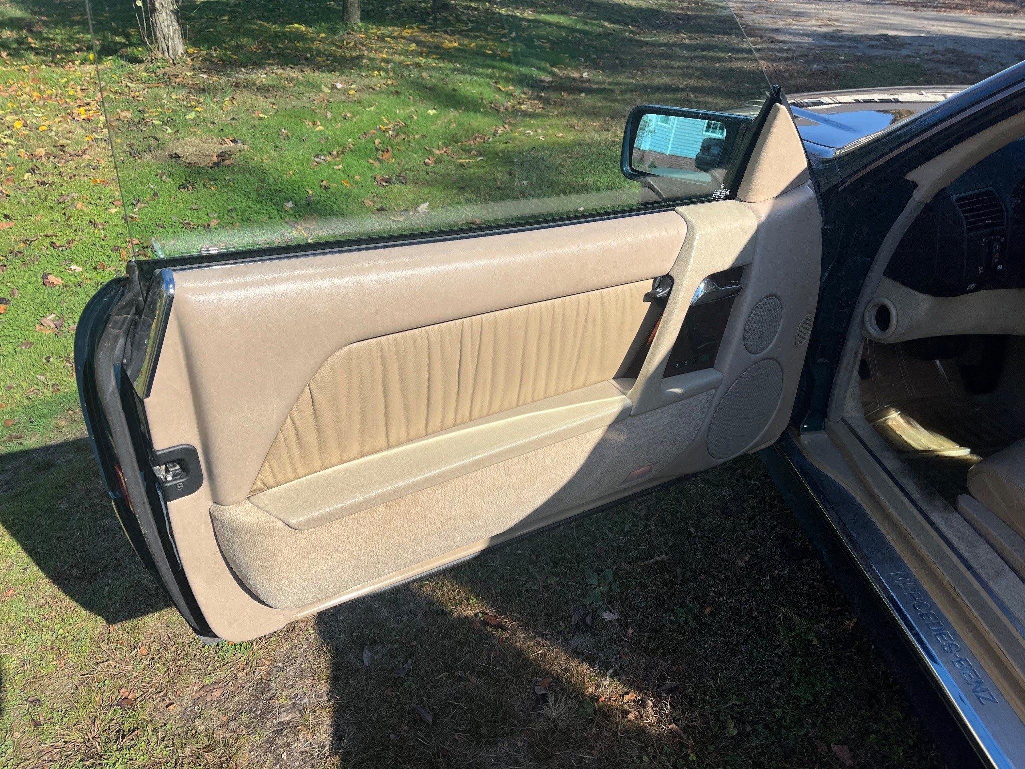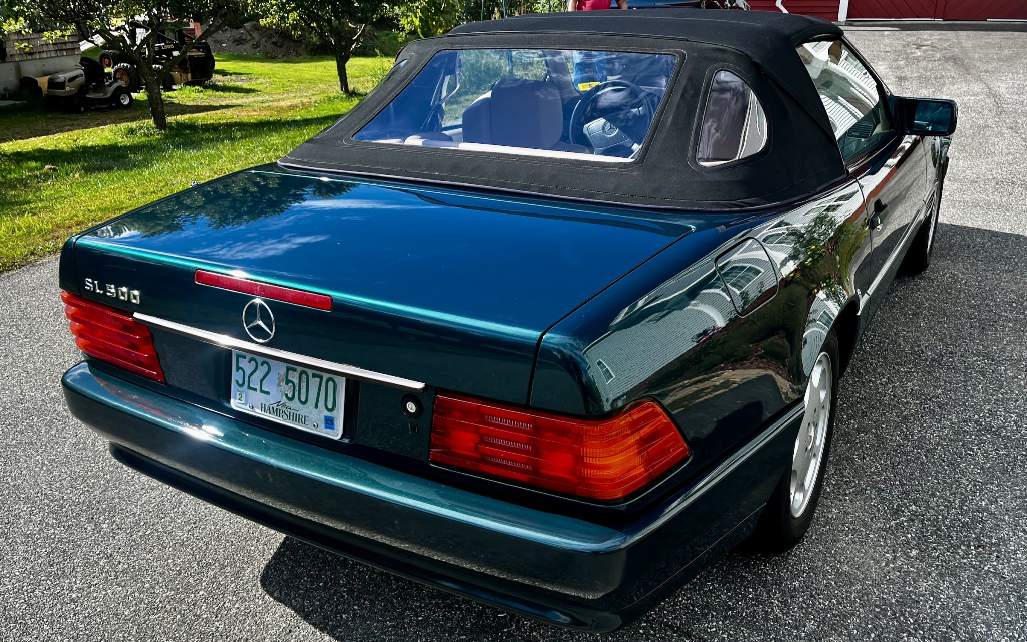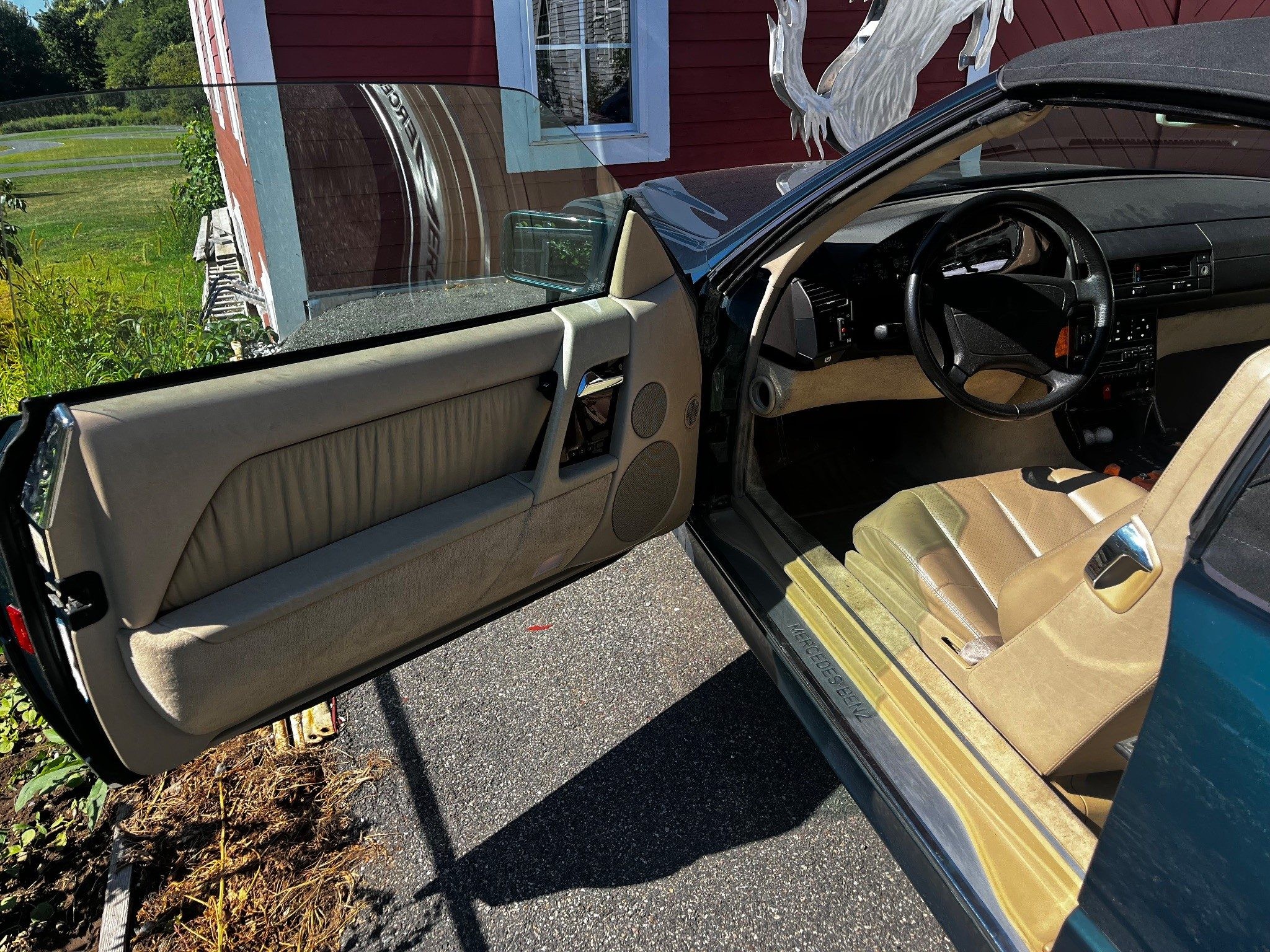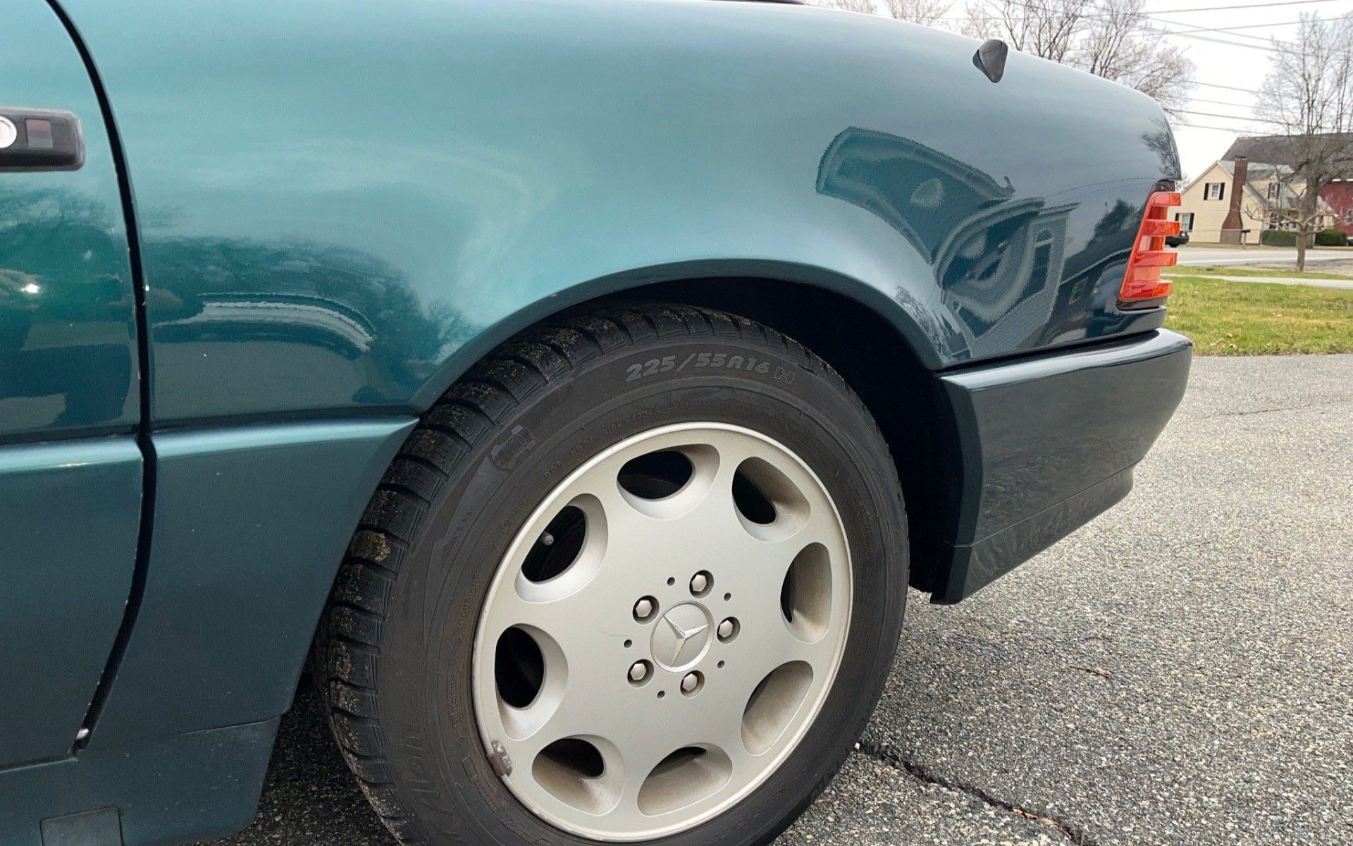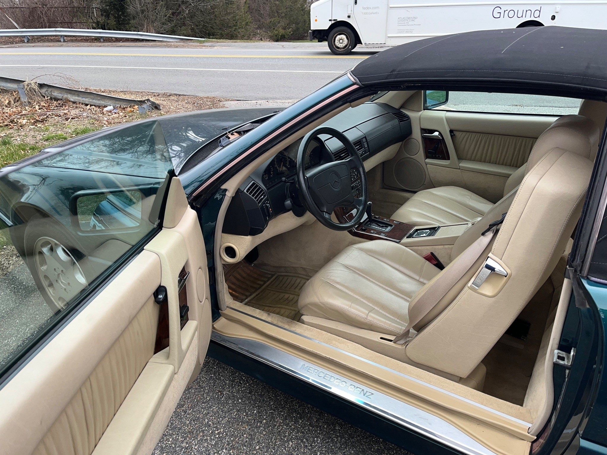 This particular SL500 stands out for its originality. Finished in its factory green paint, the car presents well with no rust and has clearly benefitted from years of careful garage storage. The sale includes both the power soft top and the removable hardtop, with the soft top’s back window recently replaced. All the relays and hydraulic pistons for the retractable top are reported to be in proper working order, an important consideration for prospective buyers.