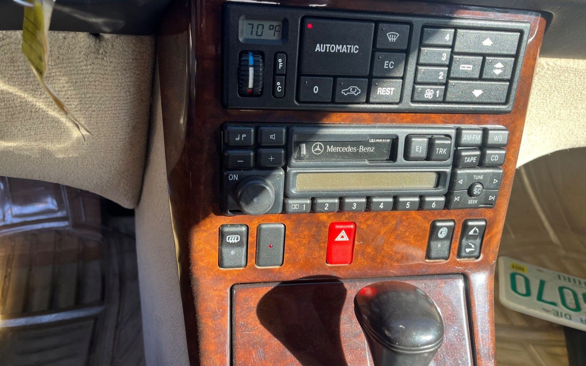 Inside, the car offers a comfortable and well-preserved interior. The non-smoking cabin features burn-free leather seating surfaces that remain in excellent condition. The dash, controls, and switchgear all reflect the solid design Mercedes was known for during this era.