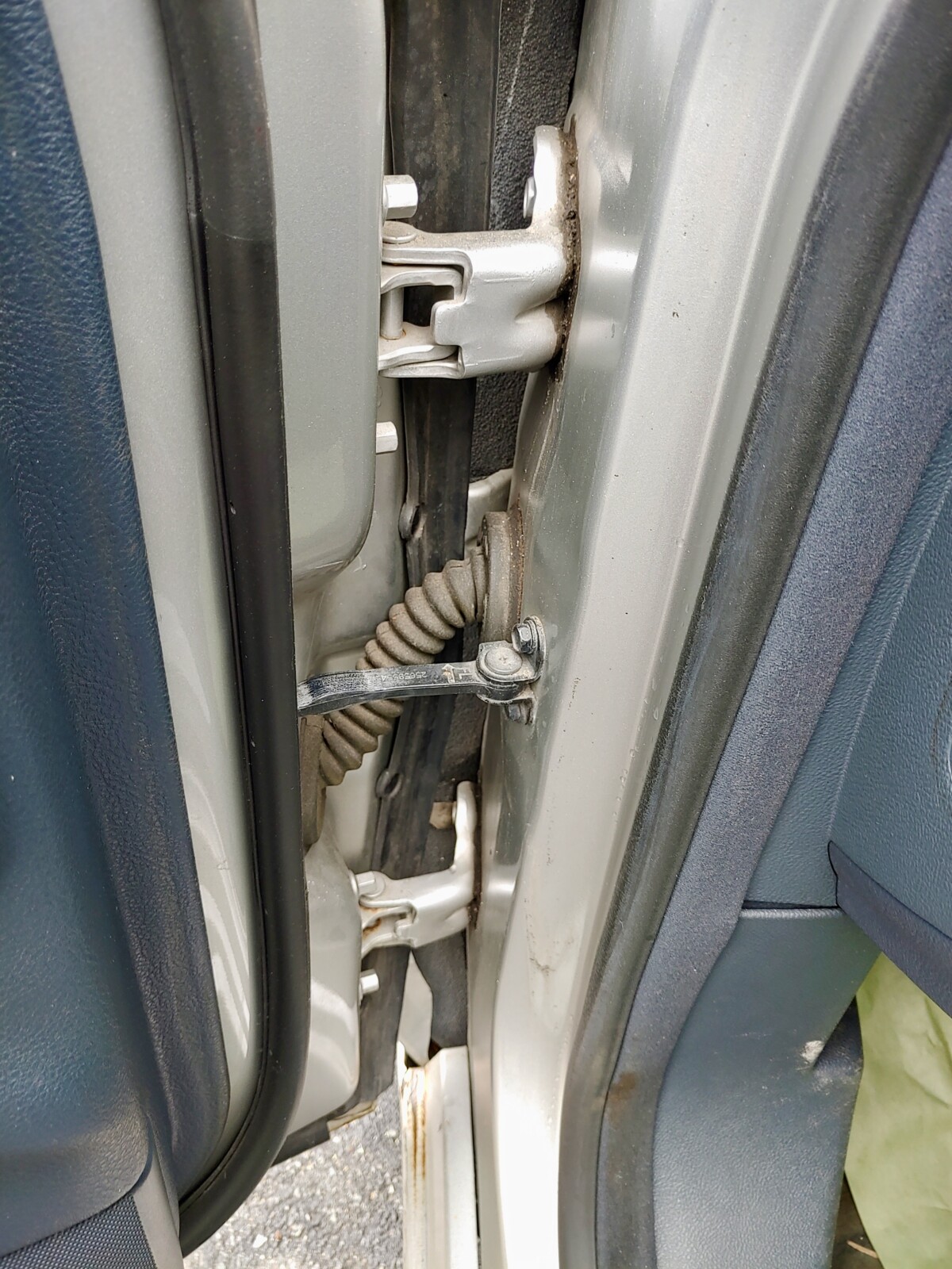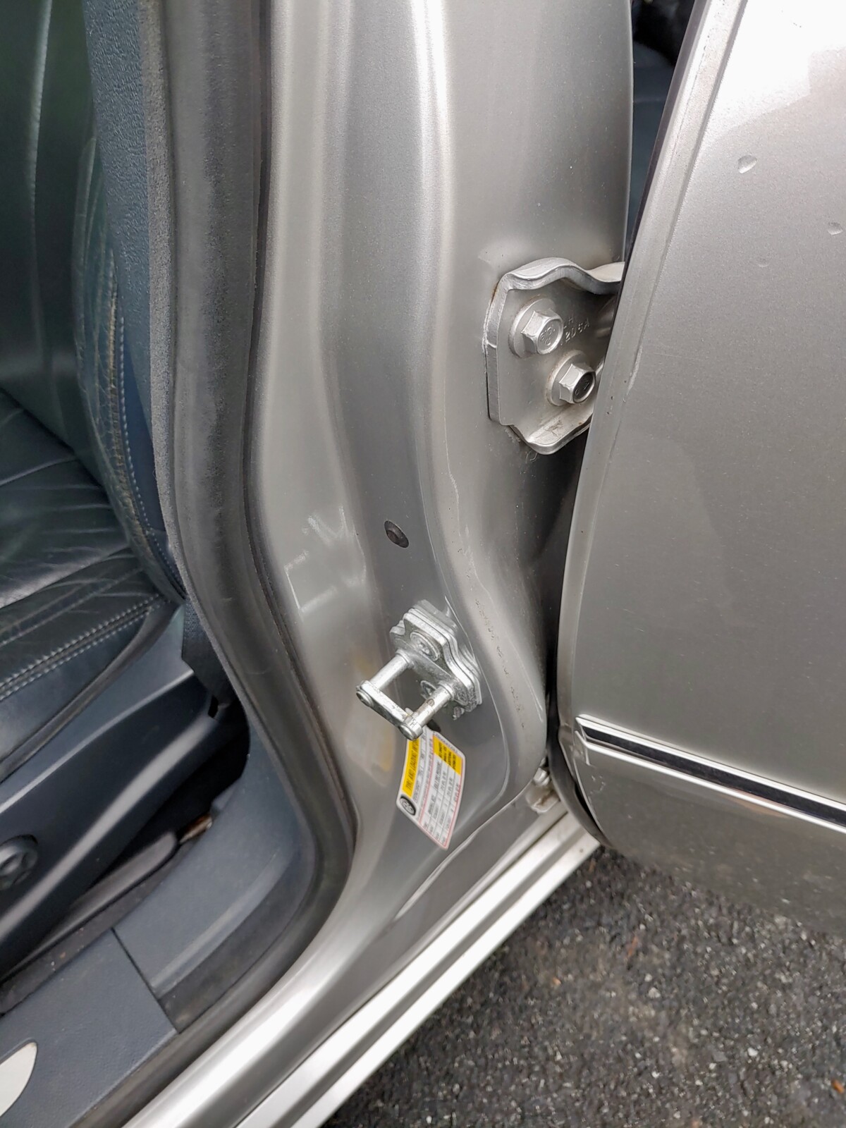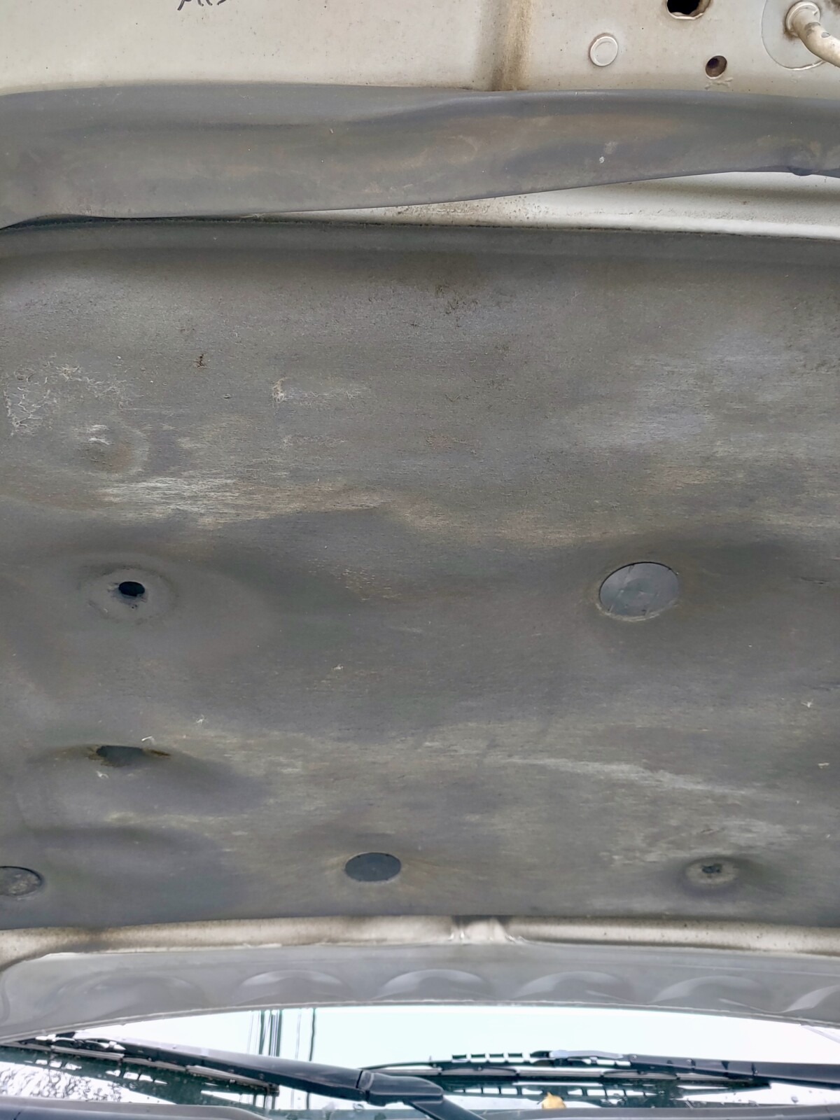 In the last photo there is a horizontal series of approx. five spot welds where a panel is attached to the tower for the left front suspension. The metal in this area appears to be rather crudely beaten back into shape as it “works” and is not as visible as an outer body panel. Also note the spot weld for the hood prop rod.