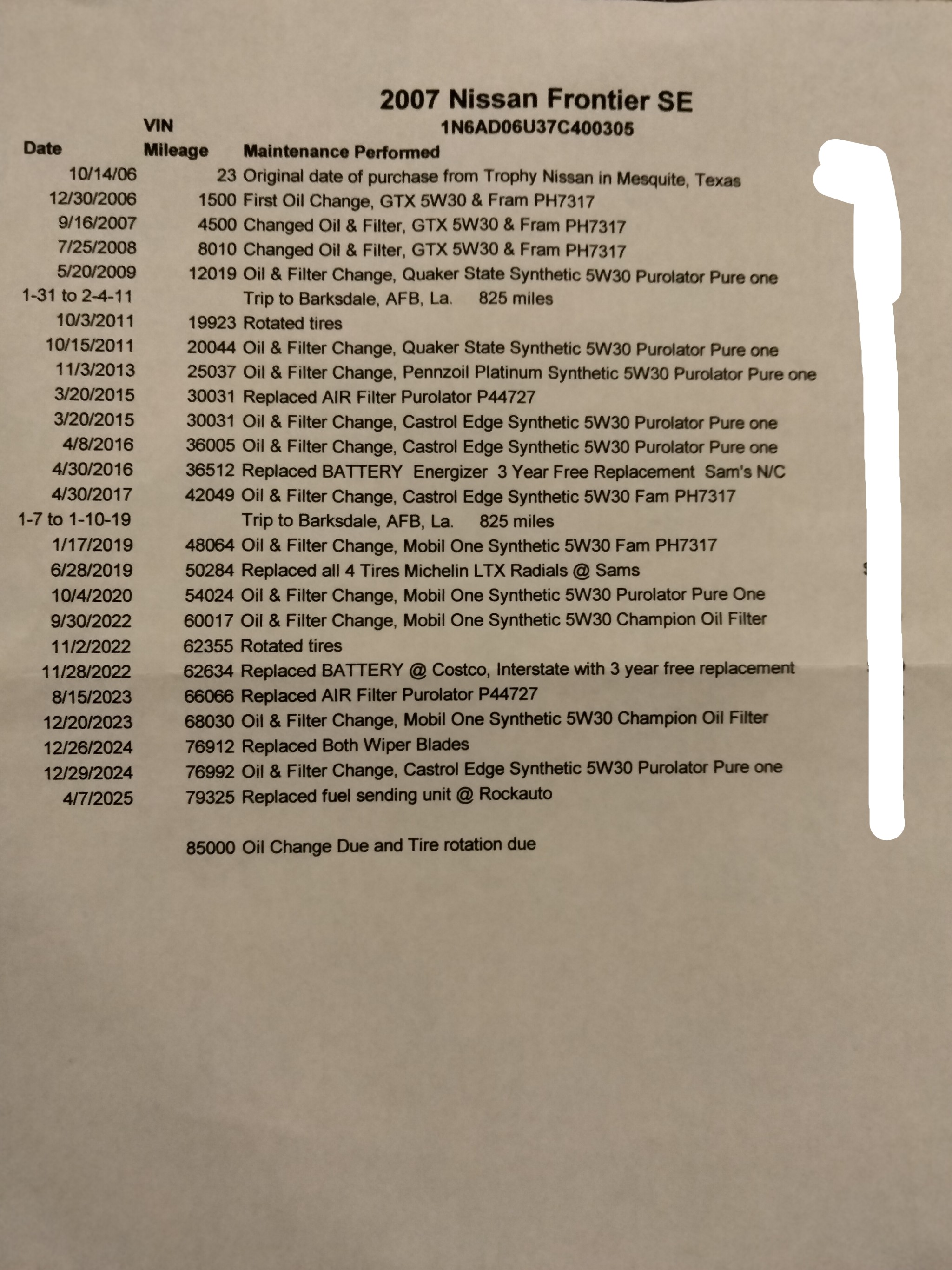 I have a 2019 Frontier King cab SV, just under 20k miles on 4 liter/auto trans.