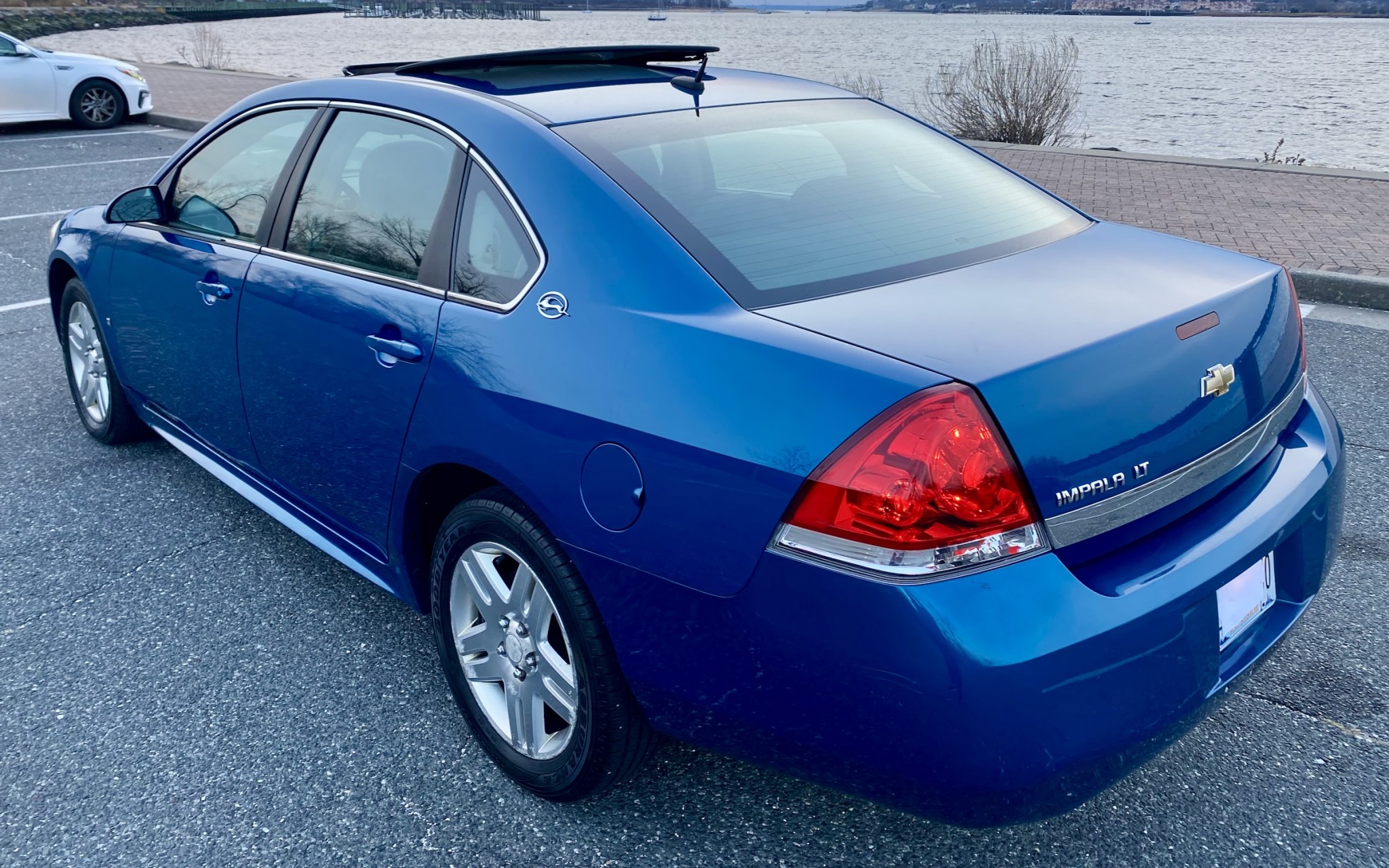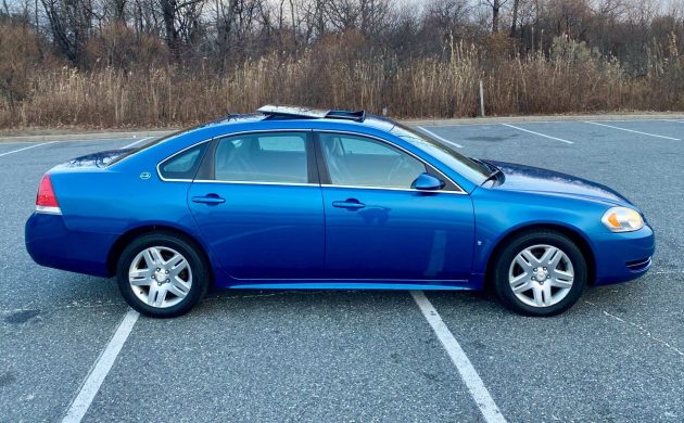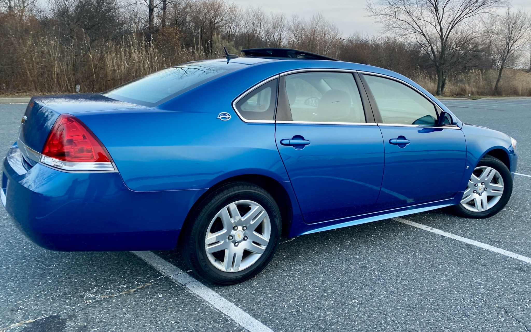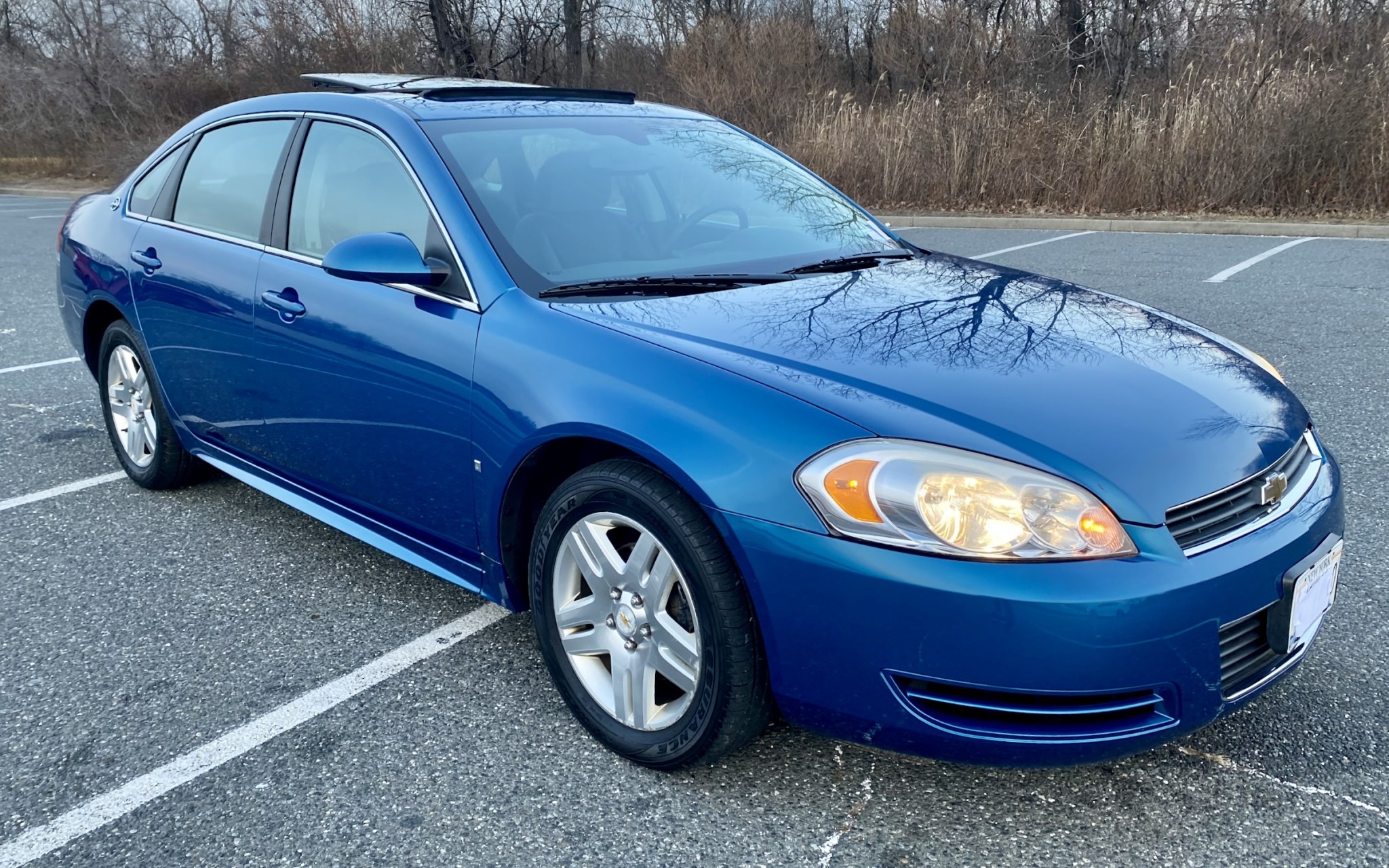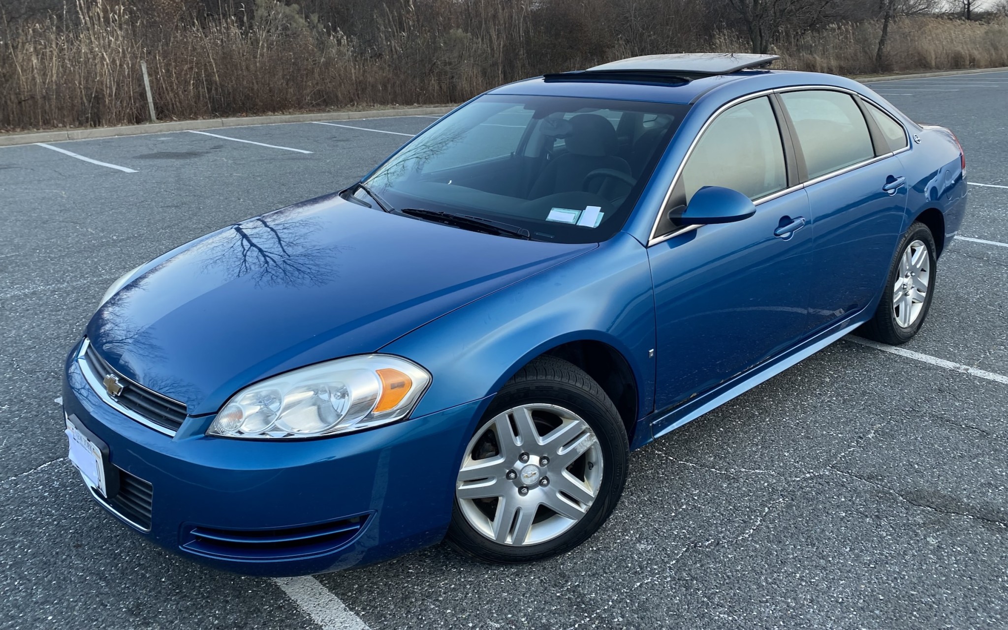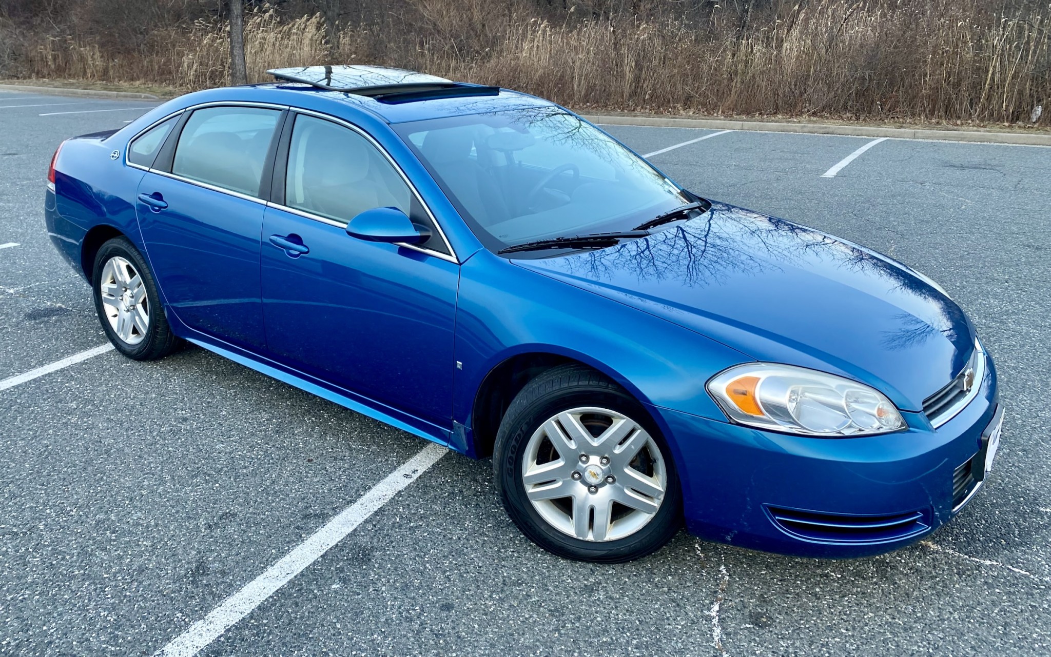 The ninth-generation Impala debuted in 2005 and was based on General Motors’ updated W-body platform, which was also shared with the Pontiac Grand Prix and Buick LaCrosse. This flexible platform allowed for a variety of engine options and features. The bulk of Impalas built during this era were sold as fleet and police cars. This example is a mid-range LT and features a tilt and sliding glass moonroof, metallic paint, remote start, satellite-ready radio, cold air conditioning, and alloy wheels.