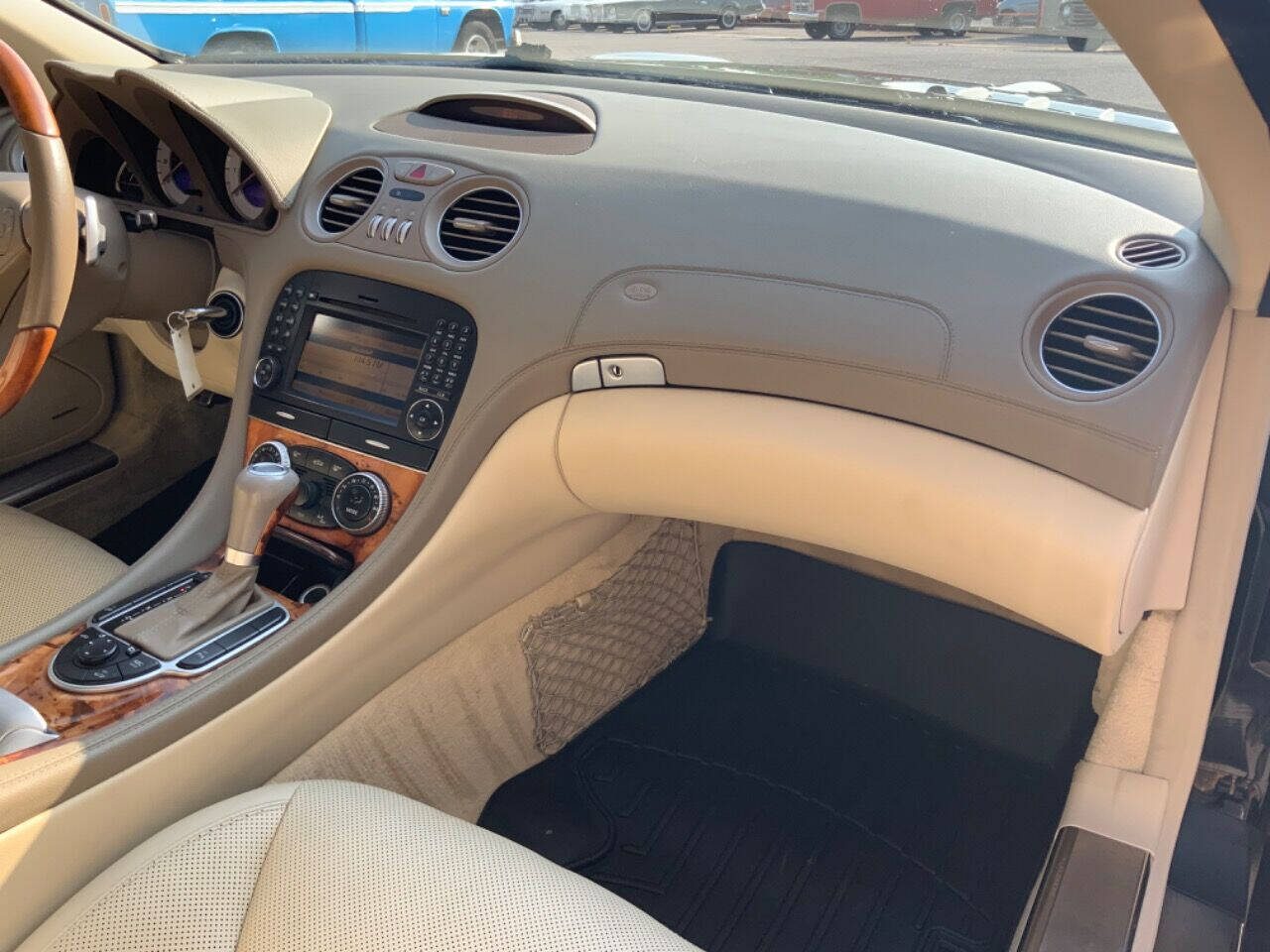One of the SL’s defining features is its retractable hardtop, and this example includes the upgraded glass panoramic sunroof. That versatility—coupe-like security when closed and open-air enjoyment at the push of a button—has long been a hallmark of the SL line.