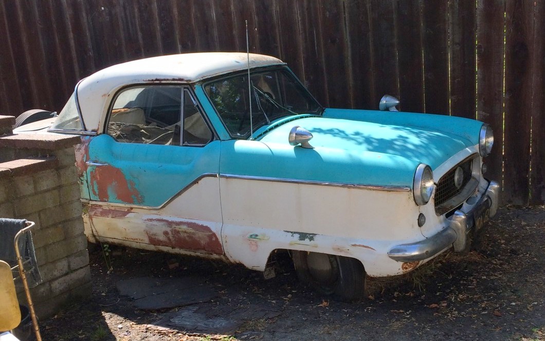 This auction is for a pair of Nash Metropolitans. They have been sitting in the yard for over 30 years so they are probably only good for parts. The ’57 does have a clear title and its engine isn’t seized up so it might make an ambitious restoration project. They are located in Oakland,California and you can place your bid below if you’re interested. Thanks for listing these with us Rudy!
