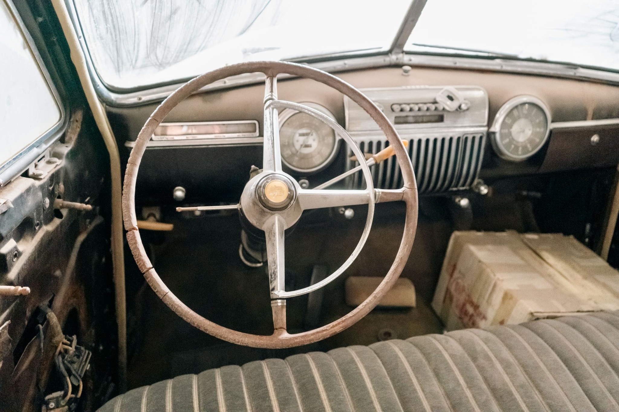 By 1947, it was no longer uncommon for a new Cadillac to be ordered with GM’s famous Hydramatic four-speed automatic transmission, and indeed, the original owner’s chauffeur didn’t need to worry about a clutch pedal when plying the streets of a major metropolis. There are stacks of parts in the interior (see the pictures below), so I can’t tell if this is the five- or seven-passenger model, but it’s little matter; there will be plenty of legroom either way. It would be hard to find a better method for showcasing.