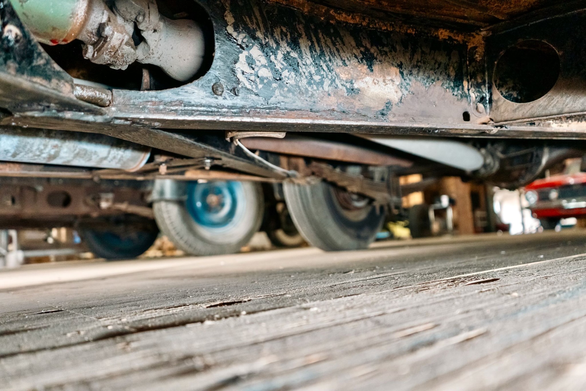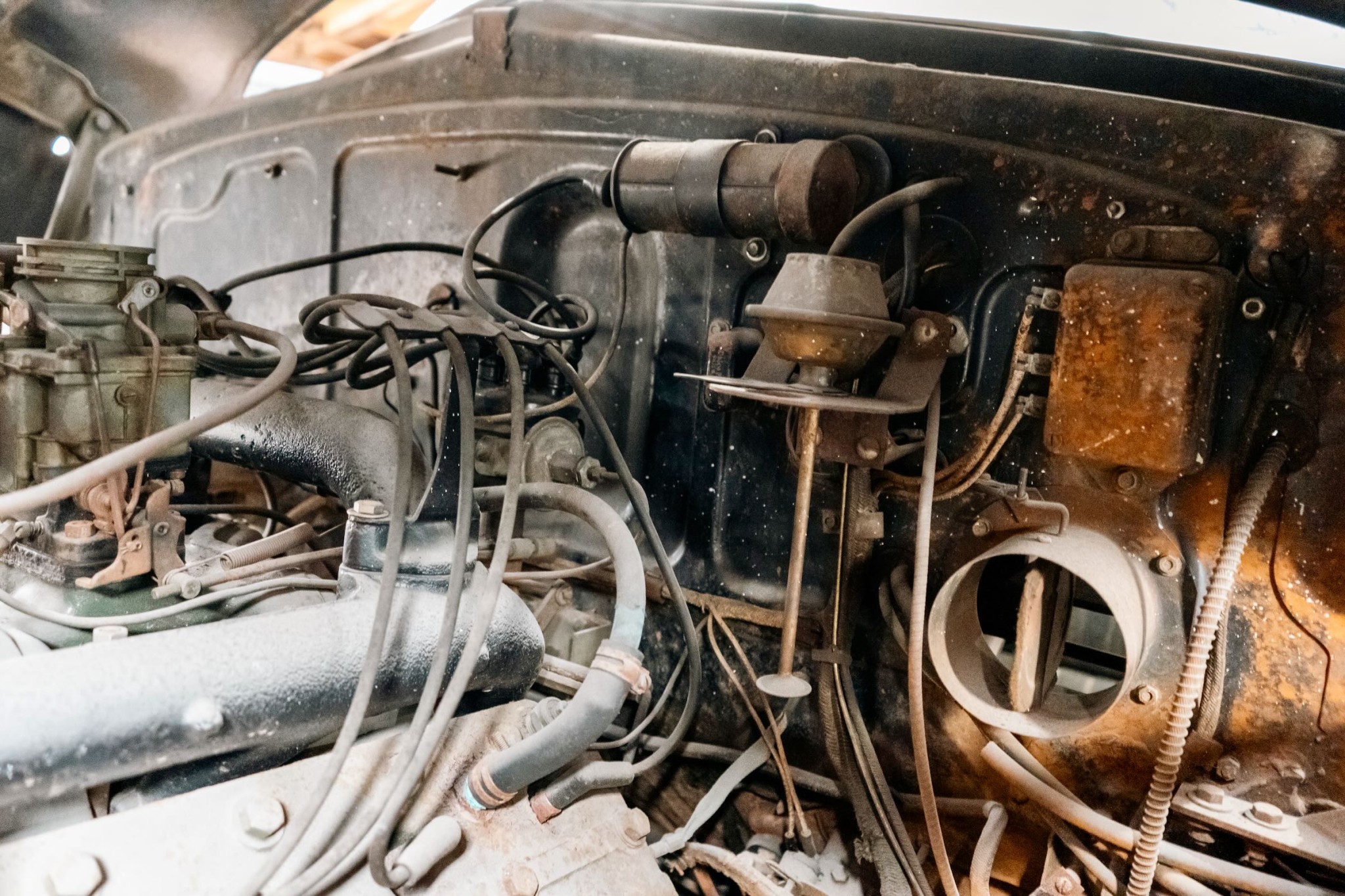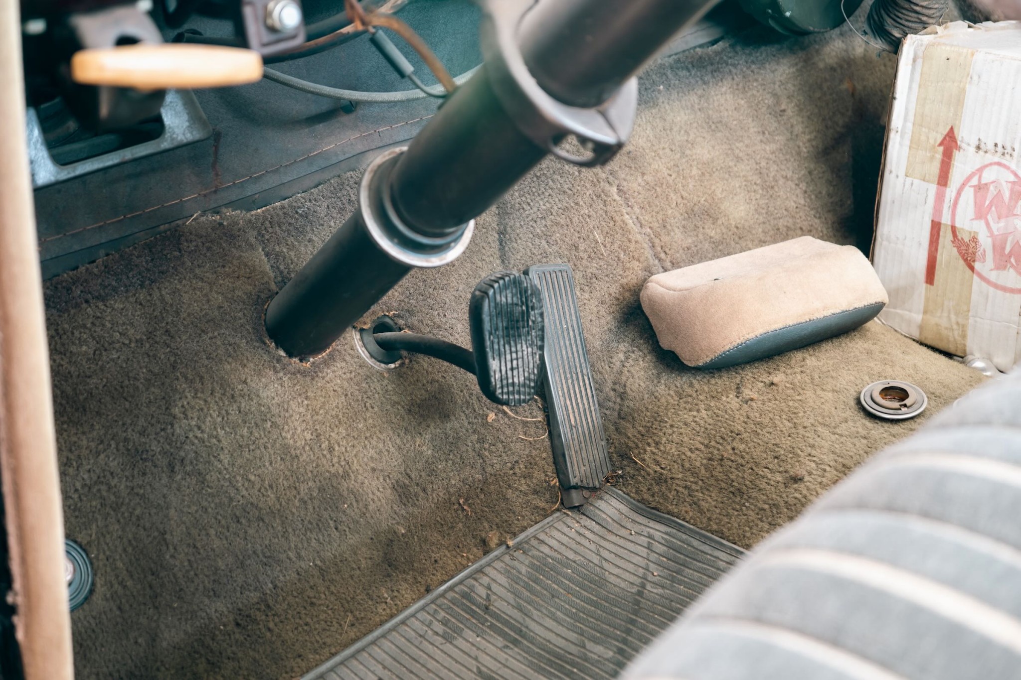 The undercarriage is fairly clean, although there are a pair of crudely welded patches behind the rear axle. Given the amount of work the car will need, cutting those out and giving them another try won’t be more than a bump in the road on this journey.
