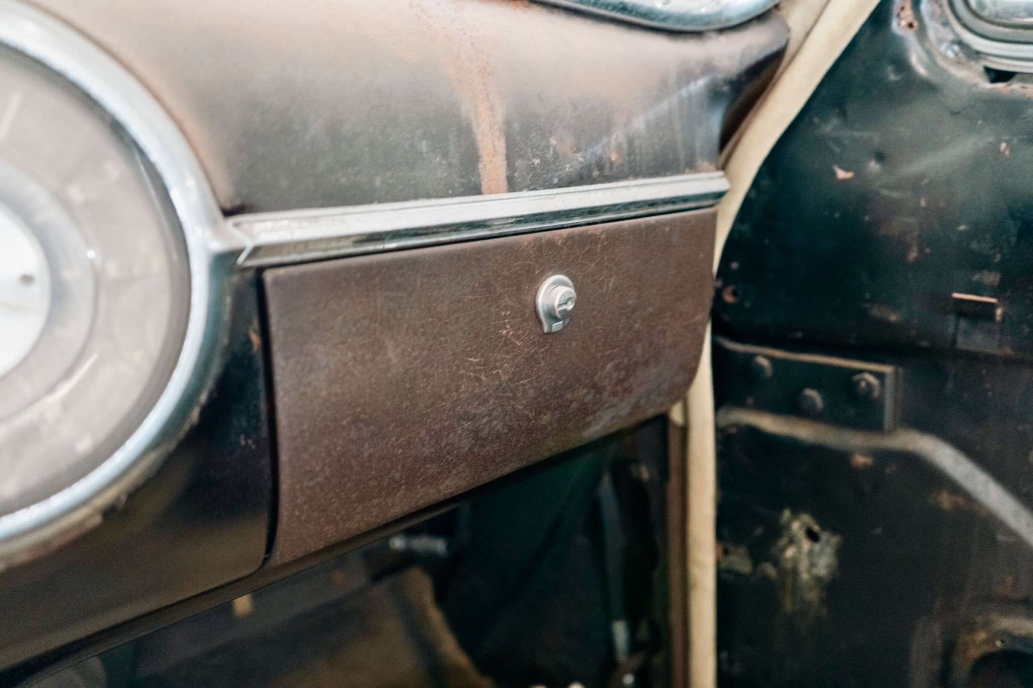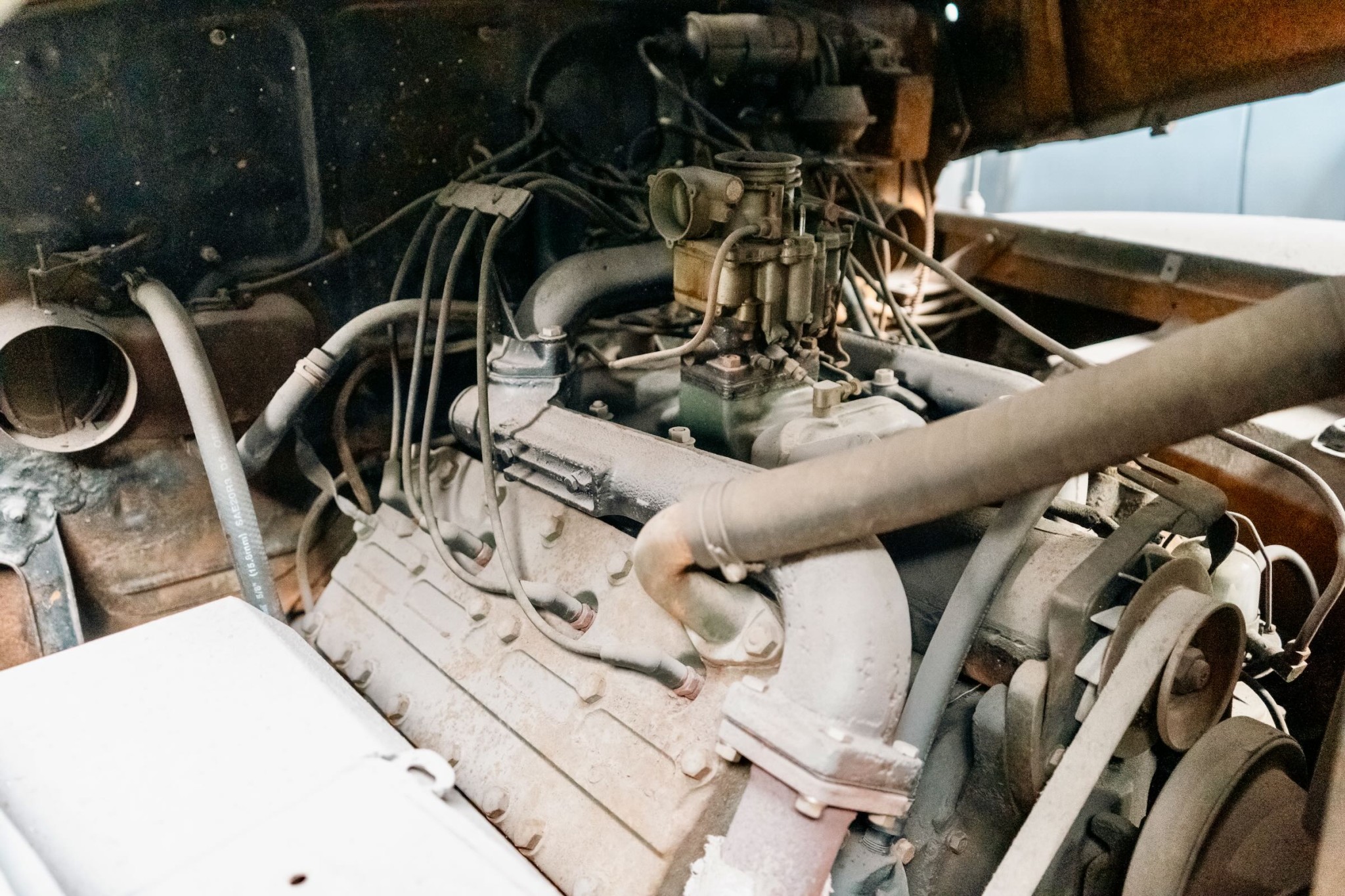 The engine looks complete, down to its Stromberg “Aerotype” carburetor and high-mounted exhaust manifolds. Serviceability is magnificent in these old Cadillacs, aside from having to lean over those wide fenders to get to anything. The engine itself is Cadillac’s long-running 346-cubic-inch flathead V8, producing 150 horsepower in its last few years of production. We don’t know if the engine itself is free, but it appears to be stored in a fairly dry location, so chances aren’t bad that you could get this Cadillac running given a little time and patience.