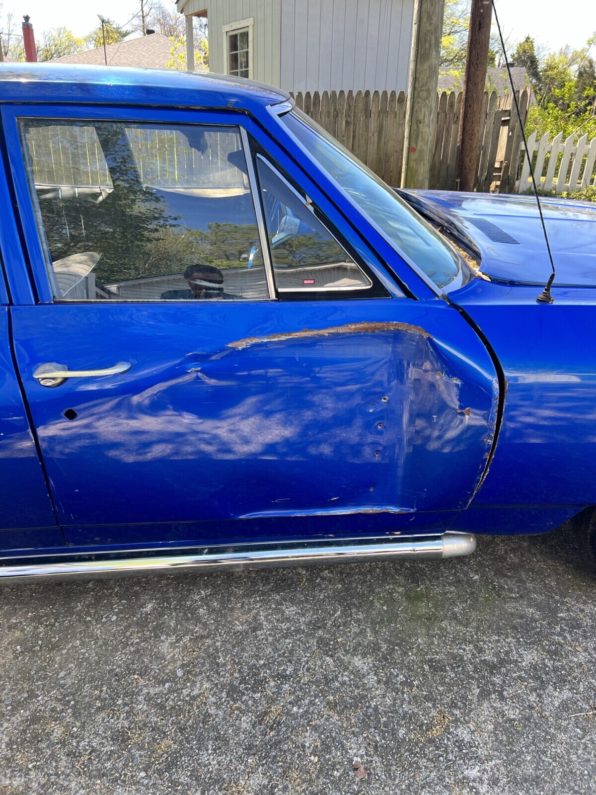 No rear door handle on the only side you get to see. Someone was trying to disguise this car’s identity.