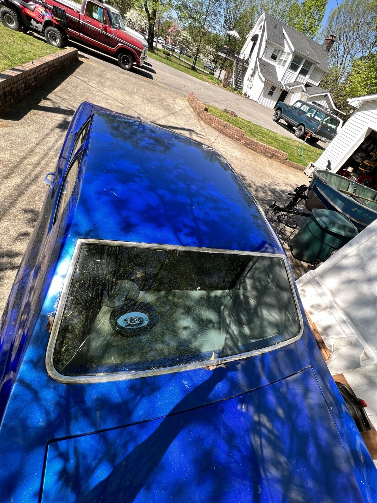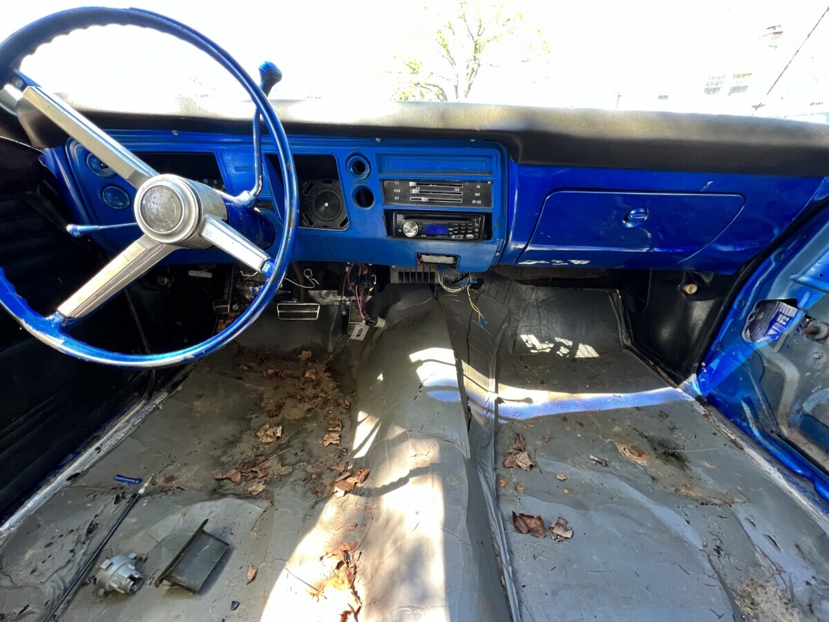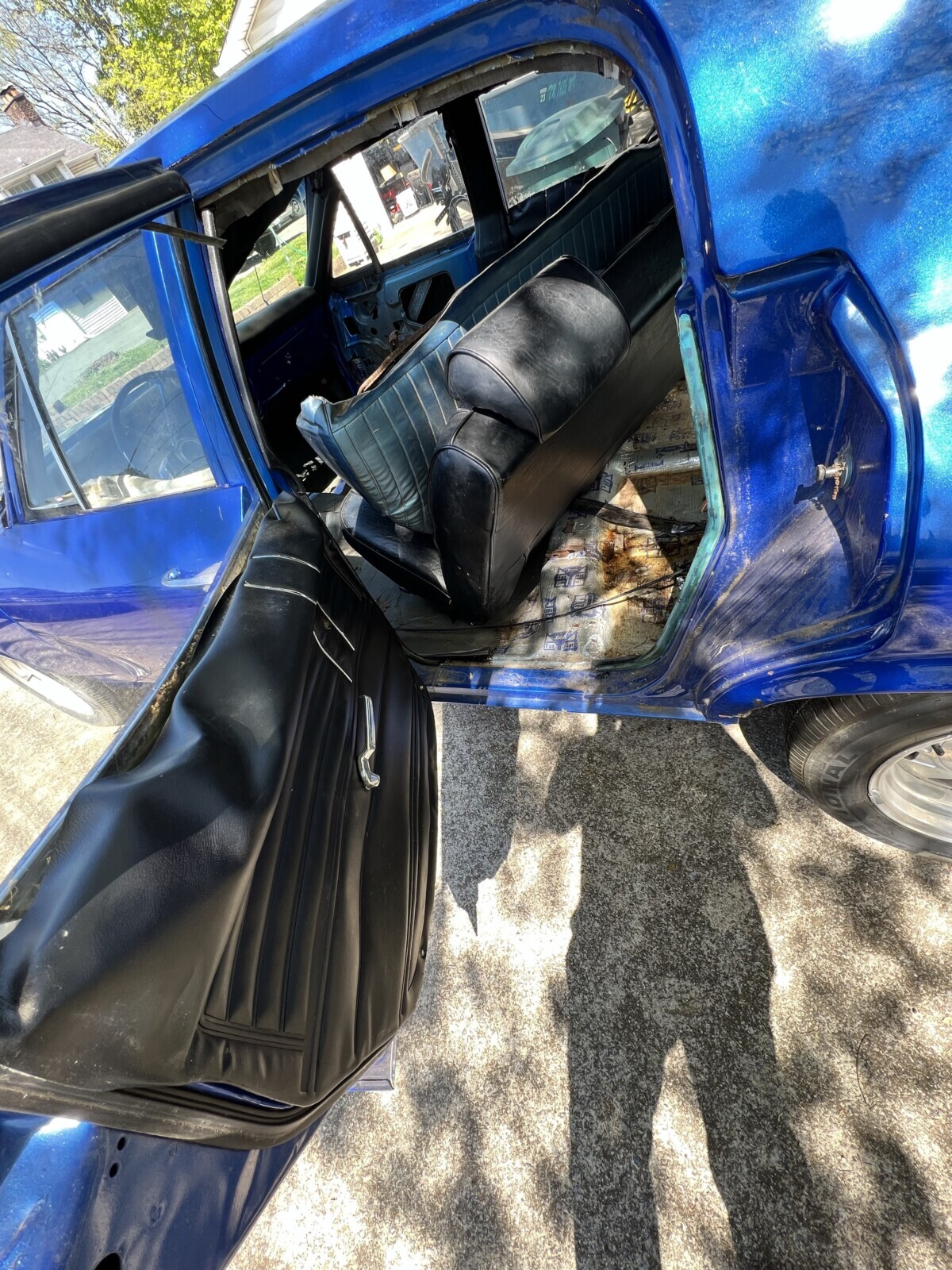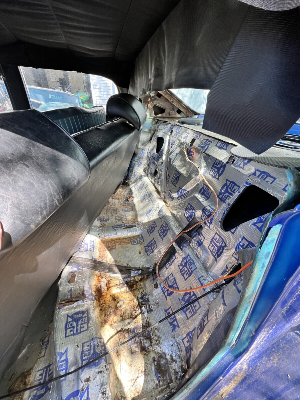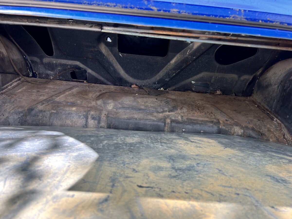 What a heap! And in my backyard no less. Looks like someone went crazy with the blue paint inside and I hesitate to say the sound deadening is anything but amateur hour. Good luck to the future owner.