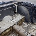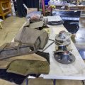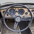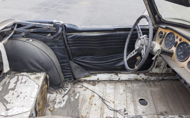 As you can see, the interior is largely disassembled, but the seats and a new dash pad will come with the car. The missing carpet gives us an opportunity to examine the virtually rust-free floor pans. More work will have to be done if you’re giving this car the restoration that such an early build so richly deserves, but parts availability for TRs is not usually a problem.