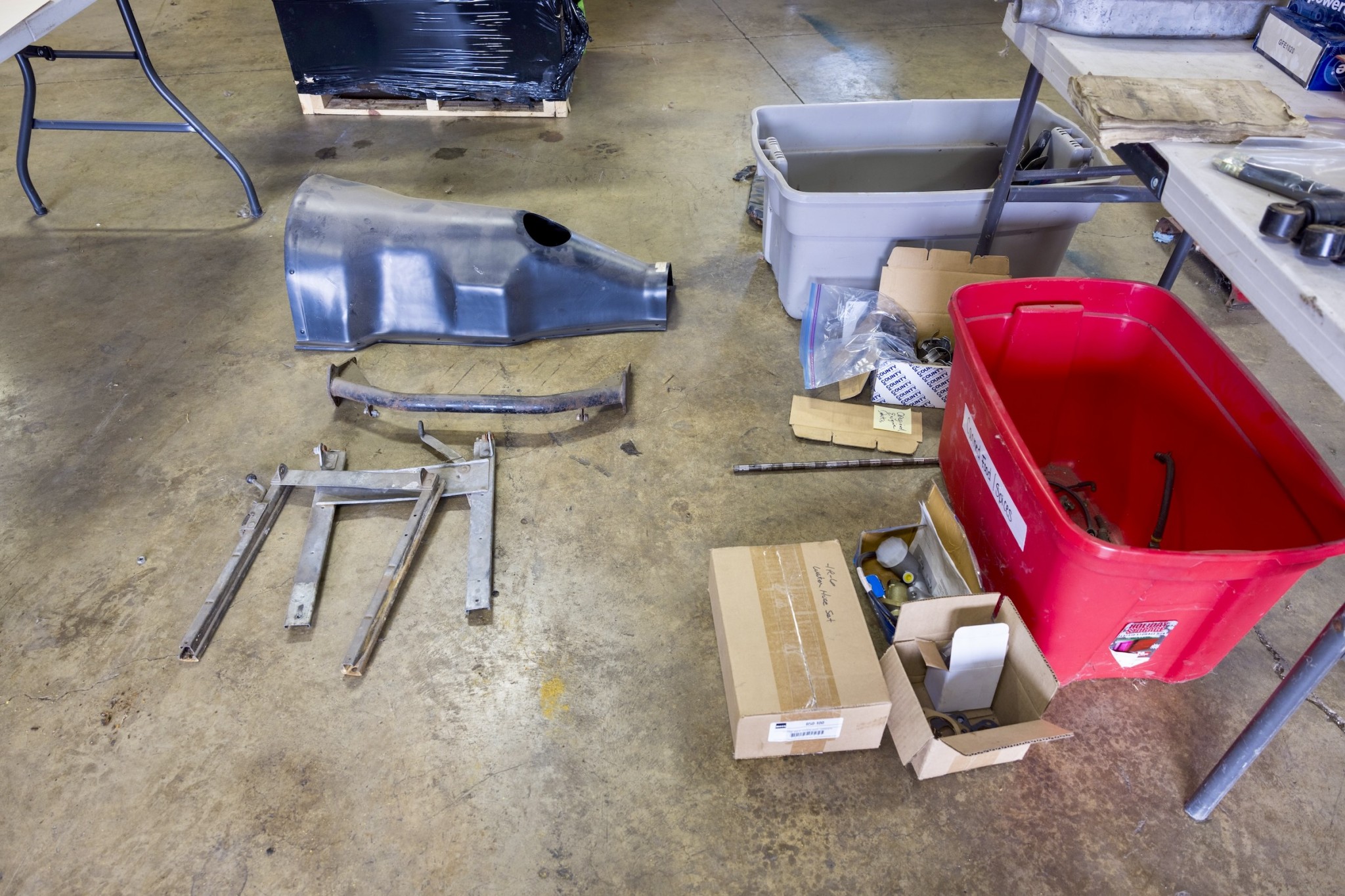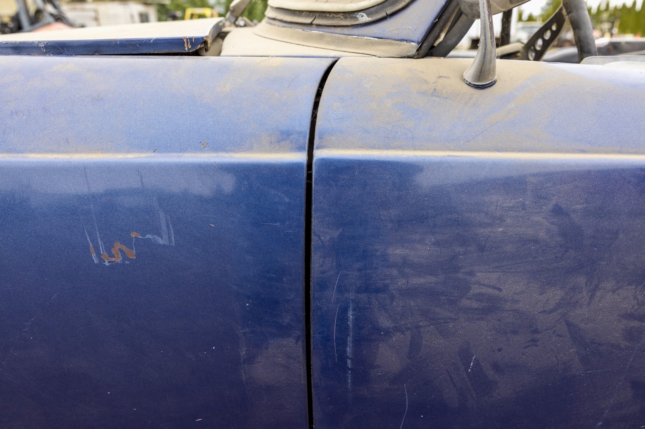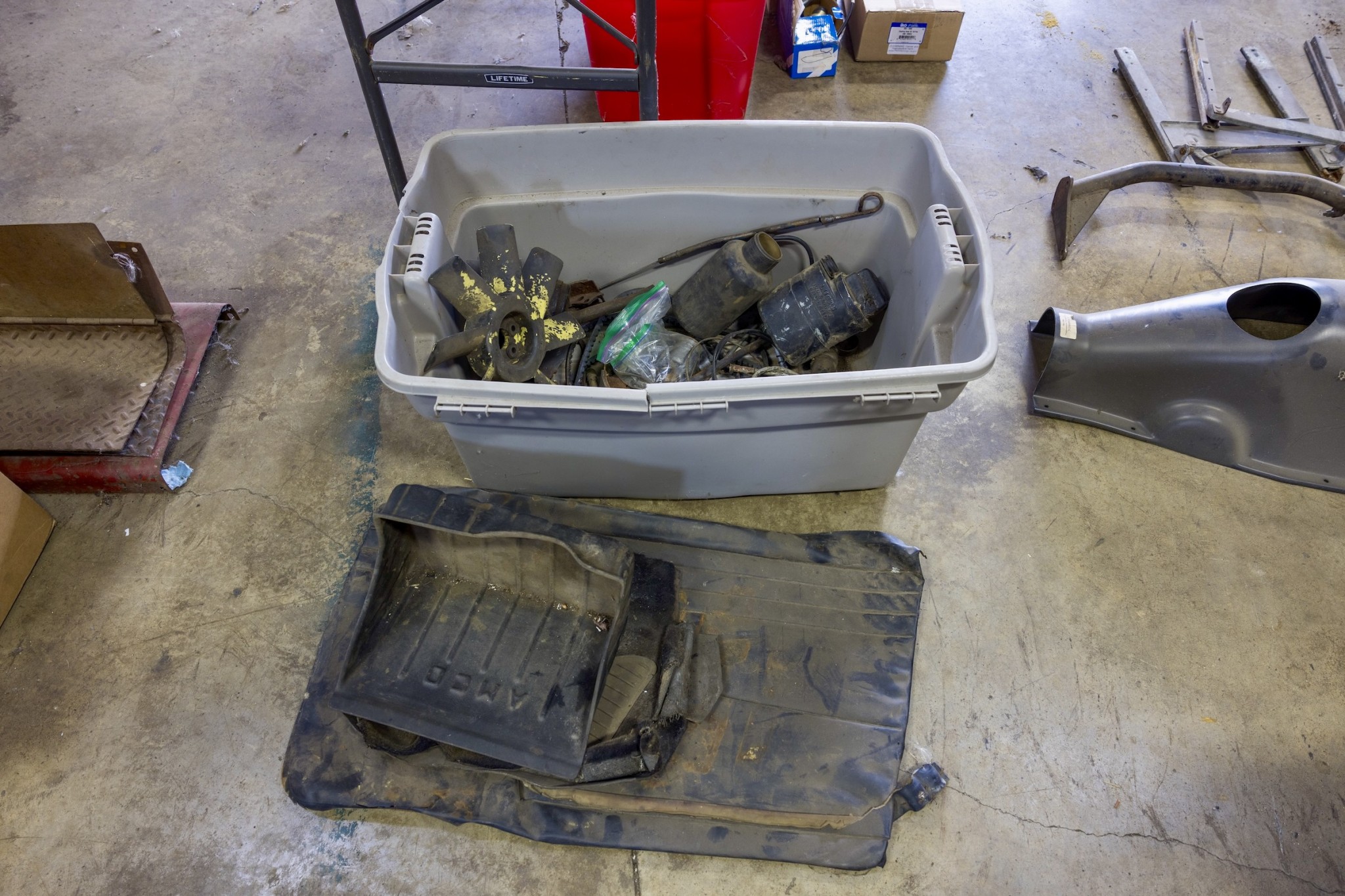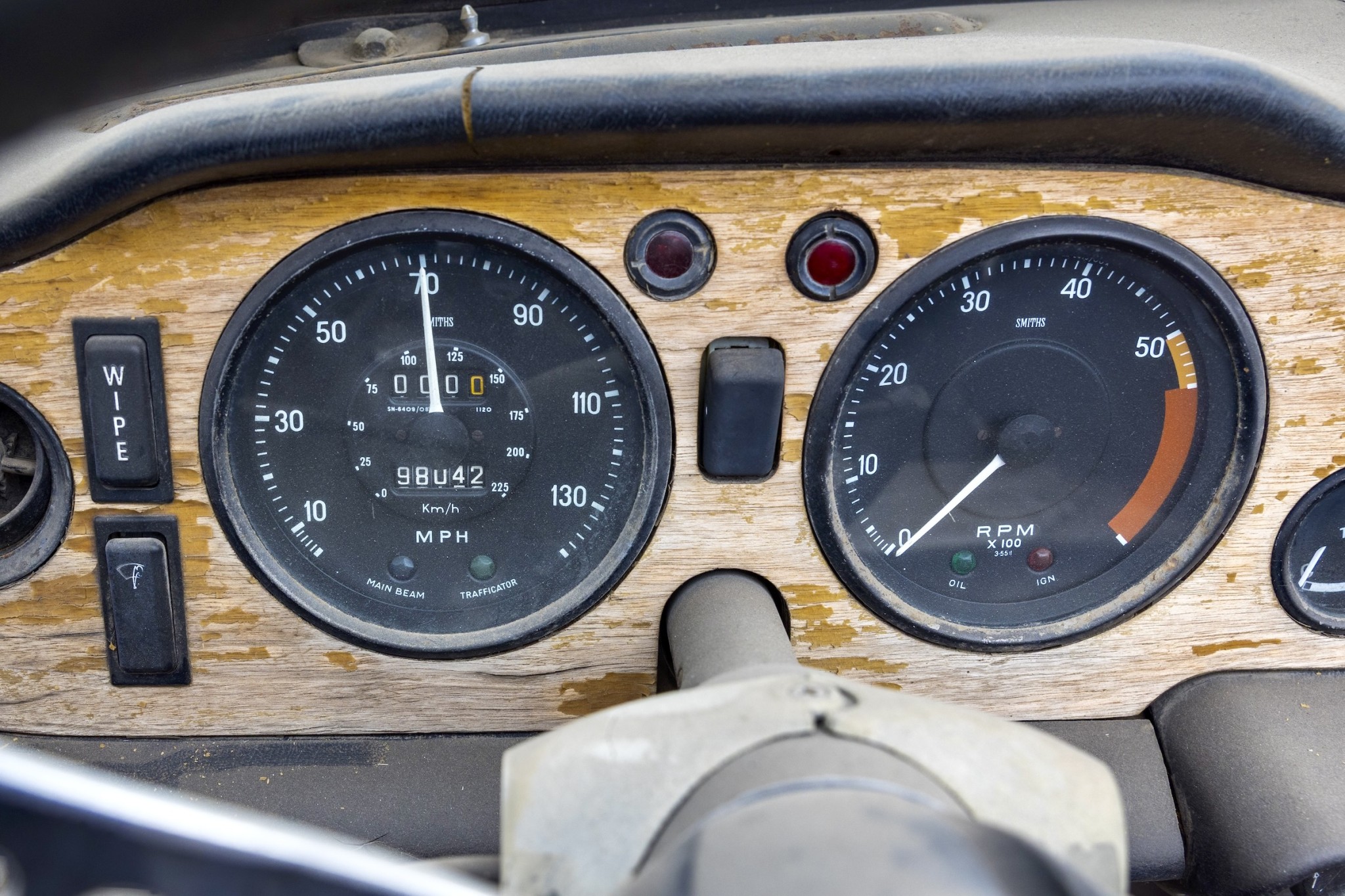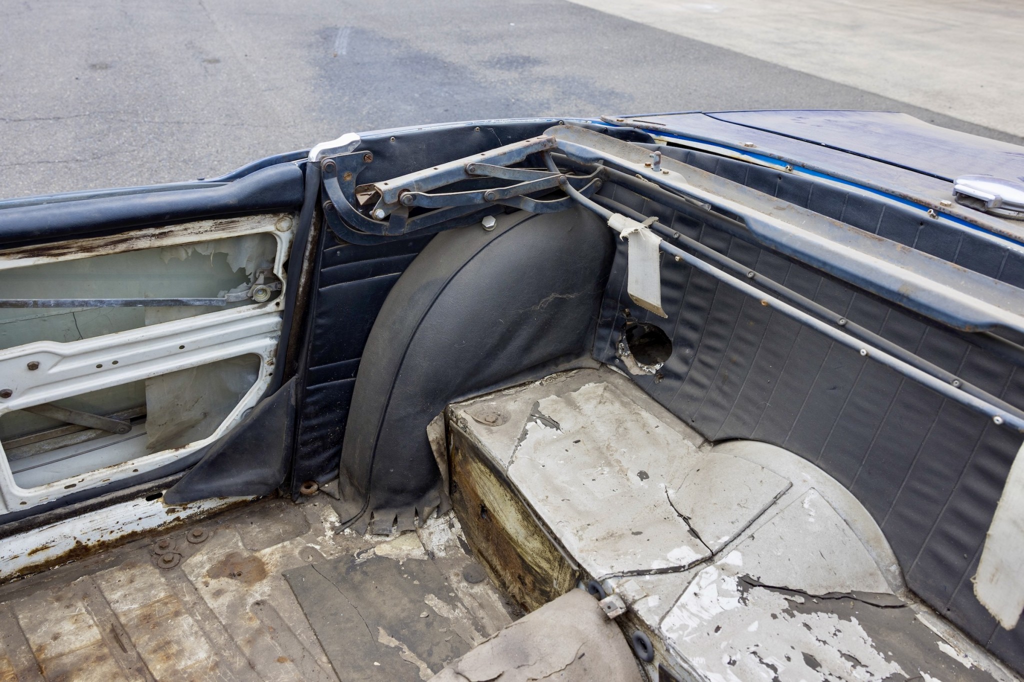 As you can see, the interior is largely disassembled, but the seats and a new dash pad will come with the car. The missing carpet gives us an opportunity to examine the virtually rust-free floor pans. More work will have to be done if you’re giving this car the restoration that such an early build so richly deserves, but parts availability for TRs is not usually a problem.