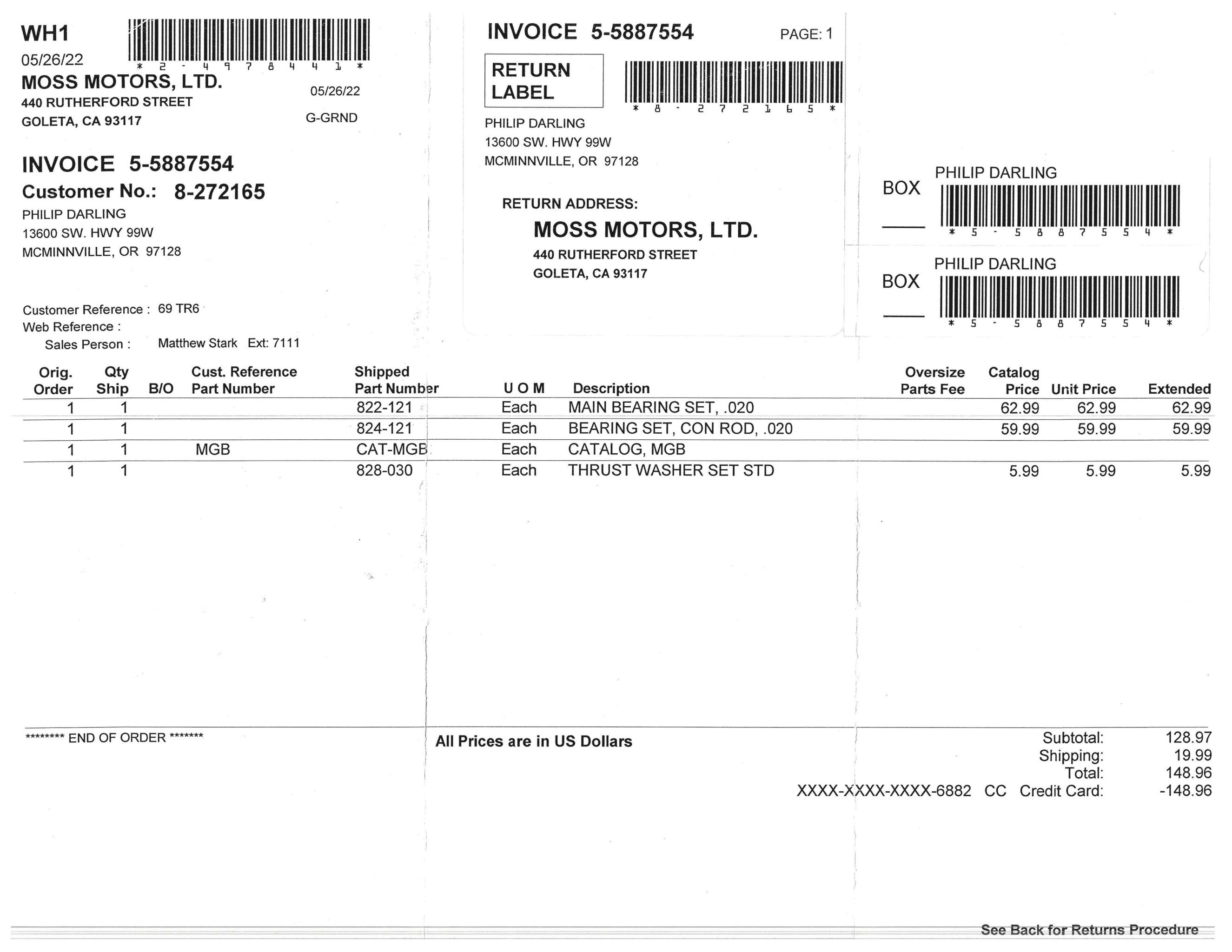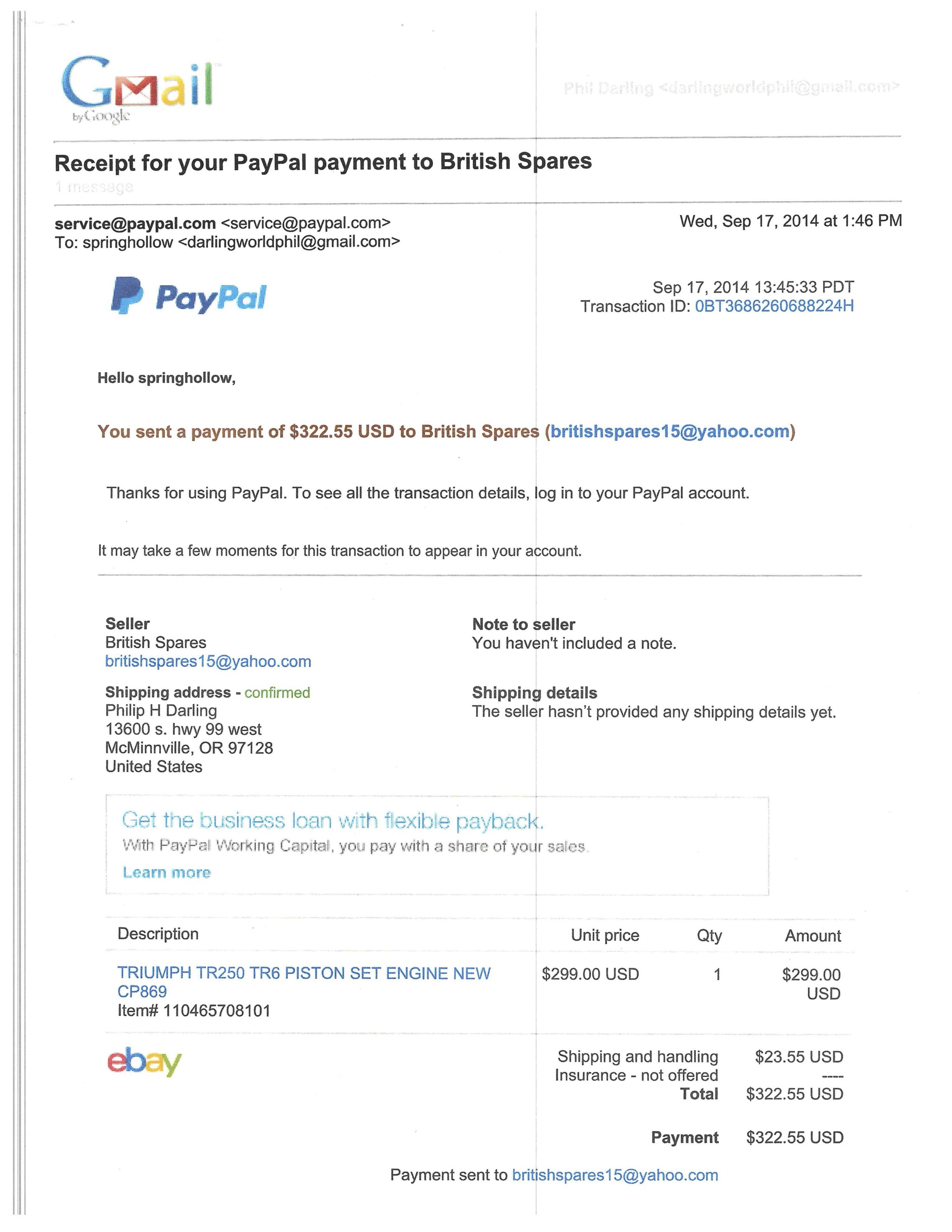 This Triumph will be a restoration project, but work has already commenced. The engine has been removed and rebuilt, with the receipts for the parts and machine work posted below. American-bound TR6s used two Zenith-Stromberg 175CD carburetors instead of the home market fuel injection, and power suffered as a result of the U.S. tune. Still, its 104 horsepower and 143 lb.-ft. of torque were good enough for zero-to-60 times in the 10-11 second range and a top speed nearing 110 miles per hour. The seller has put the engine and transmission, as well as the parts, back in the car for ease of transportation.