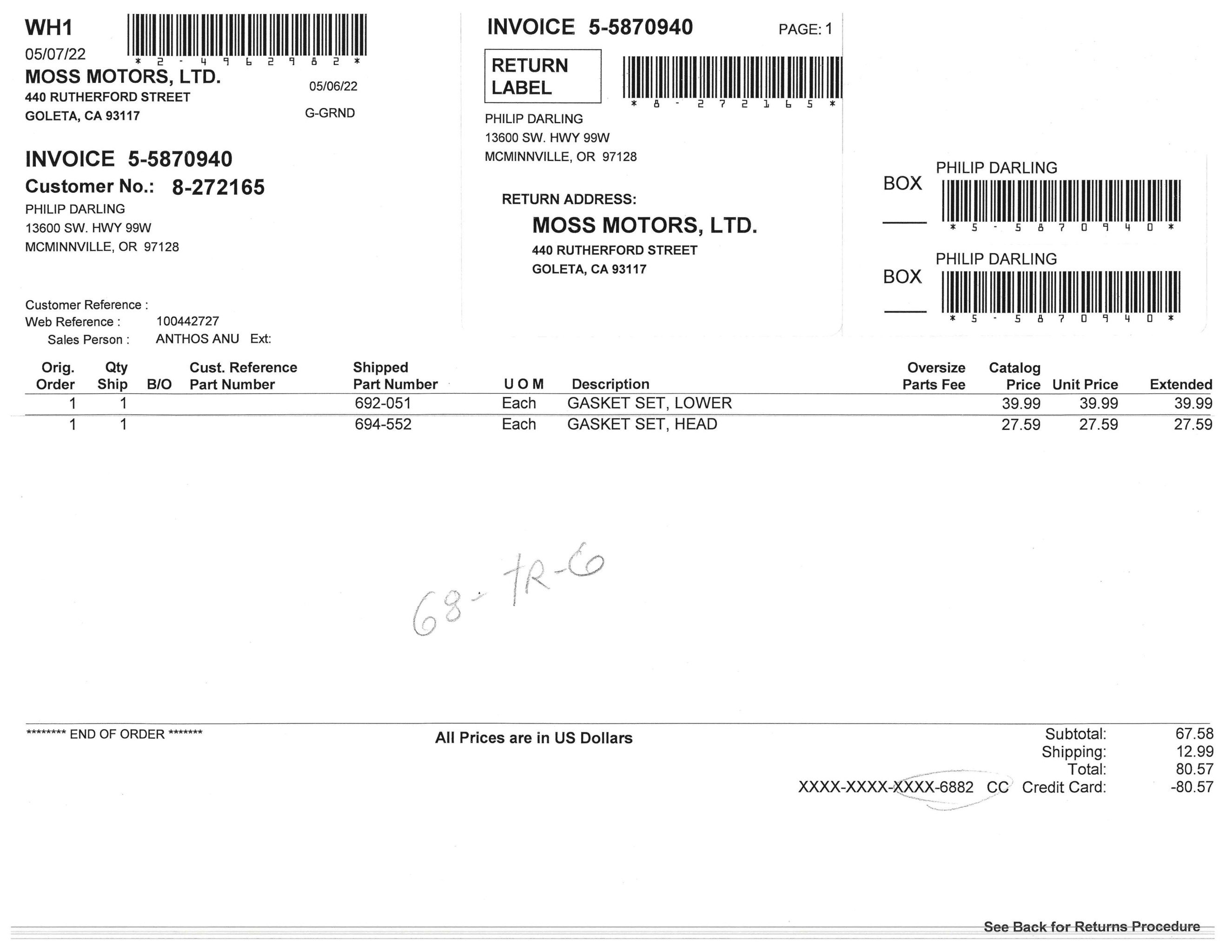 The first carbureted TR6 apparently left the line on September 19, 1968, and its VIN was CC 25003. You can see that this is the next car in line. Our in-house Triumph experts note that the very first cars off the line are sometimes referred to as ‘1968s’ because they were built prior to Triumph’s official start of the 1969 model year, which began on January 2, 1969, but are titled as ‘1969s’. See the gallery below for images of the car’s paperwork.
