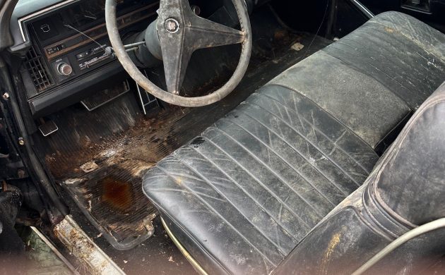 The “triple black” theme continues inside this Eldorado, with the first owner trimming the interior in Black leather. Add climate-control air conditioning, power windows, power locks, three-speed wipers, remote mirrors, and an AM/FM radio to the mix, and life aboard this Caddy would have been very pleasant. If considered purely as a parts source, there is a lot to like about this Eldorado’s interior. The leather is pretty dirty, but with no significant rips or other faults, cleaning and conditioning may be all that stands between it and a fresh start in life. The dash, woodgrain, and bright trim components are also quite impressive. Cleaning everything won’t produce an interior that will score the buyer show trophies, but if their plans involve restoring this classic, the result could be presentation that is acceptable for a driver-grade build.