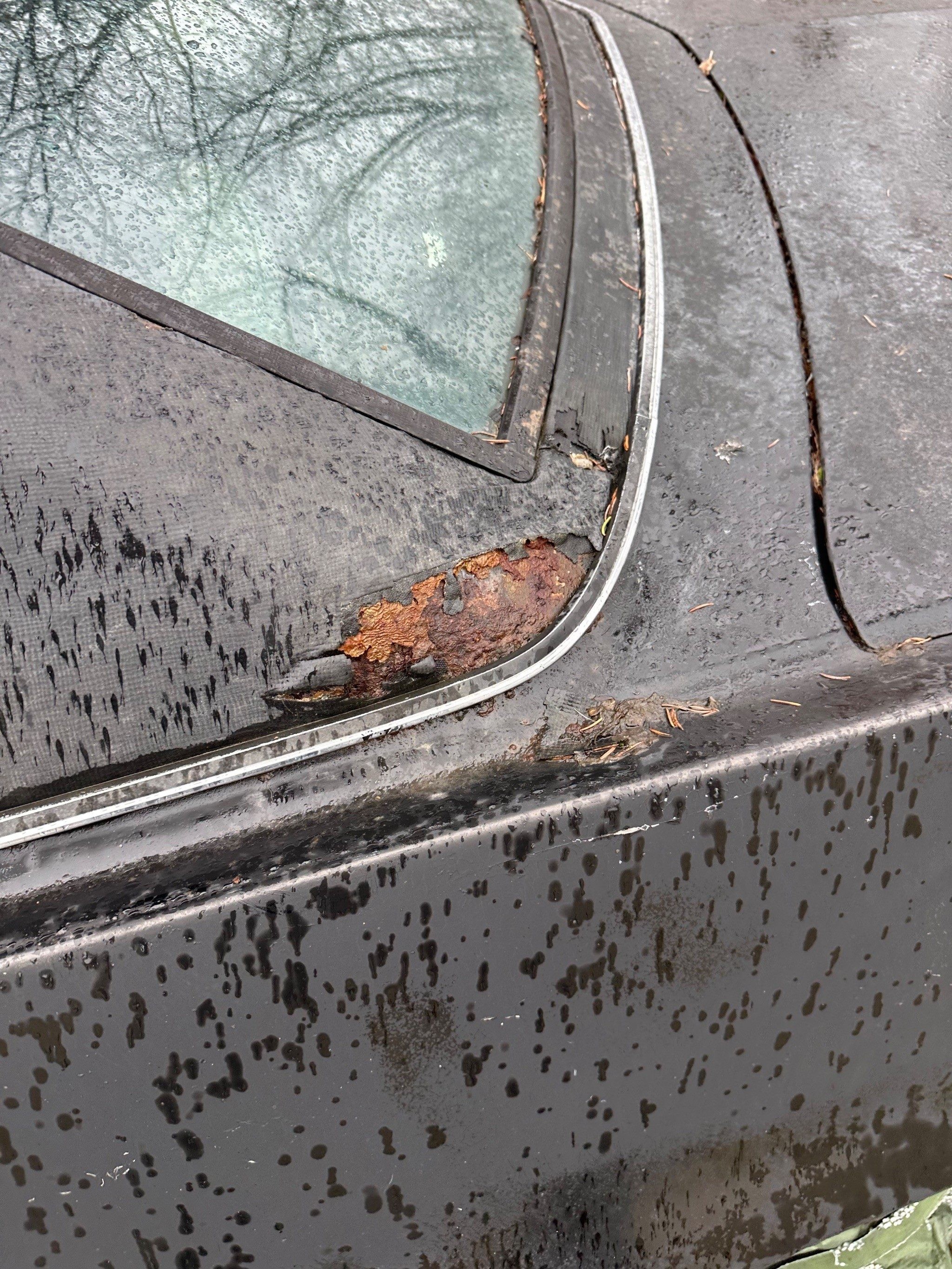 Rust under vinyl and on front of hood. Some pooling of water on floor mat but thats about it.