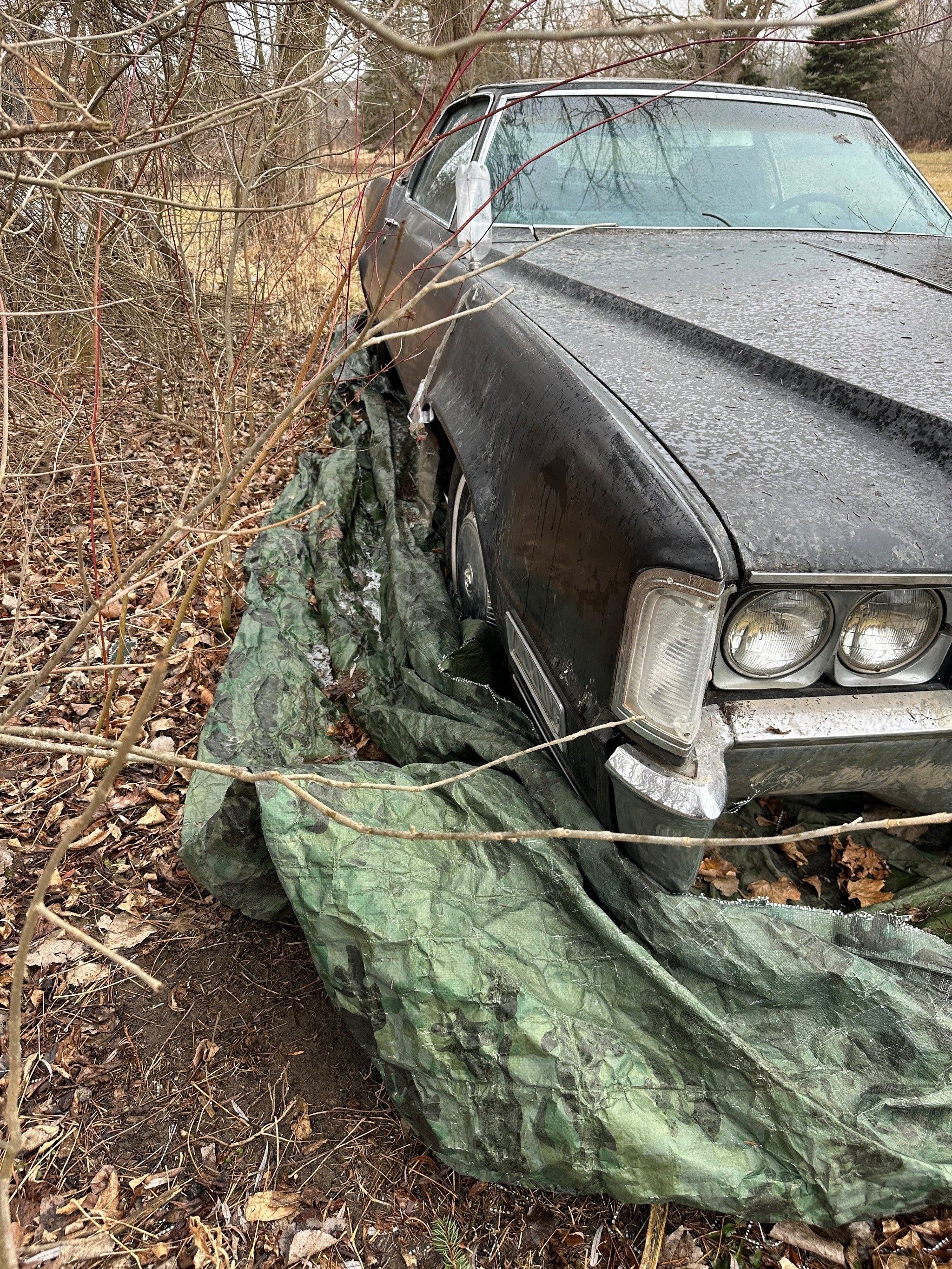 In the film ELVIRA, Mistress of The Dark ELVIRA (aka Cassandra Peterson) drove a triple black Thunderbird with appropriate additions ⛓. That Bird was in pristine condition. This poor Eldorado might make a lawn ornament in a Haunted House 🏰 . It’s a sin to treat a classic like that. Hopefully someone will give it a resurrection.