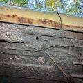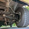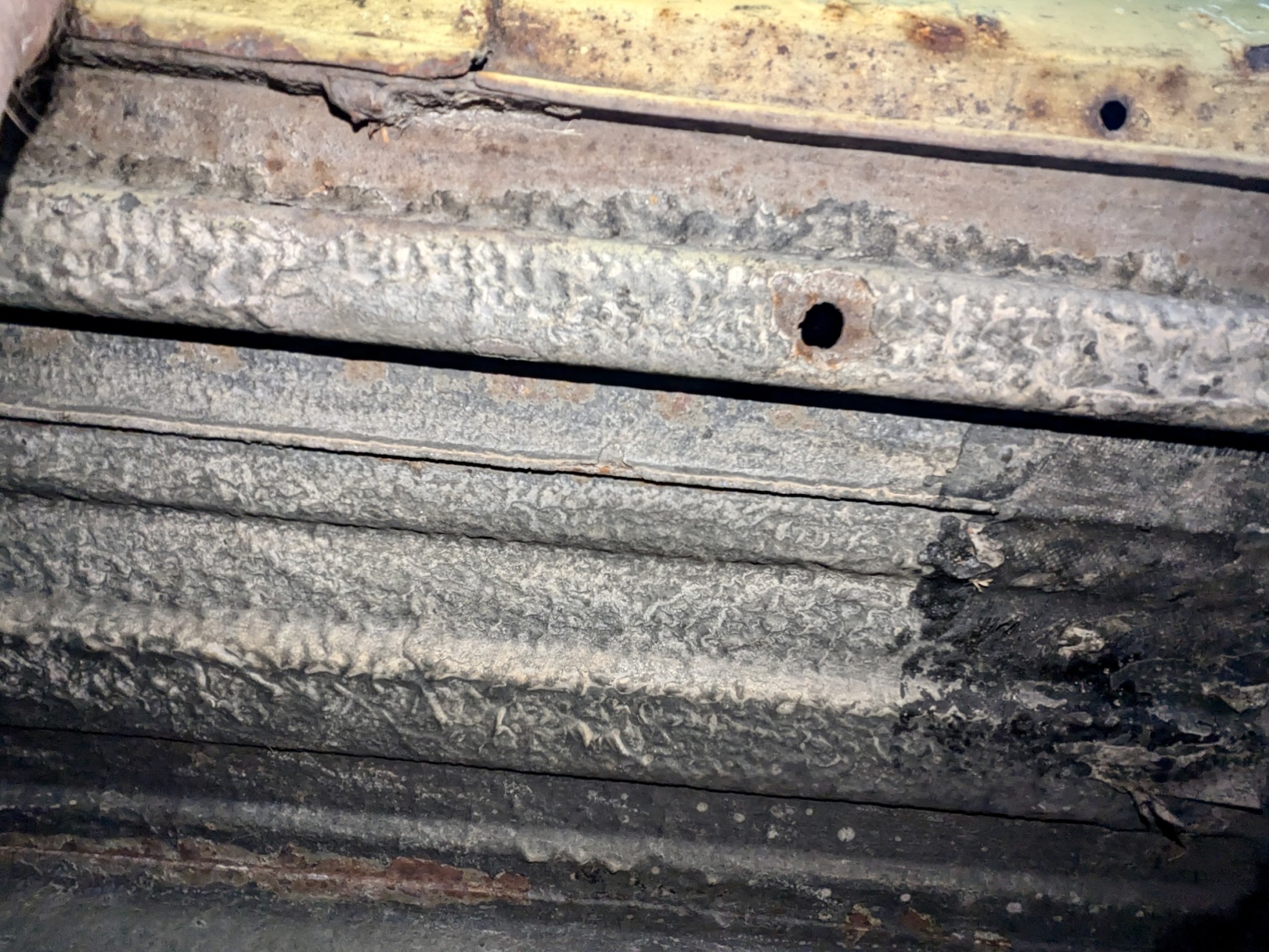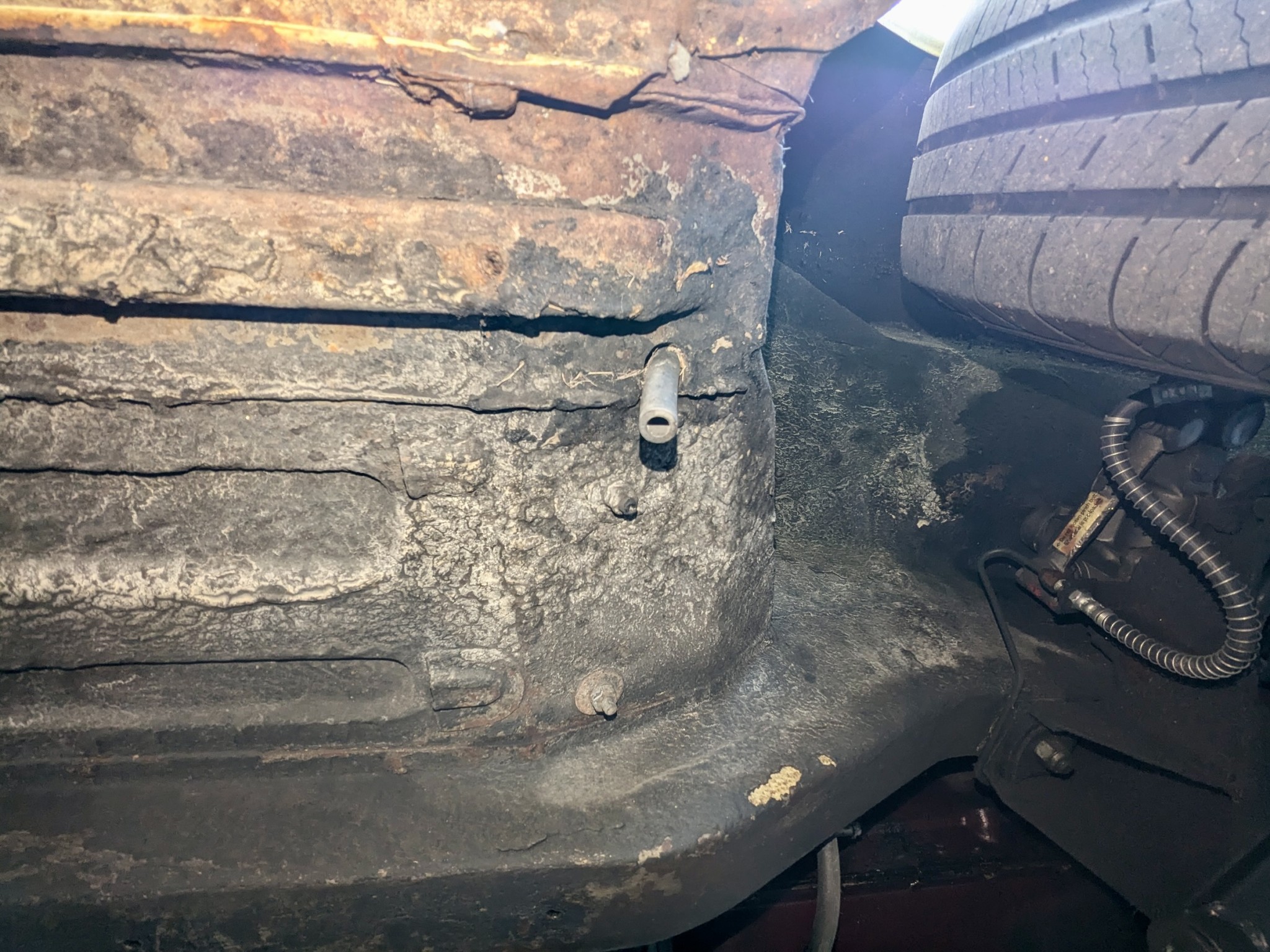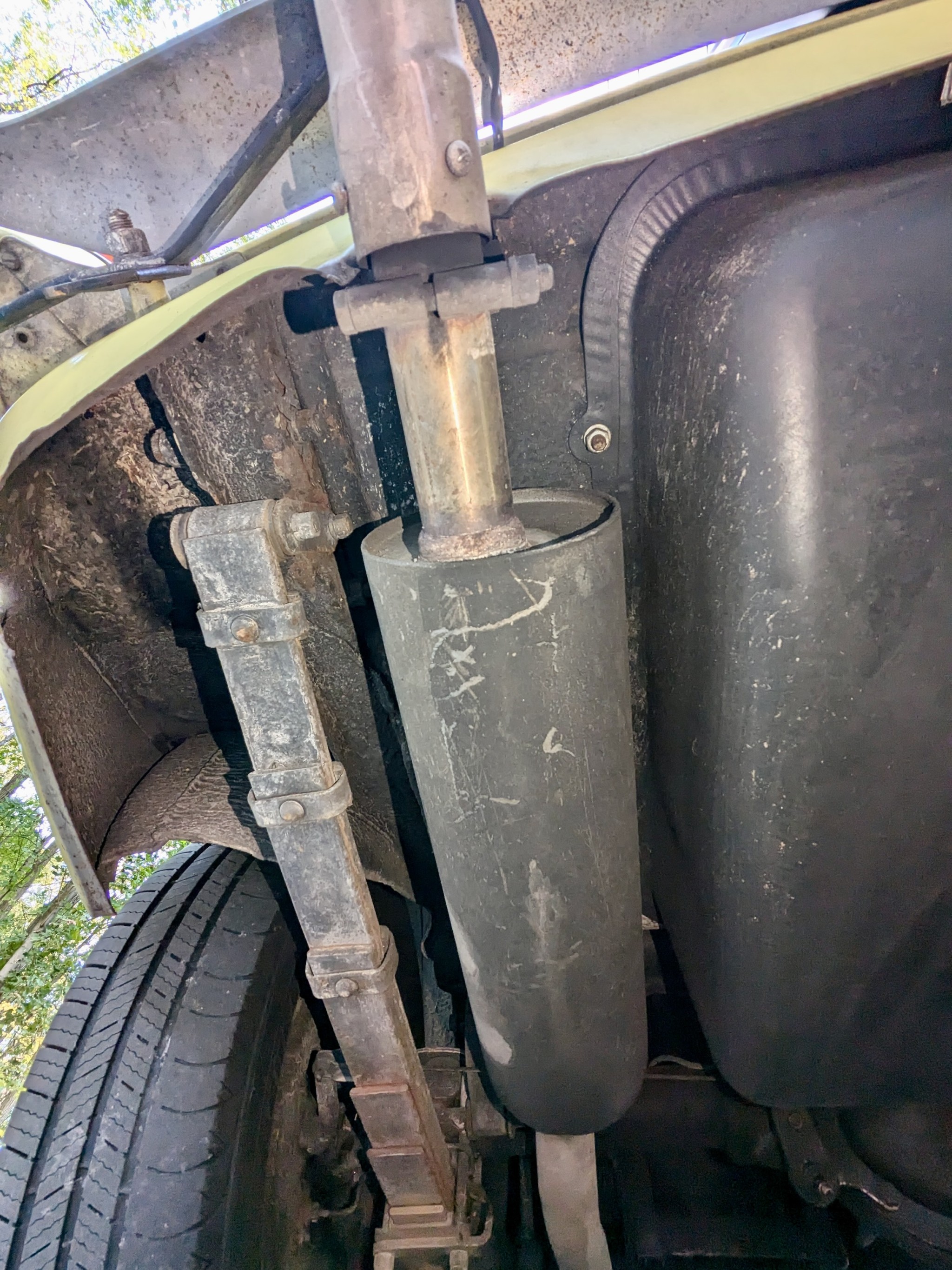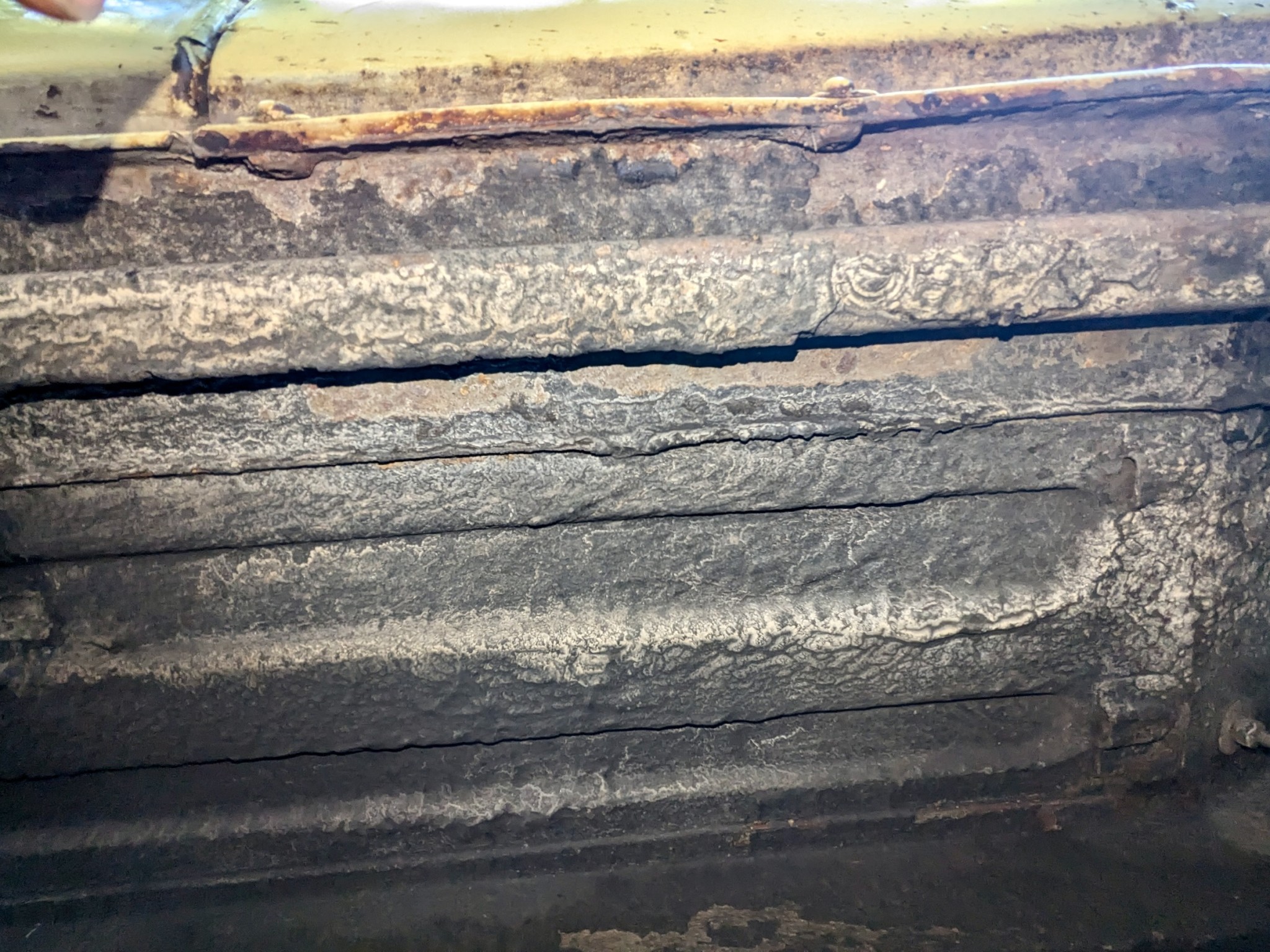 There is no bondo on this car, but there is some paint bubbling and surface corrosion on right rear panel. The frame off primrose yellow paint job is about 25-30 years old – car started out as white. I have some old photos of this in a satchel with the car’s history prior to my owning it.