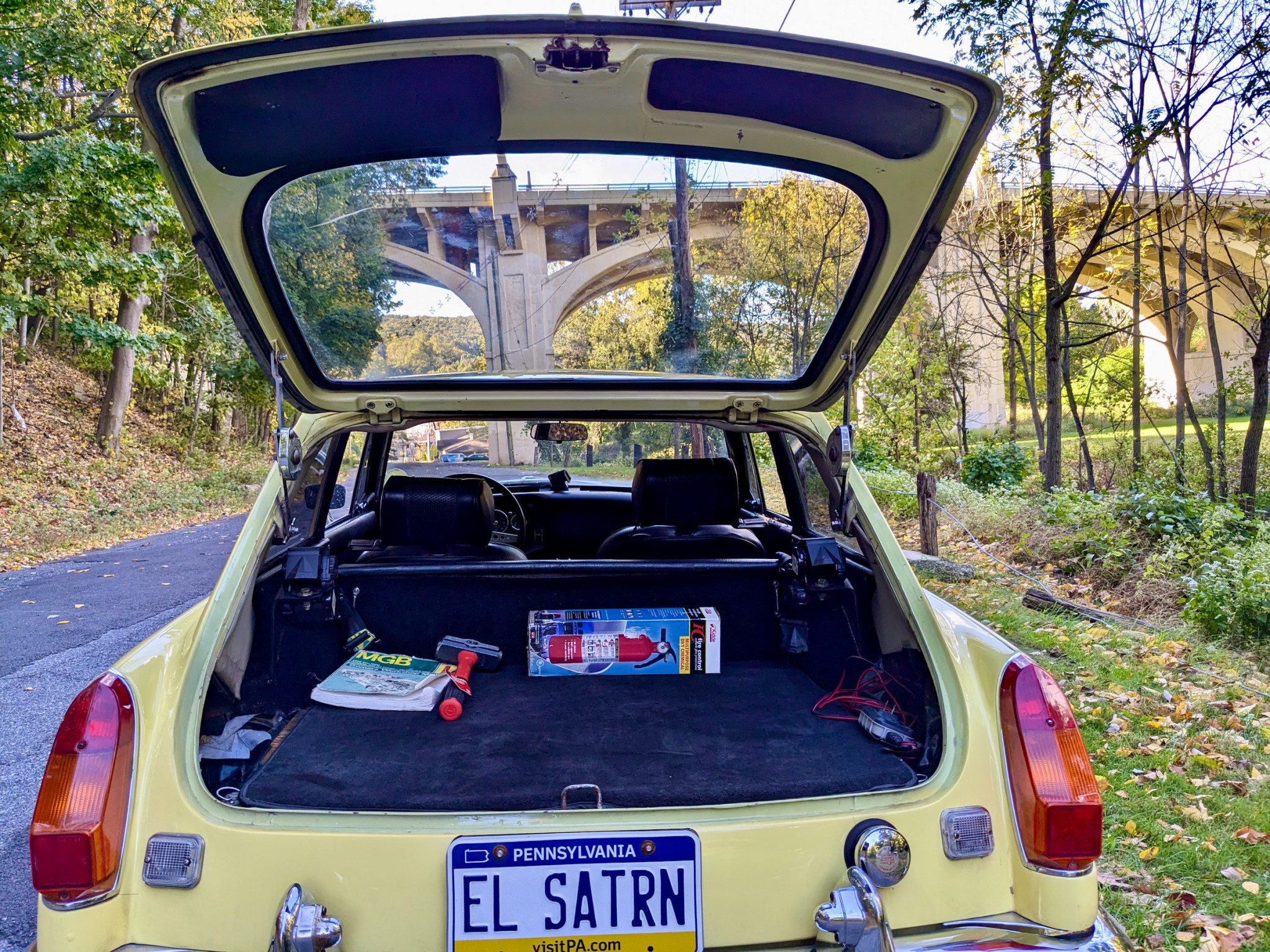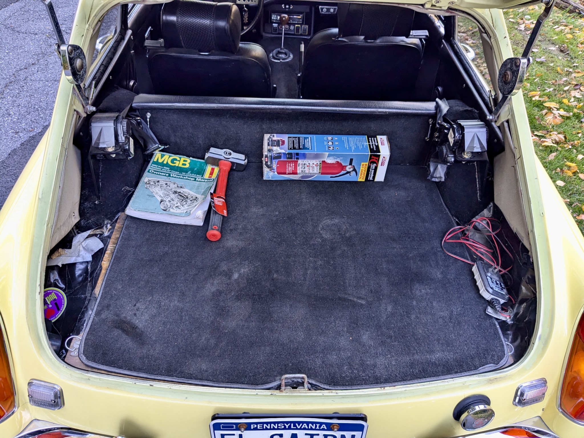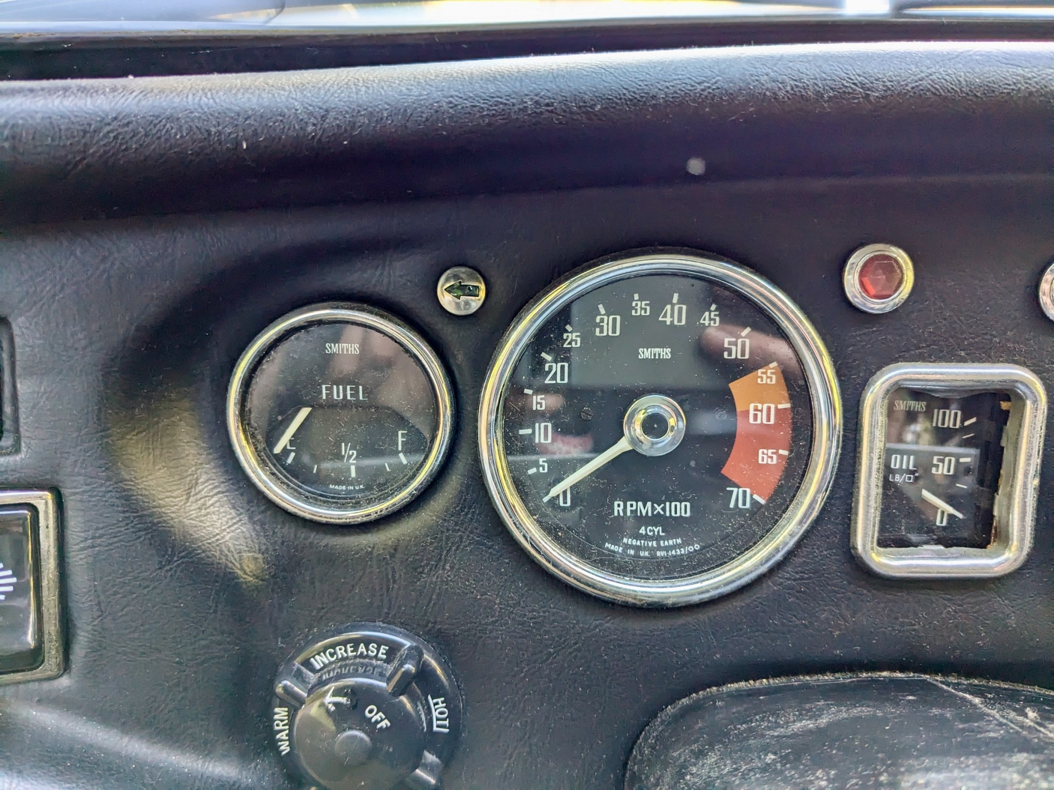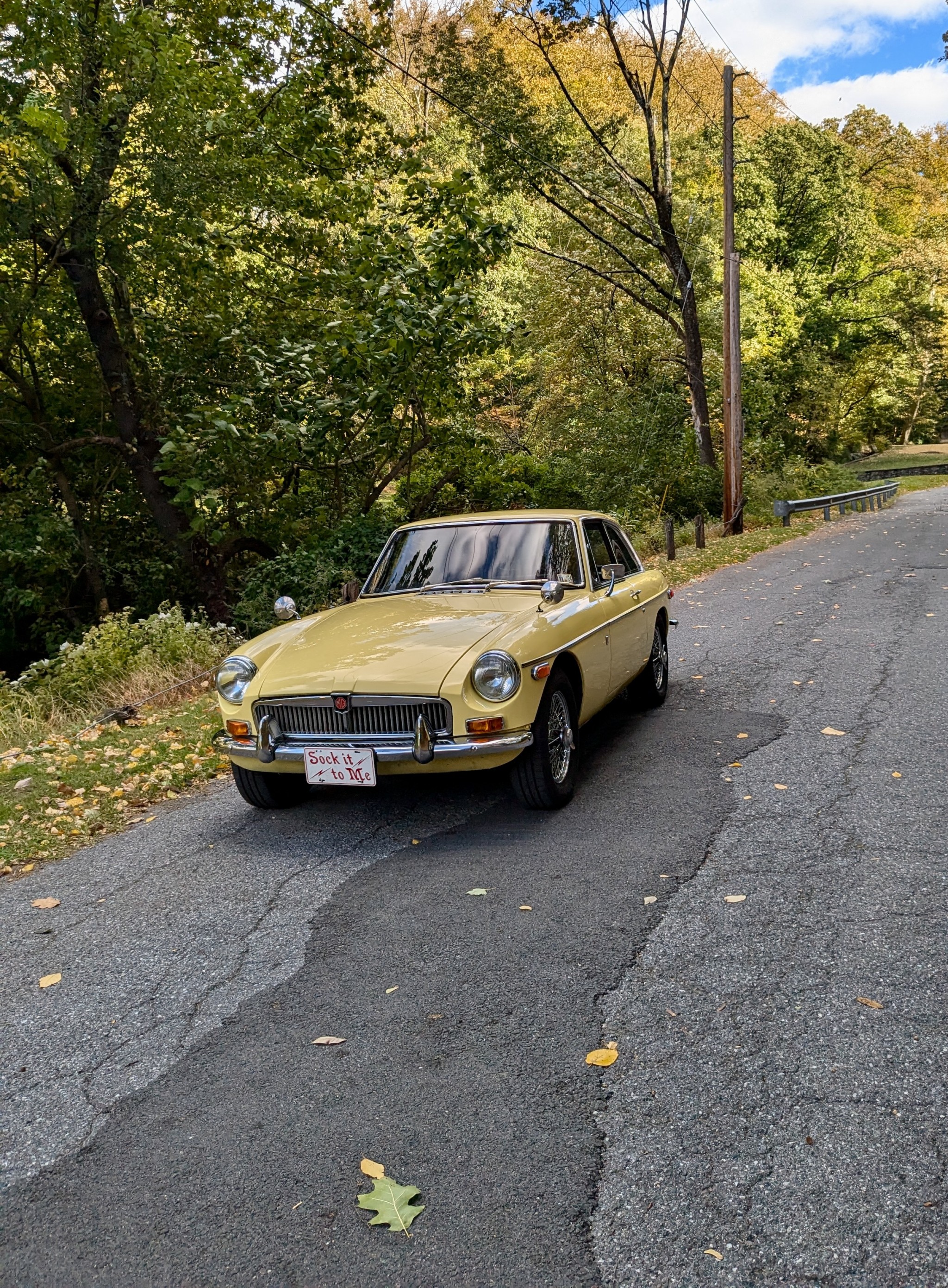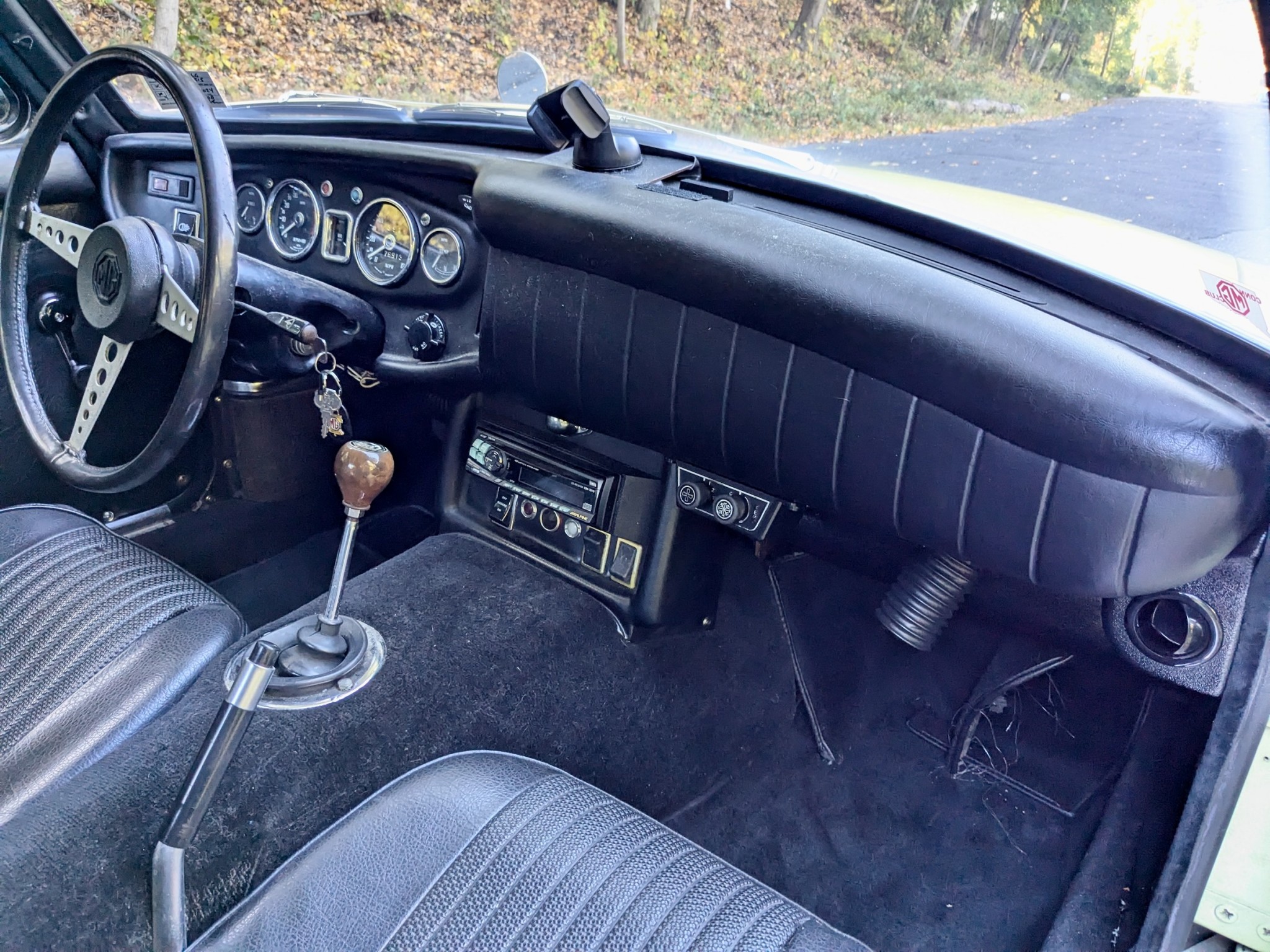 The MG’s 1.8-liter four cylinder is a known quantity worldwide, but the MGB received some sensible improvements in 1968, the year before this car was built, including an all-synchromesh four speed, an alternator in place of a generator, an energy absorbing steering column, dual-circuit brakes, and a negative ground electrical system. This particular GT had some additional upgrades after the current owner bought it in 2020. Dick Moritz, an MG builder and racer in the Philadephia area, rebuilt the engine and transmission and added a little extra power along the way by milling the cylinder head (resulting in a compression ratio just above 9:1) and installing a Delta D9 camshaft. The carburetors are SUs (HIF4s specifically), and the distributor was recurved to match the engine’s new power curve. The seller says that “the most recent compression test returned an average of 150psi cylinder pressures.”