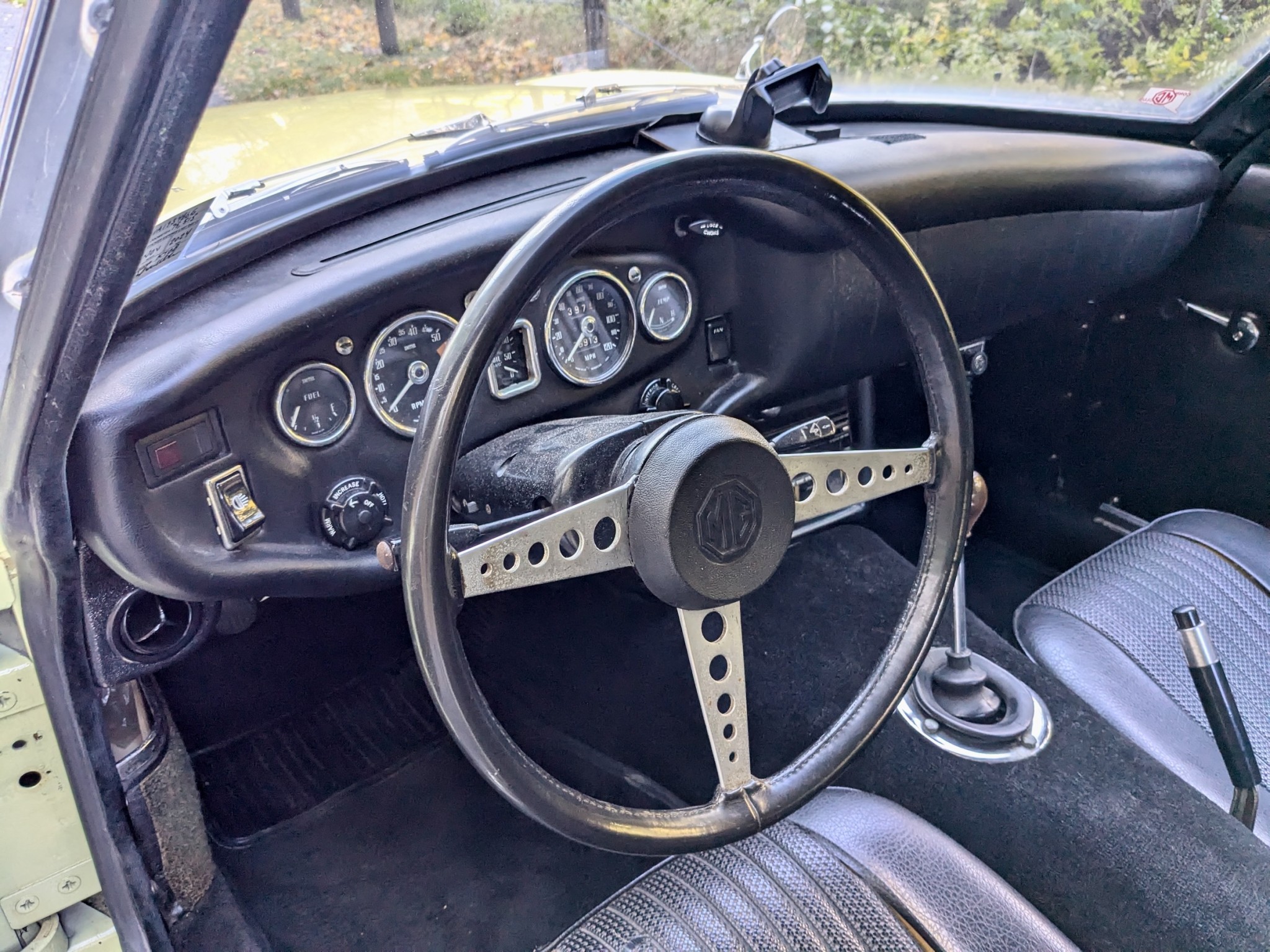 MG color charts show that the only yellow offered in 1969 was “Primrose Yellow,” a proper name for an elegant little British sports touring car, and touring this car has done. Whether the current shade of yellow is original or not, this is a car that has been loved and used, and aside from the overdrive unit’s misbehavior, it’s ready to be loved and used some more. If you’ve been wanting to hit the road in one of the best-looking MGs to come from Abingdon, make a bid!