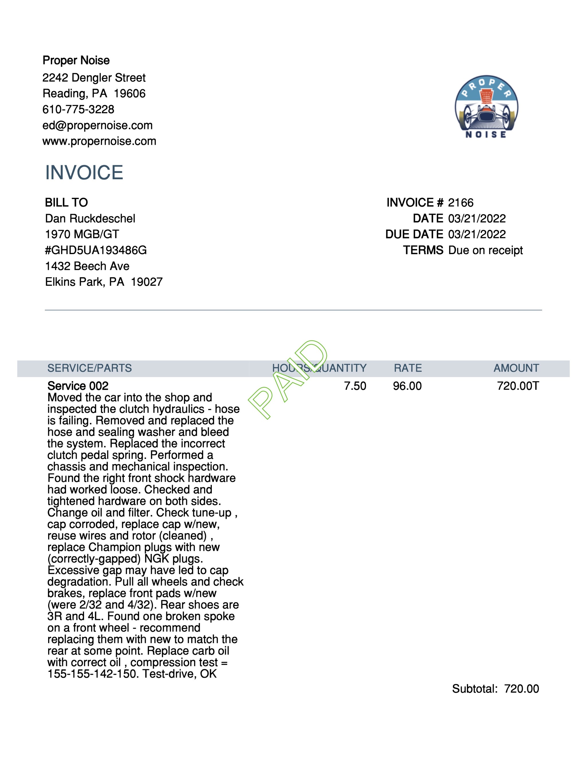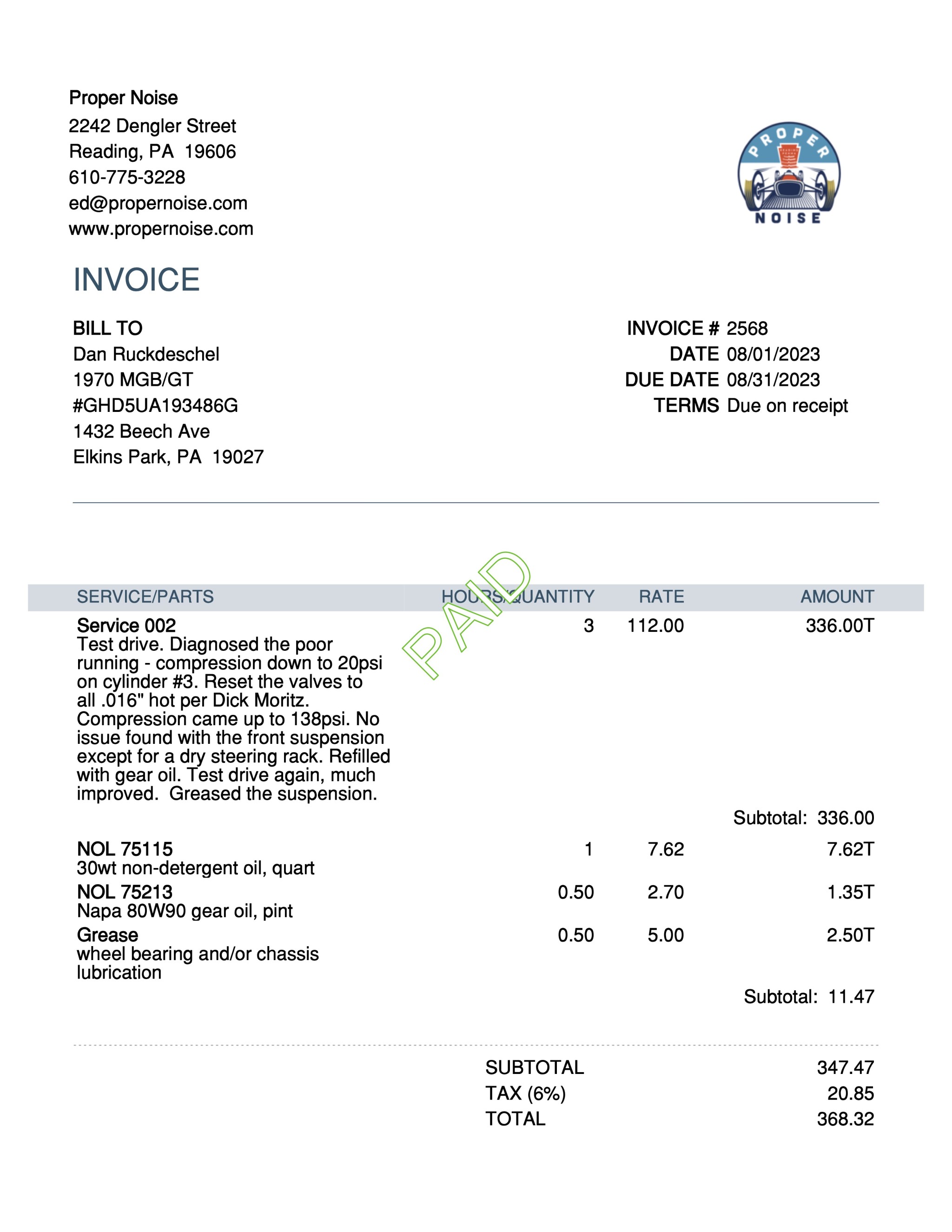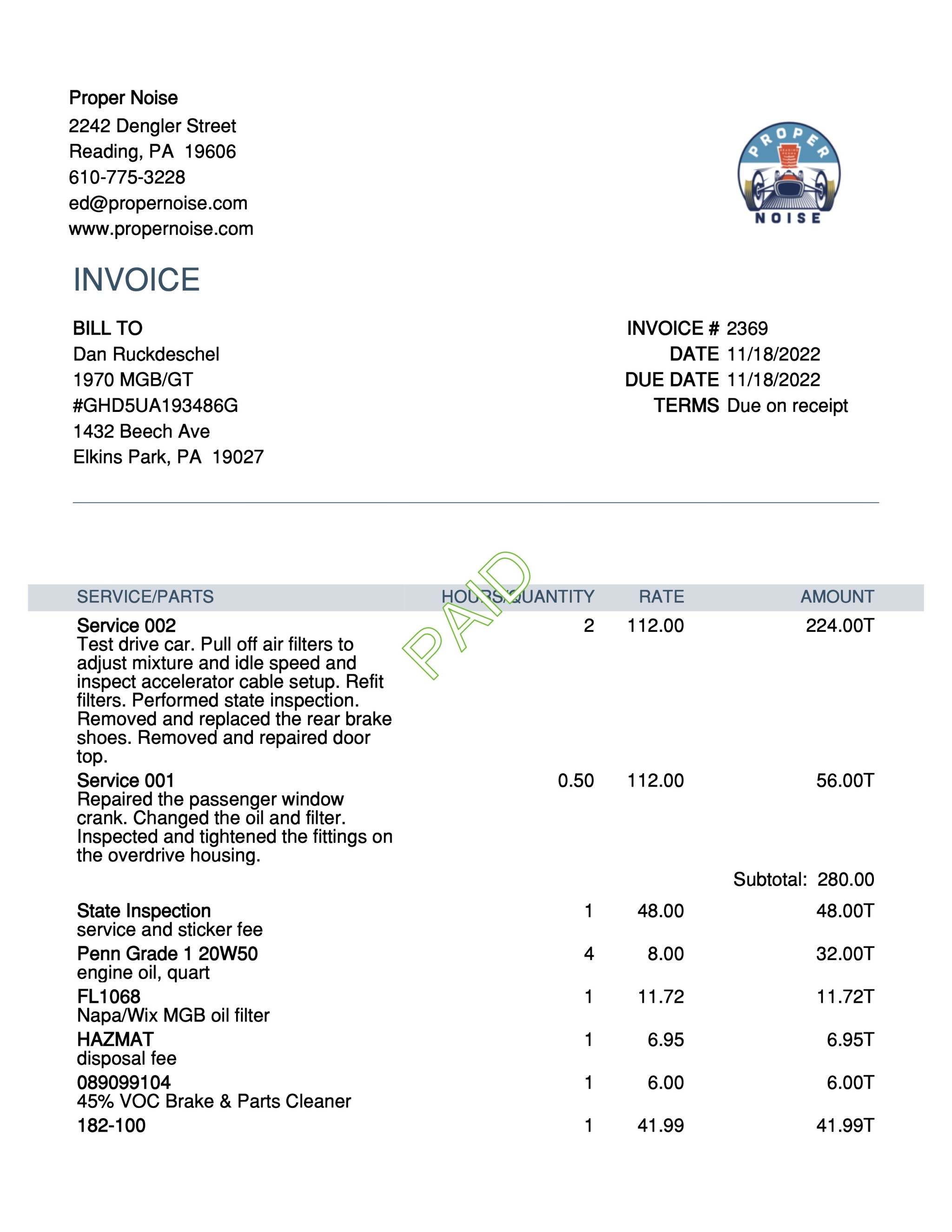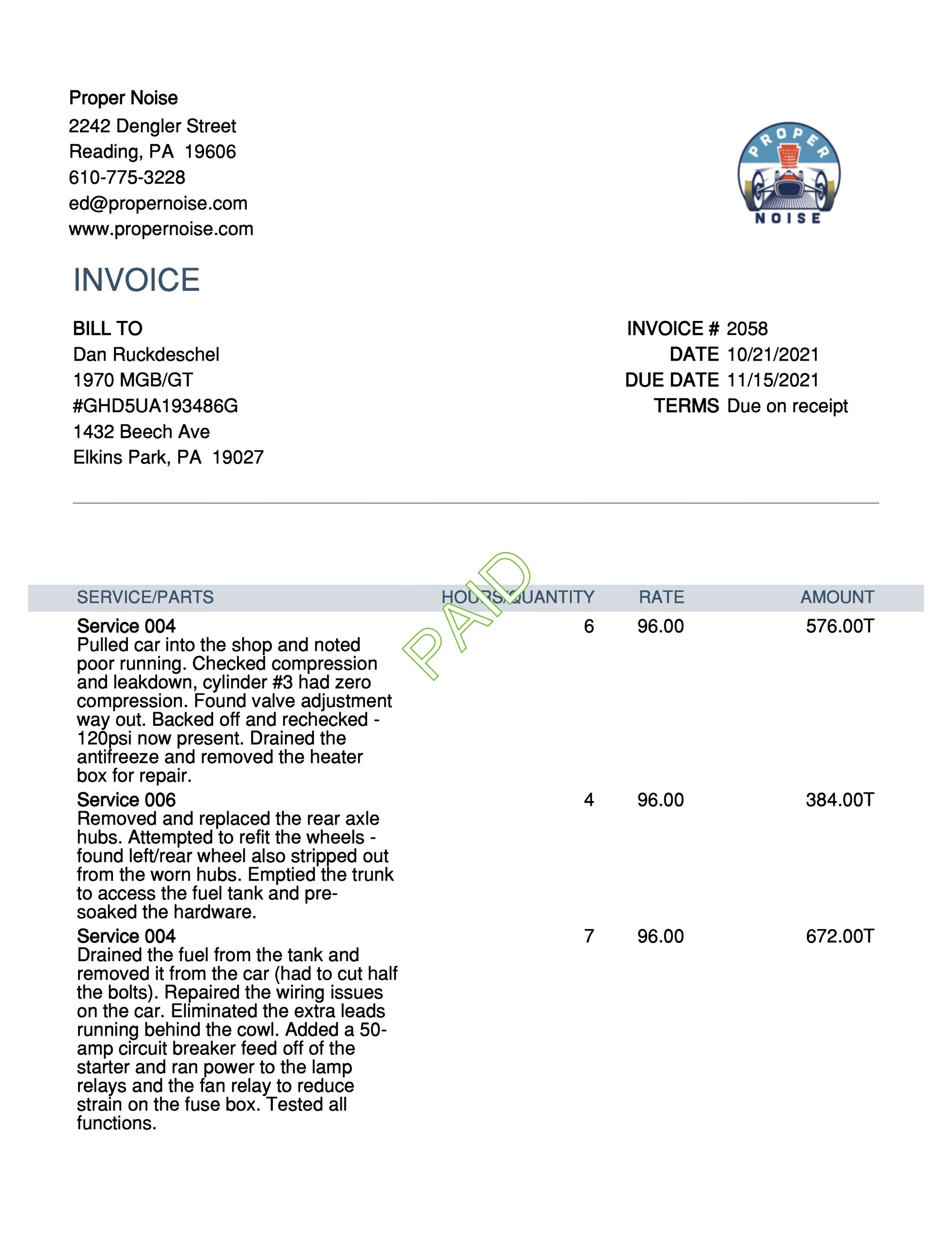 Car will be parked outside this week, under the awning, at Proper Noise Auto Restoration shop in Mt Penn, PA, if anyone wants to take a closer look.