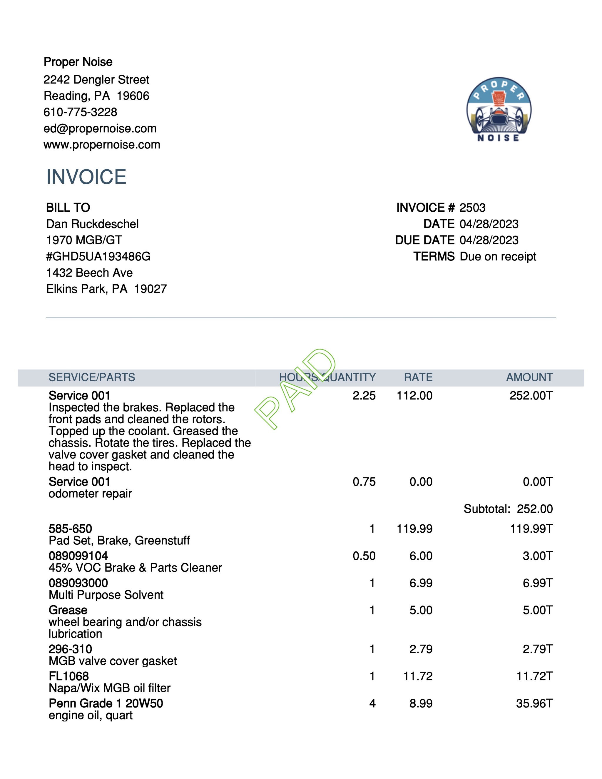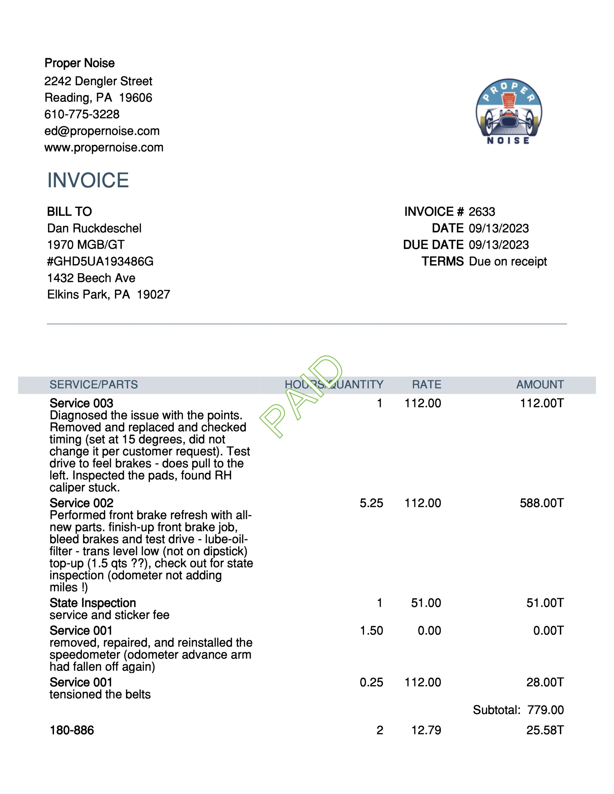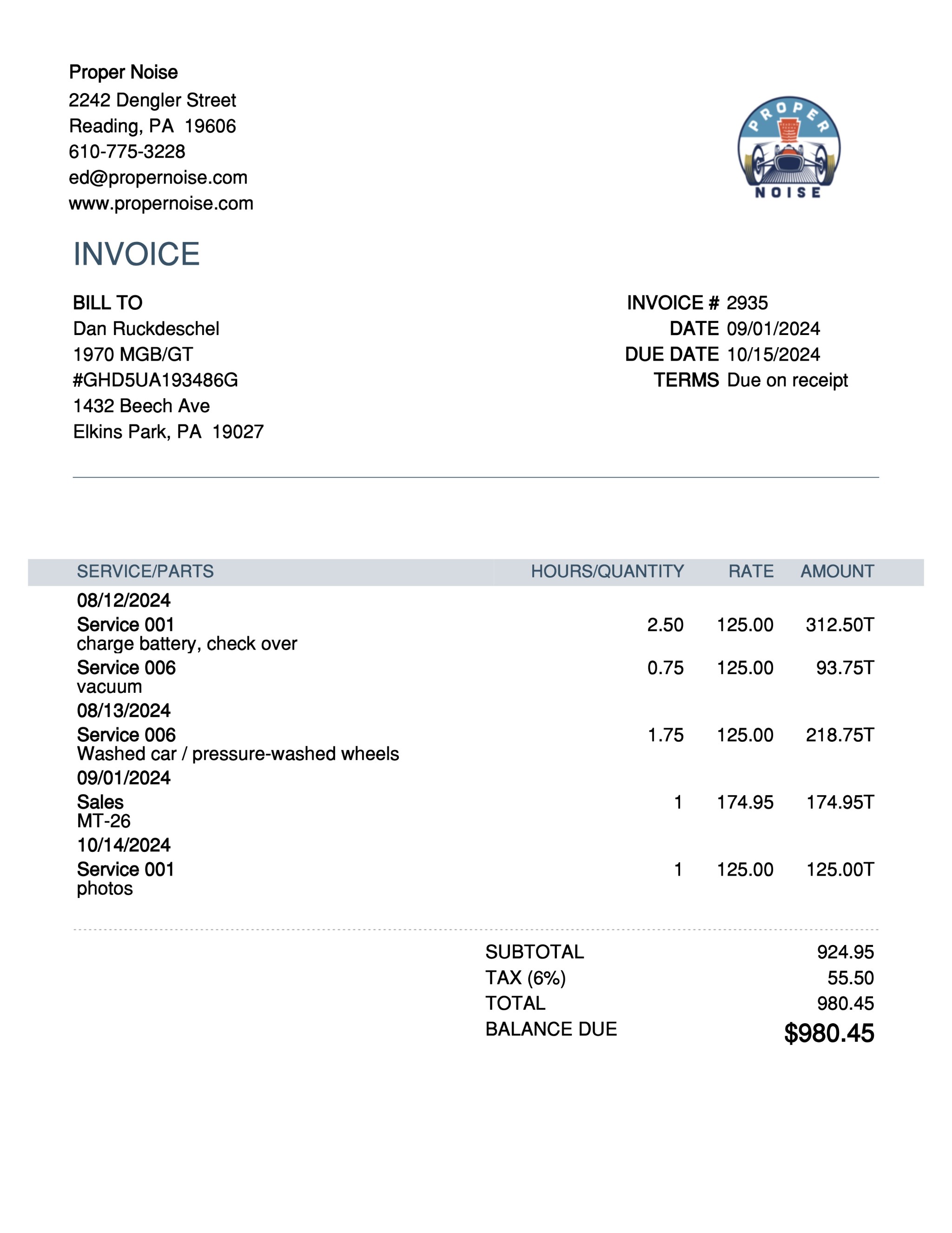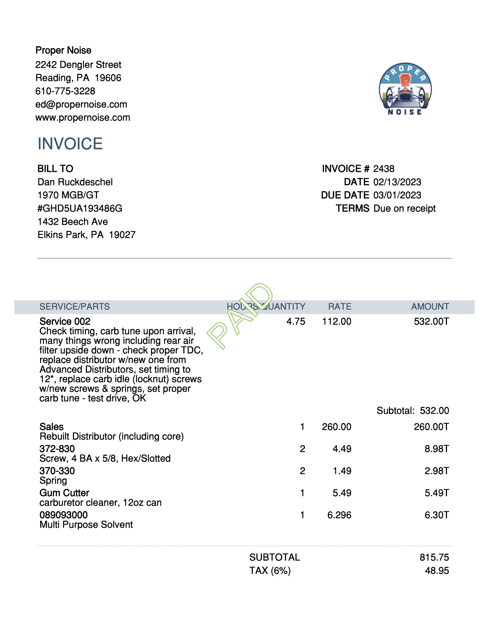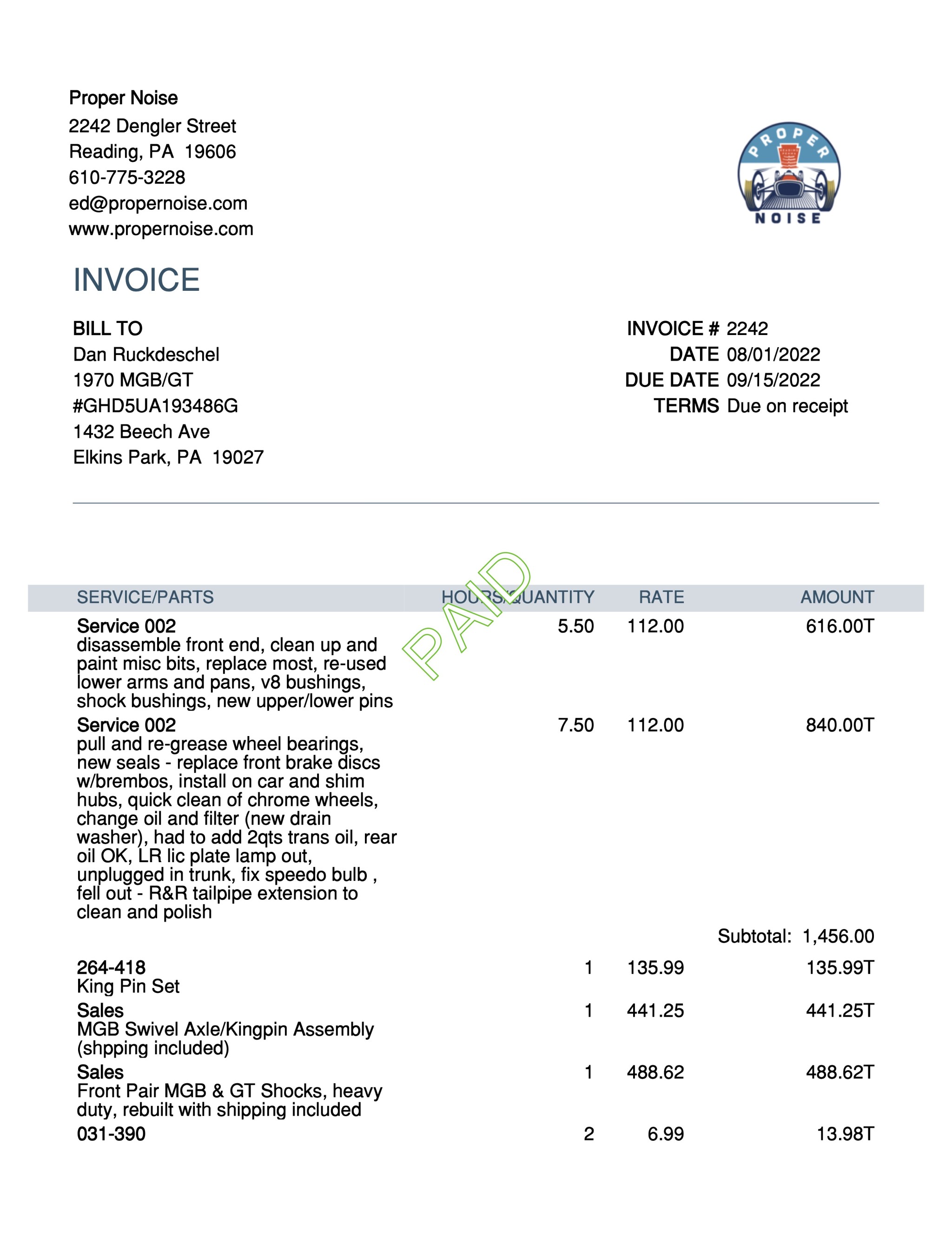 Car will be parked outside this week, under the awning, at Proper Noise Auto Restoration shop in Mt Penn, PA, if anyone wants to take a closer look.