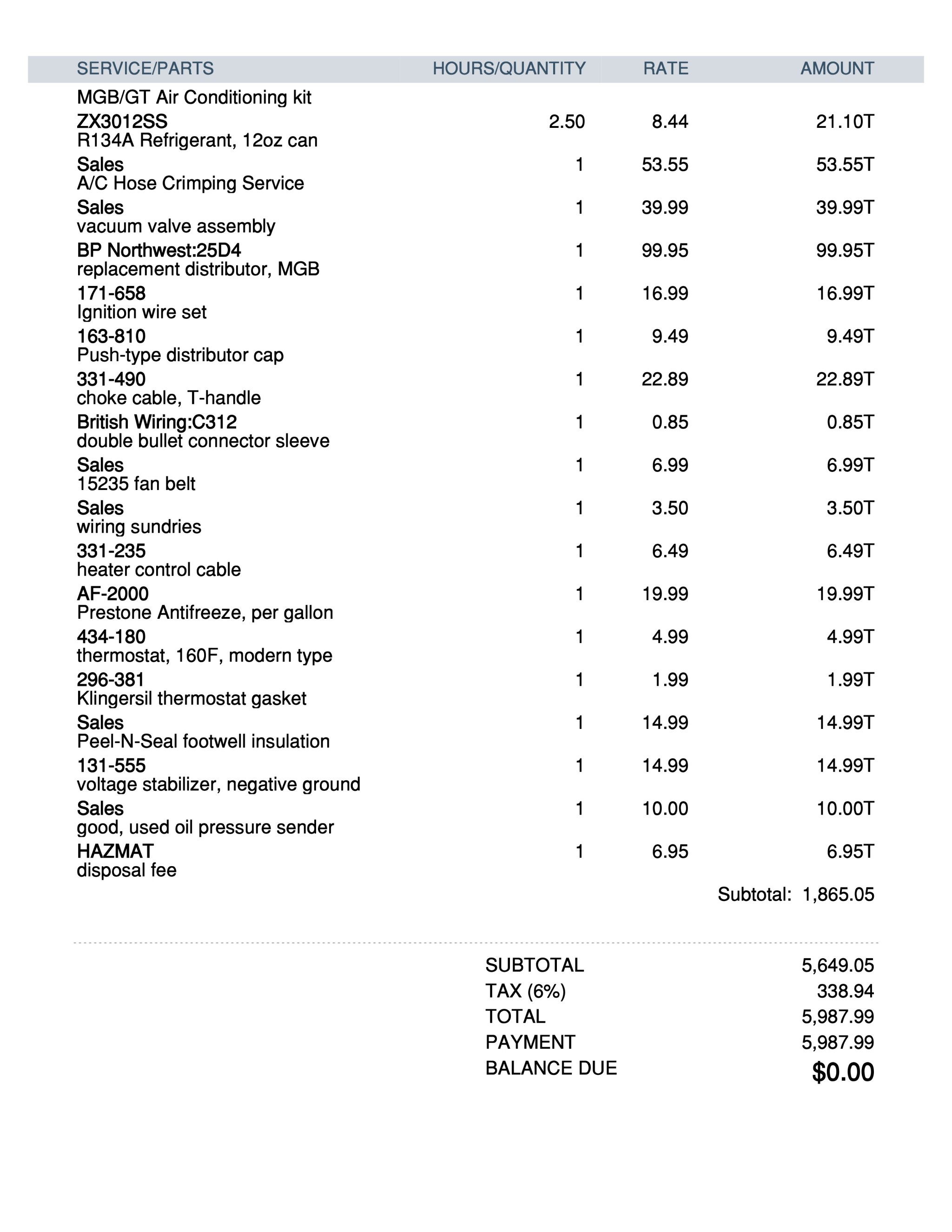 Being an MG from the northeast, you have to expect some rust, but this picture above shows what is probably the worst of it. In the words of Ed Sweeney of Proper Noise Restoration Shop, the car’s most recent mechanic, “the chassis seems to have received a thorough restoration in the past, with rockers, sills, floors, doglegs, and fender bottoms replaced. The rust issues appear to be localized to exterior sheetmetal (doglegs and fender bottoms). Structurally the car remains sound and could be driven in this state without further repairs.” Recent work includes a new steering rack, tie rods, and other suspension bits, which the seller has receipts for. They also have receipts for all the work the previous owner had done and photos of the car when it was treated to a full repaint about 25 years ago. A considerable amount of money has been invested into this car over the past few decades. The seller states that it has been a dependable daily driver and event car.