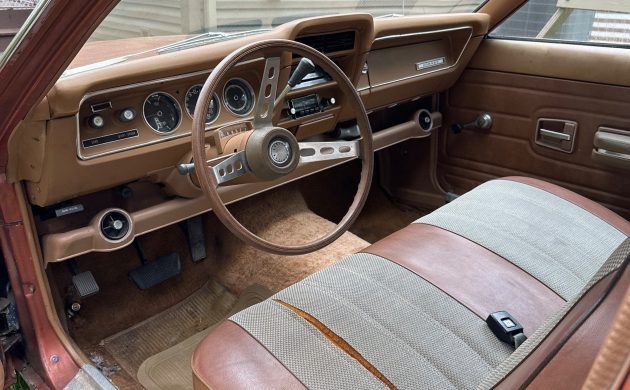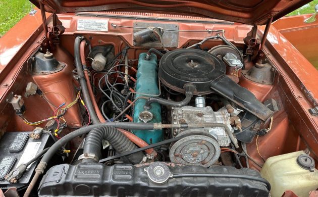AMC’s trusty 258-cubic-inch six cylinder sits between the spring towers; for 1974, it produced 110 horsepower and 195 lb.-ft. of torque, channeled through the “Torque-Command” automatic with a standard 2.73:1 axle ratio. The original owner (or selling dealer) also opened the wallet quite a bit wider for optional air conditioning, a $400 option (on a car with a $2,774 base price). Unfortunately, the air doesn’t work, but everything else on the car does. The engine compartment looks very clean; the seller appears to have done his homework in getting this Hornet back on the road (it had been sitting for quite some time).