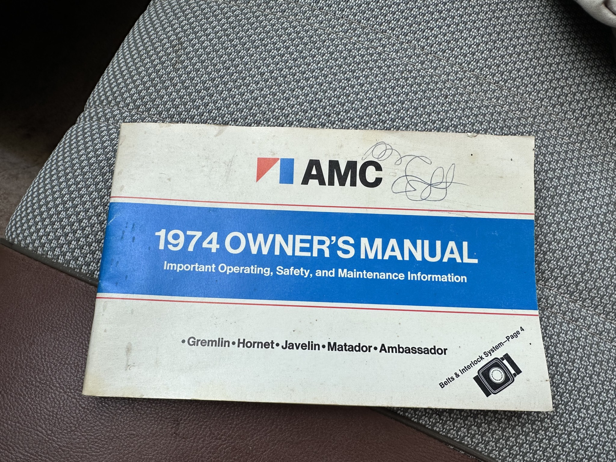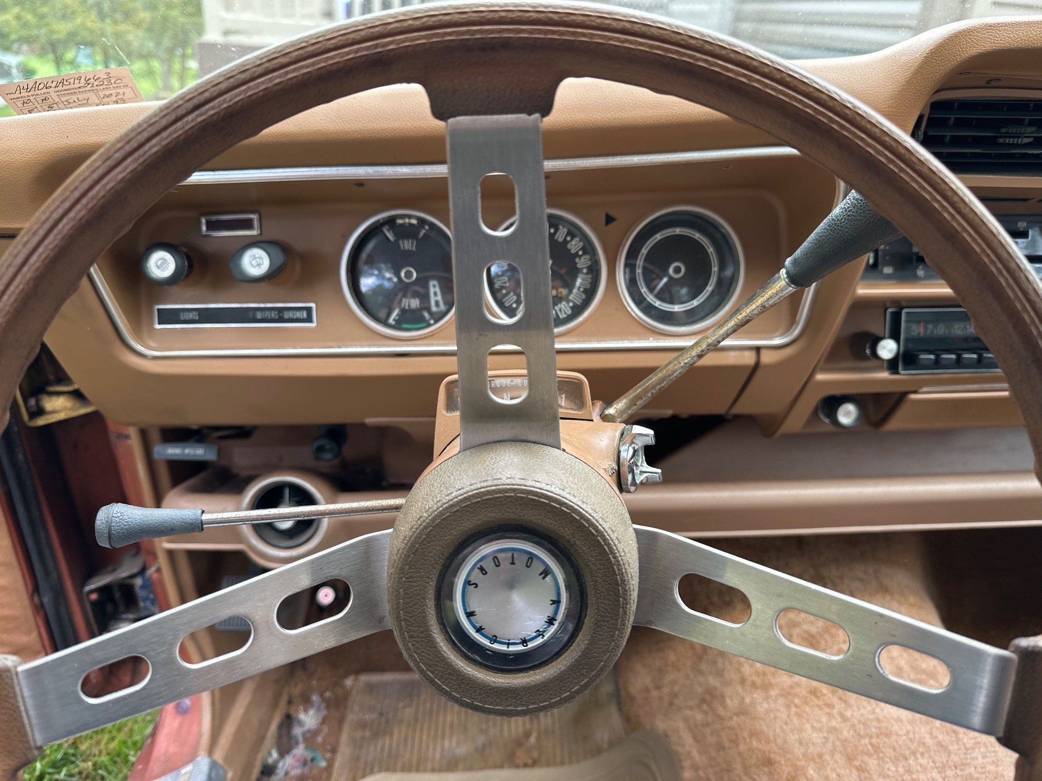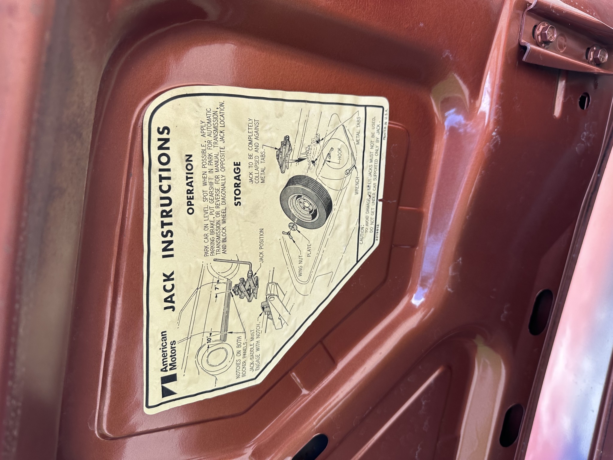 Interesting that it has the 1973 horn assembly. My 74 has the AMC logo in red,white and blue. Must be a steering wheel replacement as that is the wheel assembly for the “X” package.